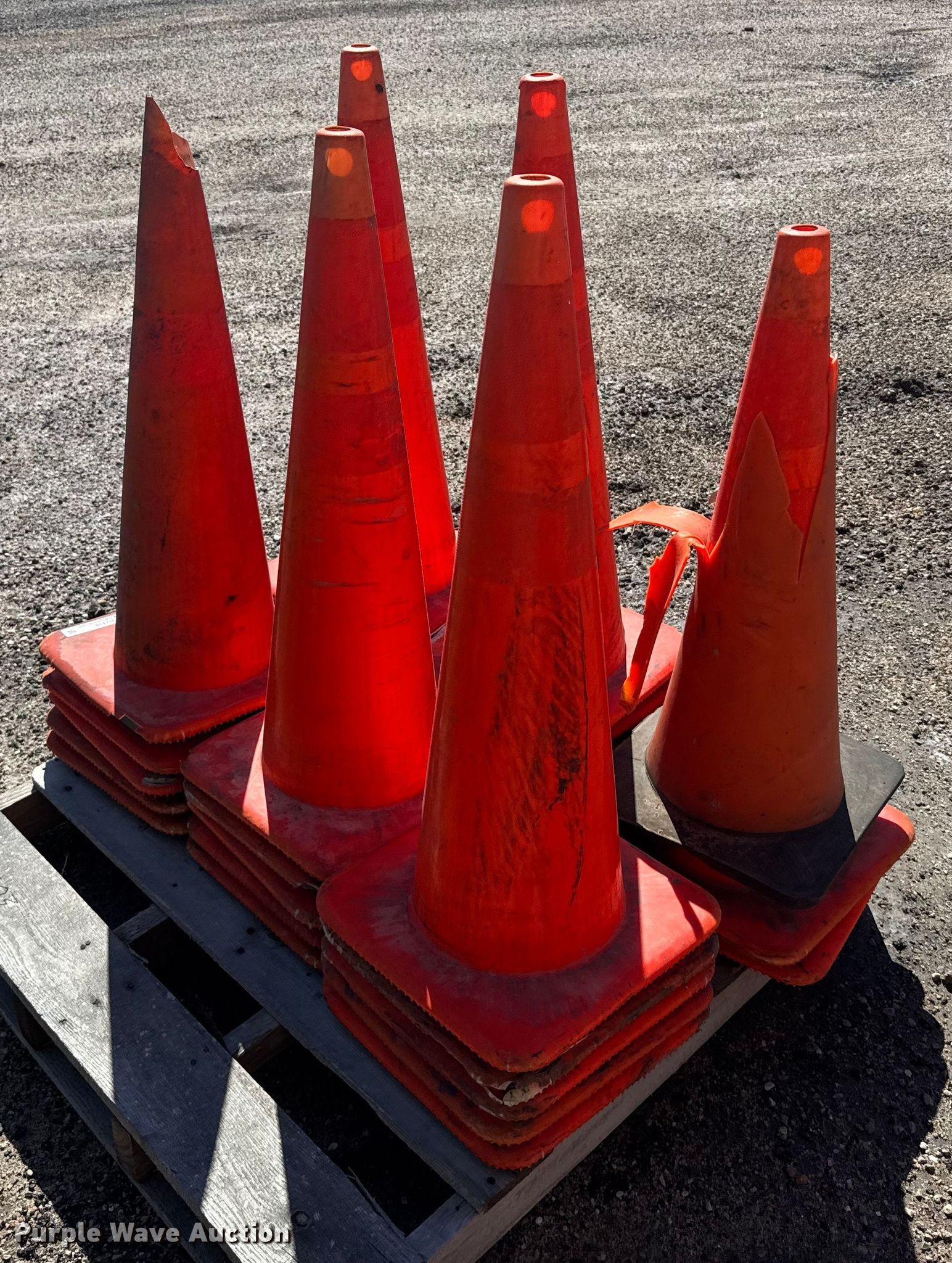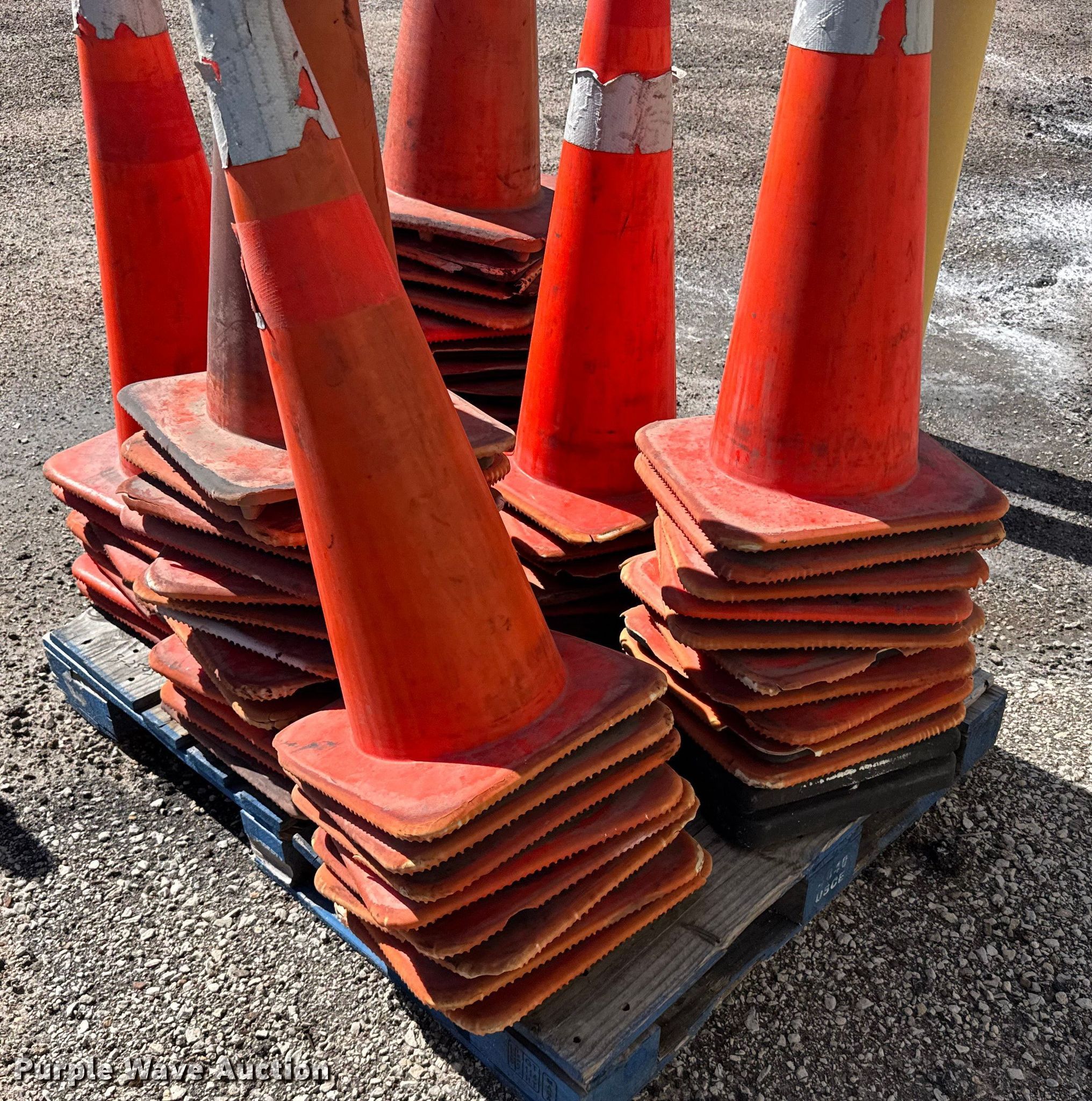 Purple Wave is selling a used Road Safety Equip. in Kansas. This item is a Approximately 90 traffic cones with the following: KDOT ID: 3-2503, Height: 36"