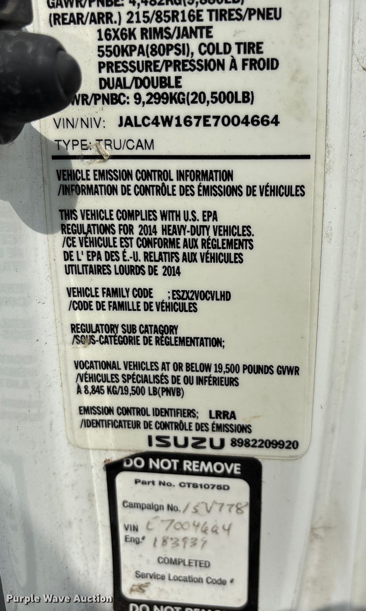Purple Wave is selling a used Box Truck in Arkansas. This item is a 2014 Isuzu NPRHD box truck with the following: Miles: 246,901 on odometer, VIN: JALC4W167E7004664, Unit #: MW11