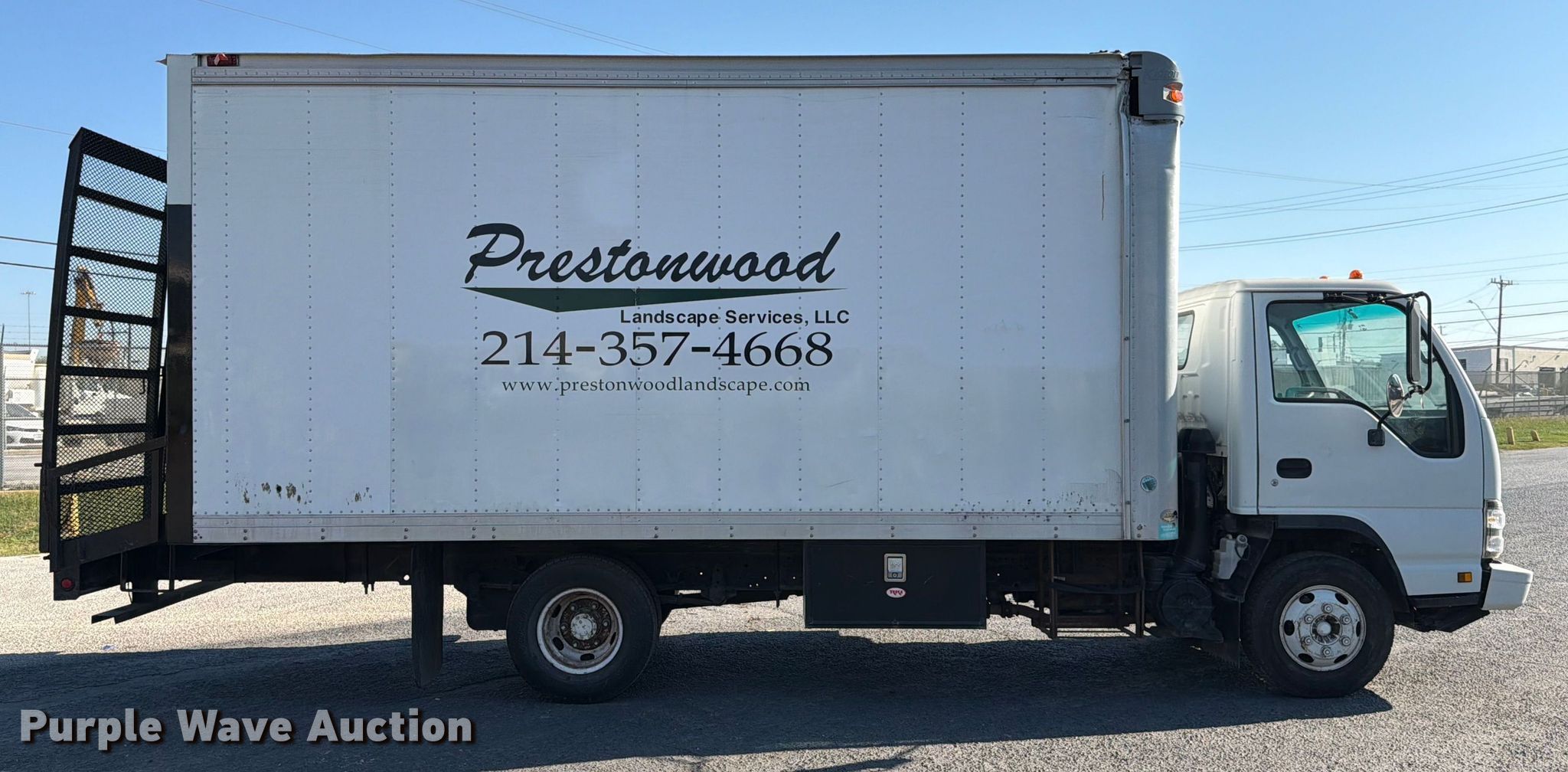 2007 Isuzu NPR Box truck. Miles: 160,037 on odometer, VIN: JALC4B16777004398, Unit #: 66. Engine Isuzu 4HK1-TC, Displacement: 5.2L OHV, Cylinders: 4, Fuel type: Diesel, HP: 190. Transmission Automatic. Chassis Axles: Single, Suspension: Spring, Brakes: Hydraulic, GVWR: 14,500 lbs. Interior AC, Heat, Power windows. Features Bed Box bed, Kidron 16C9ASW90, Serial: 07C00062, Length: 166', Width: 91", Height: 90", E-track rail system, Floor: Wood. Tires Size: 215/85R16. Notes Windshield chipped or cracked. Texas title. Title distribution may be delayed up to 14 days from verification of funds. Prestonwood Landscape Services. San Antonio, TX 78219