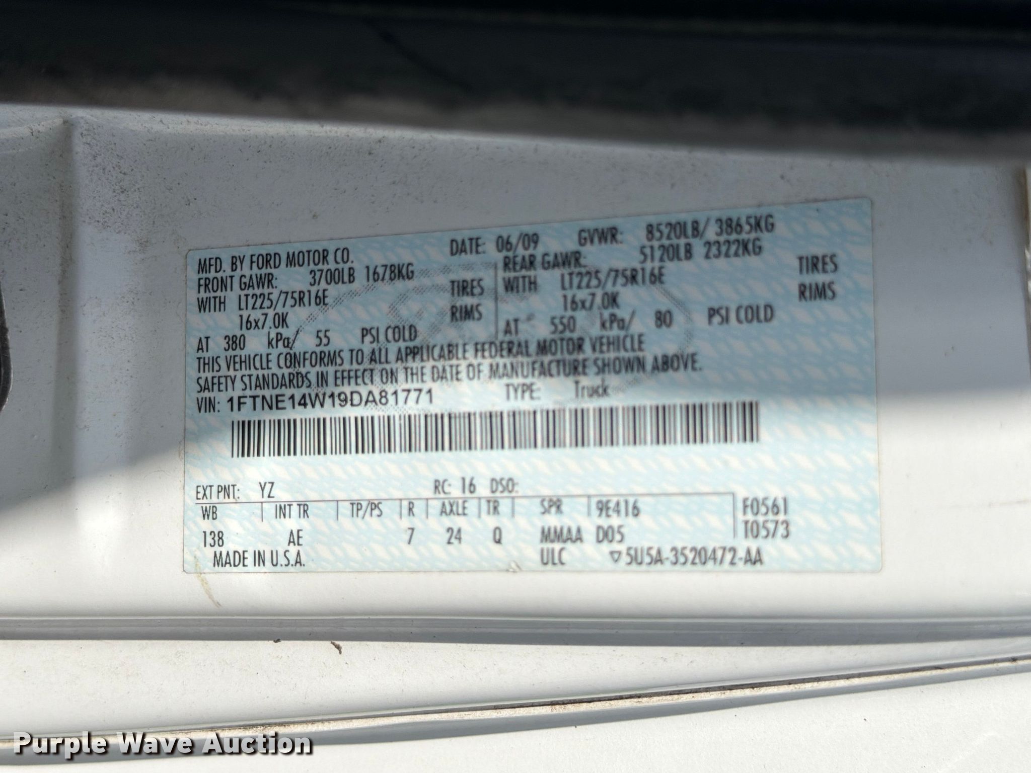 Purple Wave is selling a used 1/2 Ton Pickup or Van in Texas. This item is a 2009 Ford E150 van with the following: Miles: 110,960 on odometer, VIN: 1FTNE14W19DA81771, Unit #: 10665