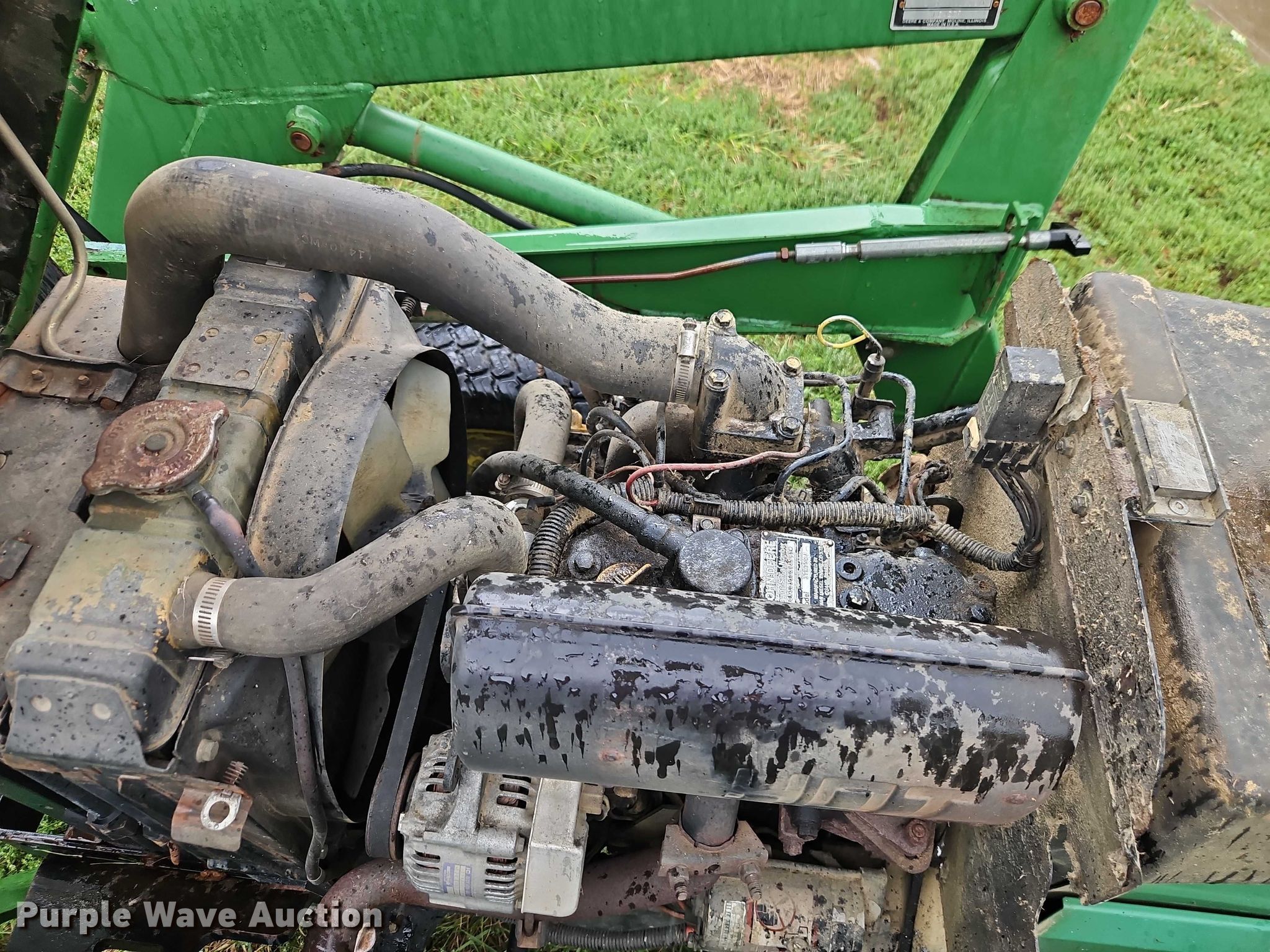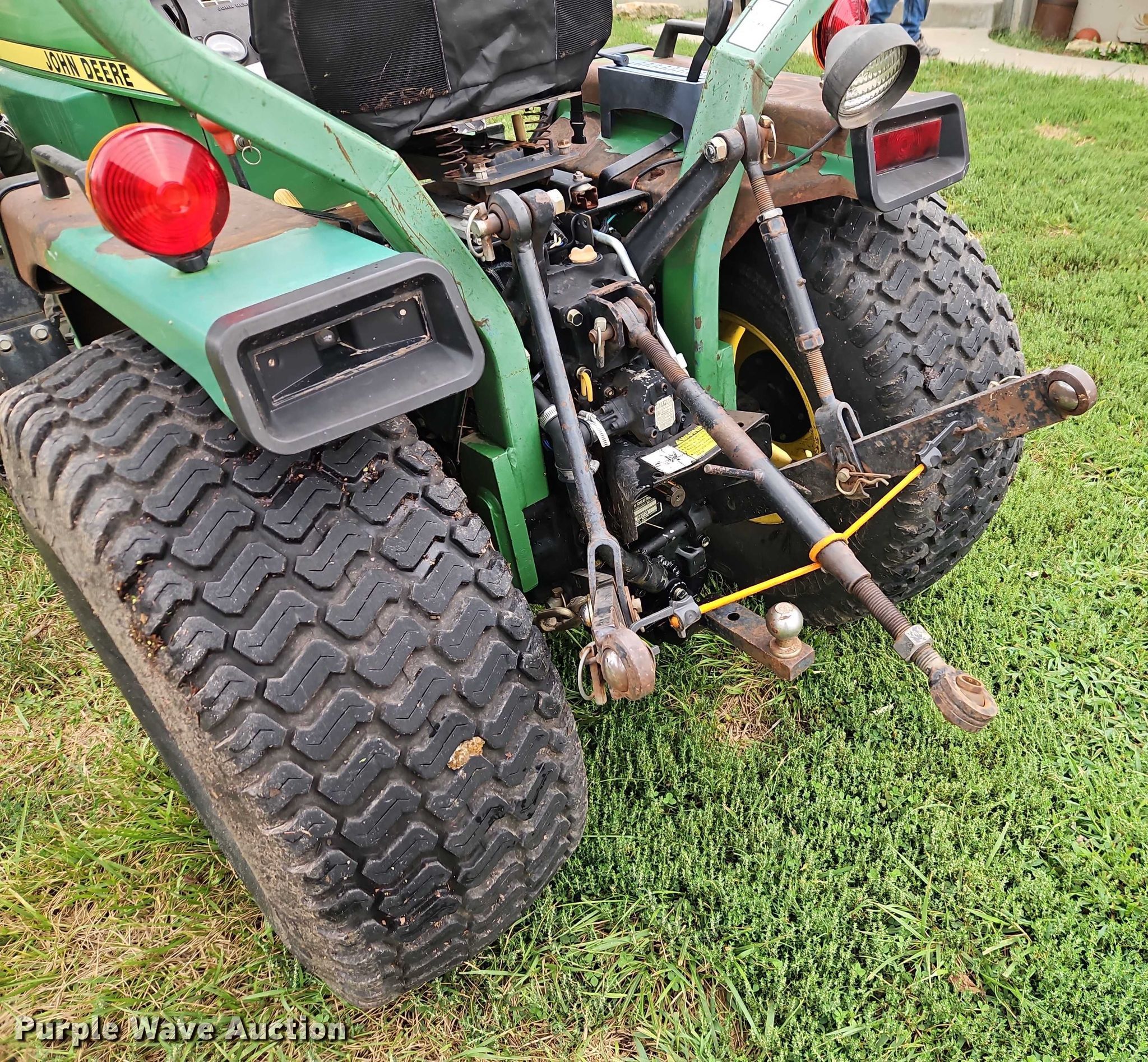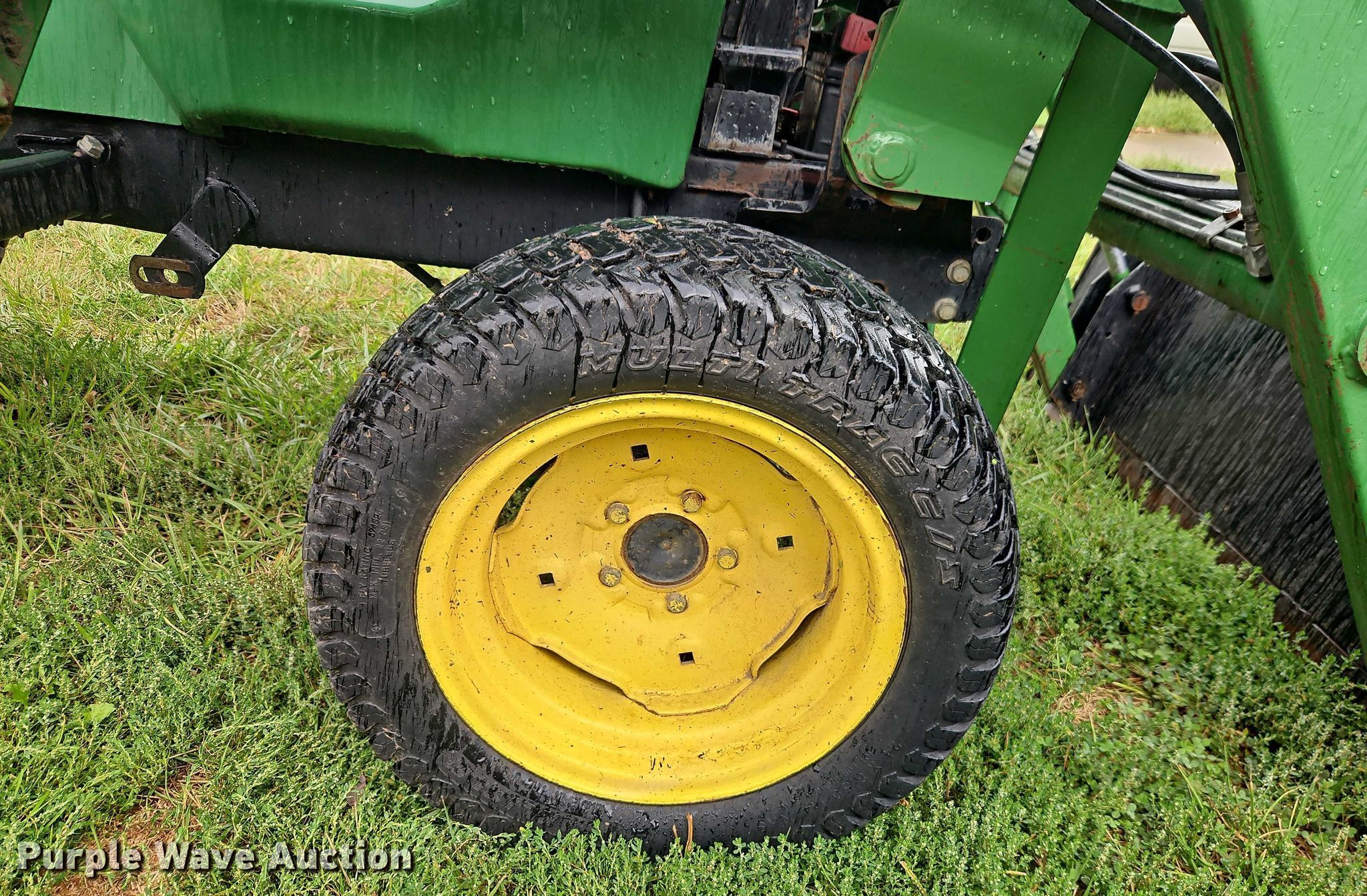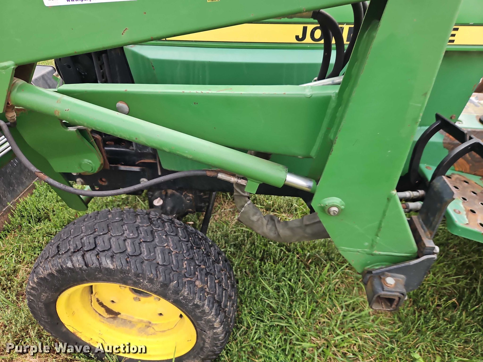 1990 John Deere 855 MFWD tractor. Hours: 2,444 on meter, Serial: M00855D026792. Engine John Deere 3TN75RJ, Serial: CH3033D012593, Cylinders: 3, Fuel type: Diesel. Transmission Hydrostatic, Differential lock. Features PTO: 540, Three point Top link, Hydraulic remote sets Front: 2, Loader John Deere 70A, Quick attach, Controls: Joystick, Bucket Width: 61".. Tires Front: 24x8.00-14, Rear: 36x14.00-15. Green Grounds. Pleasant Hill, MO 64080
