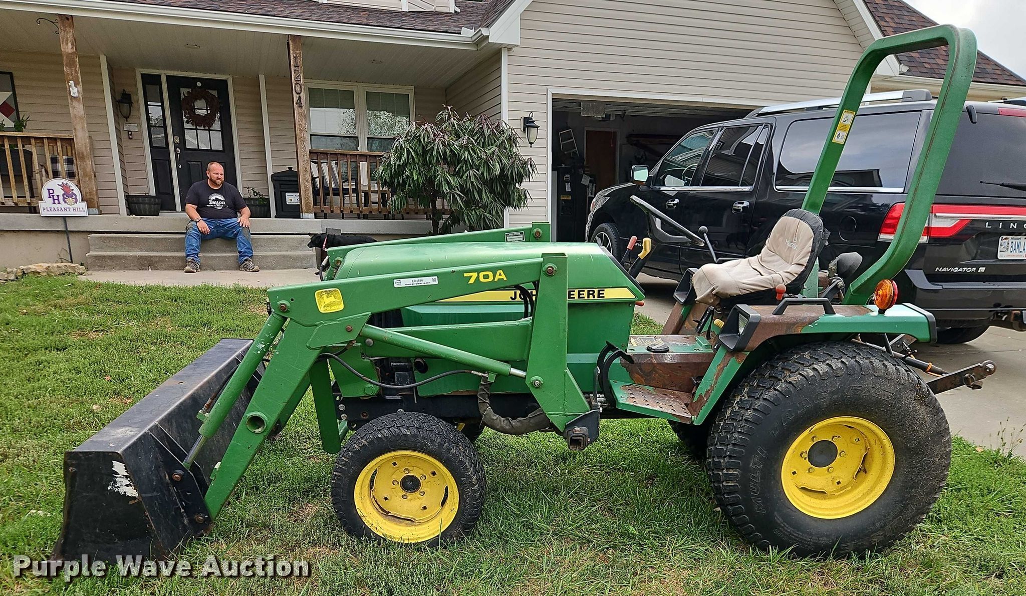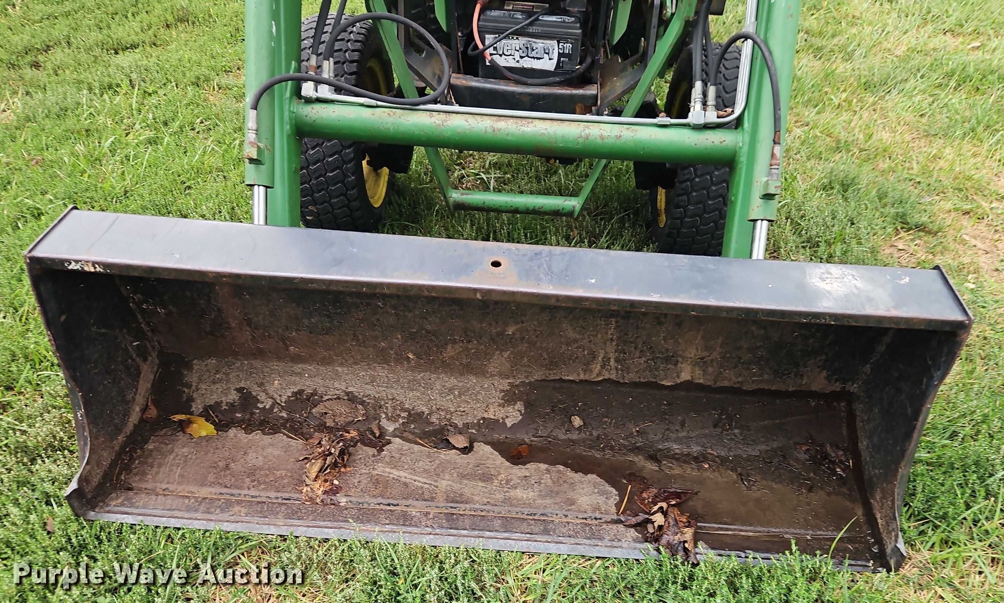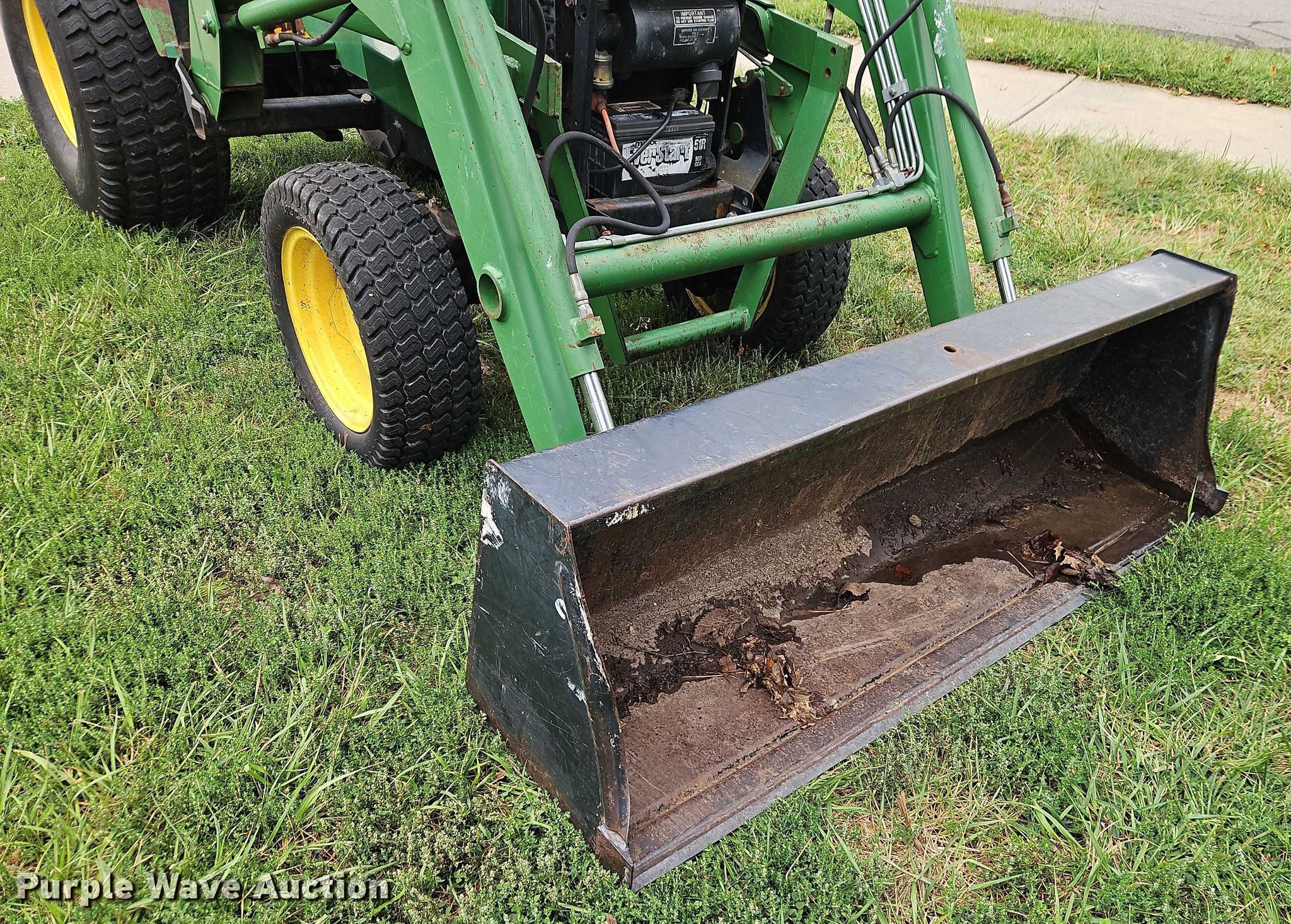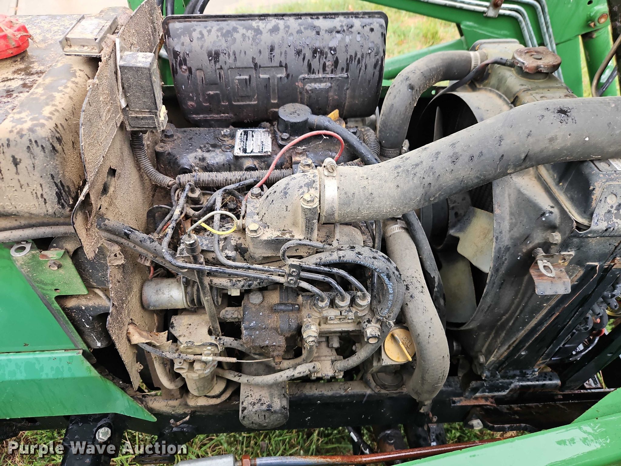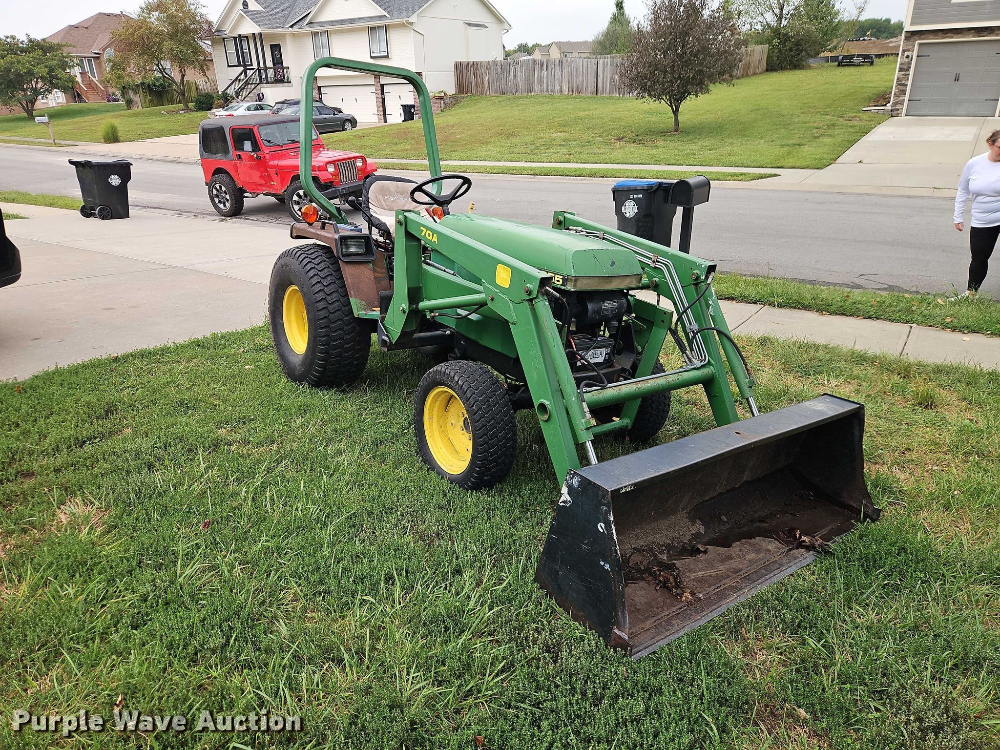 1990 John Deere 855 MFWD tractor. Hours: 2,444 on meter, Serial: M00855D026792. Engine John Deere 3TN75RJ, Serial: CH3033D012593, Cylinders: 3, Fuel type: Diesel. Transmission Hydrostatic, Differential lock. Features PTO: 540, Three point Top link, Hydraulic remote sets Front: 2, Loader John Deere 70A, Quick attach, Controls: Joystick, Bucket Width: 61".. Tires Front: 24x8.00-14, Rear: 36x14.00-15. Green Grounds. Pleasant Hill, MO 64080