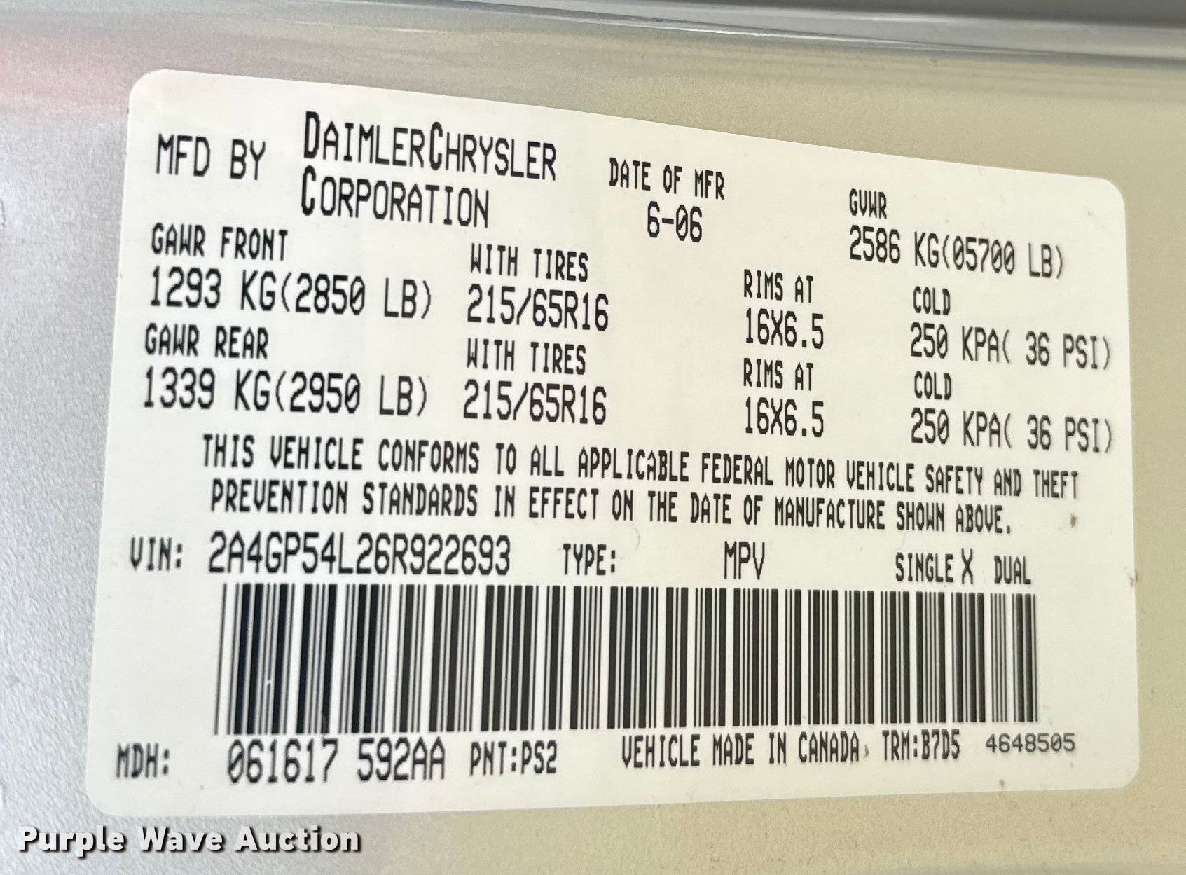Purple Wave is selling a used Passenger Vehicle in Kansas. This item is a 2006 Chrysler Town and Country van with the following: Miles: 180,343 on odometer, VIN: 2A4GP54L26R922693