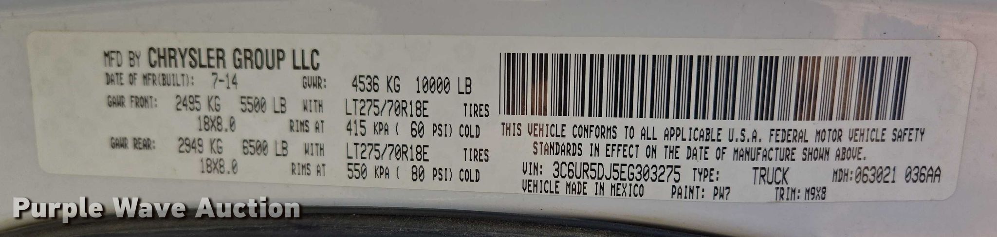 - VIN: 3C6UR5DJ5EG303275