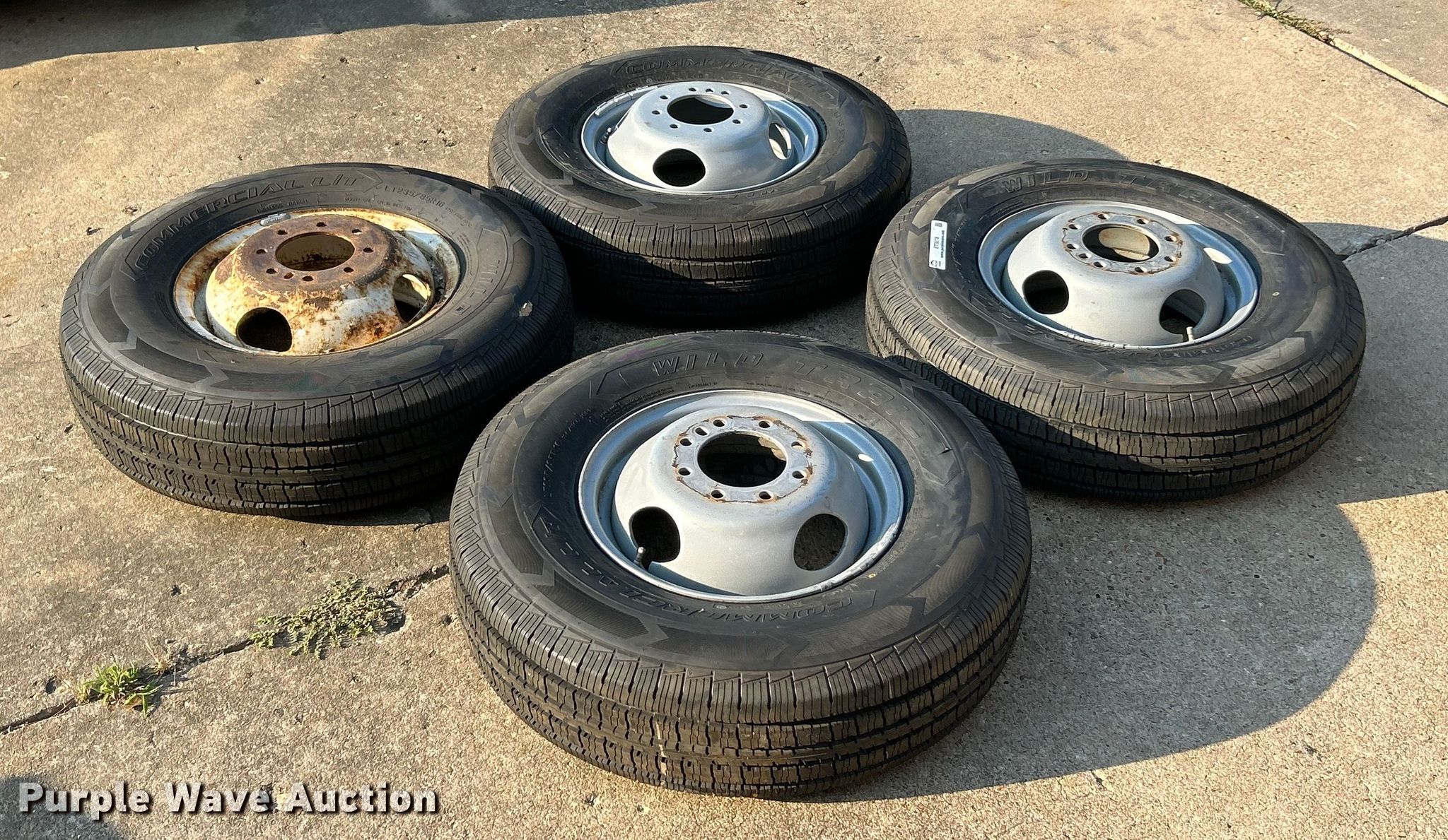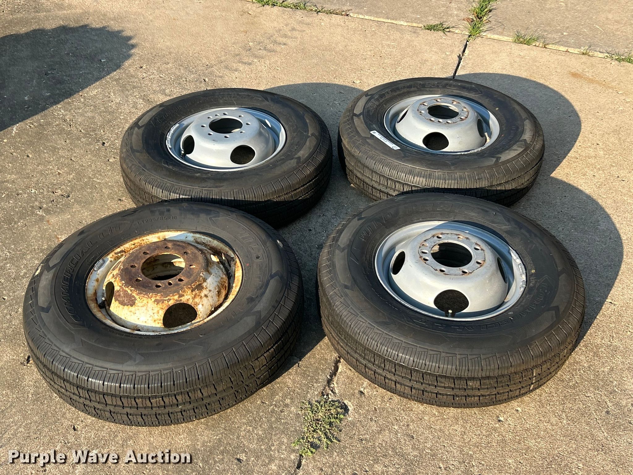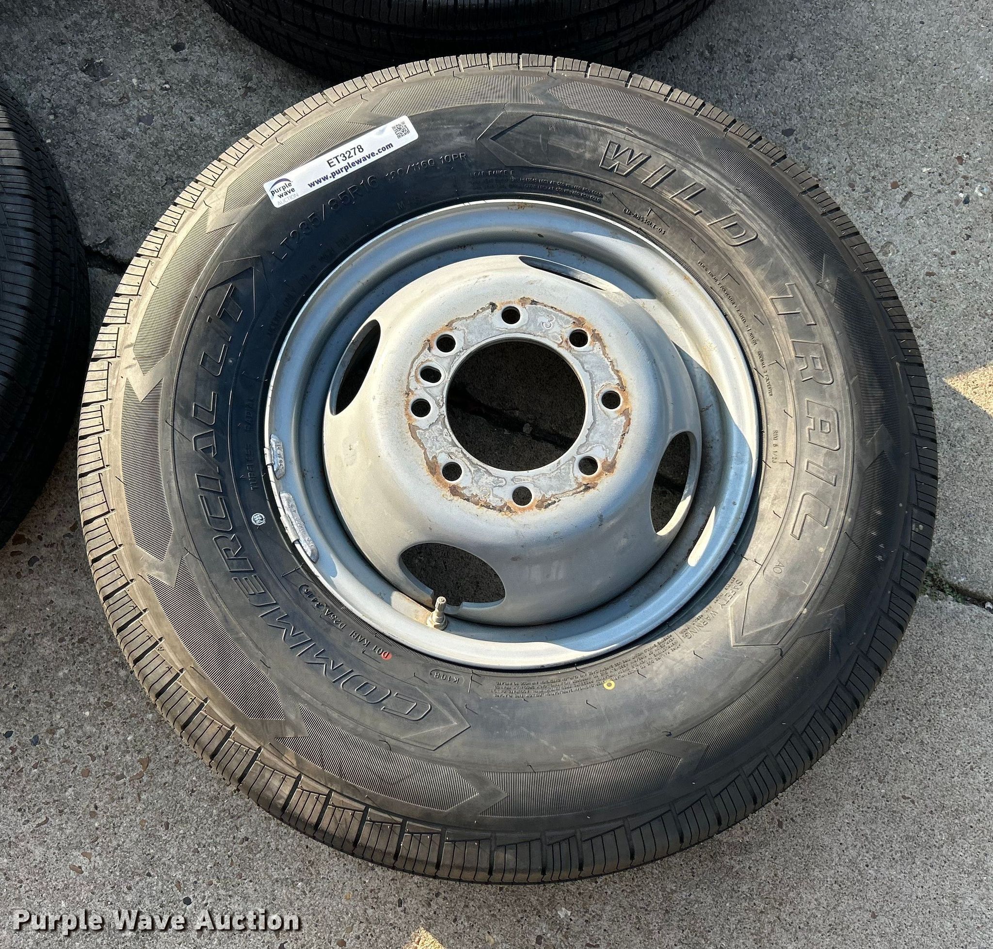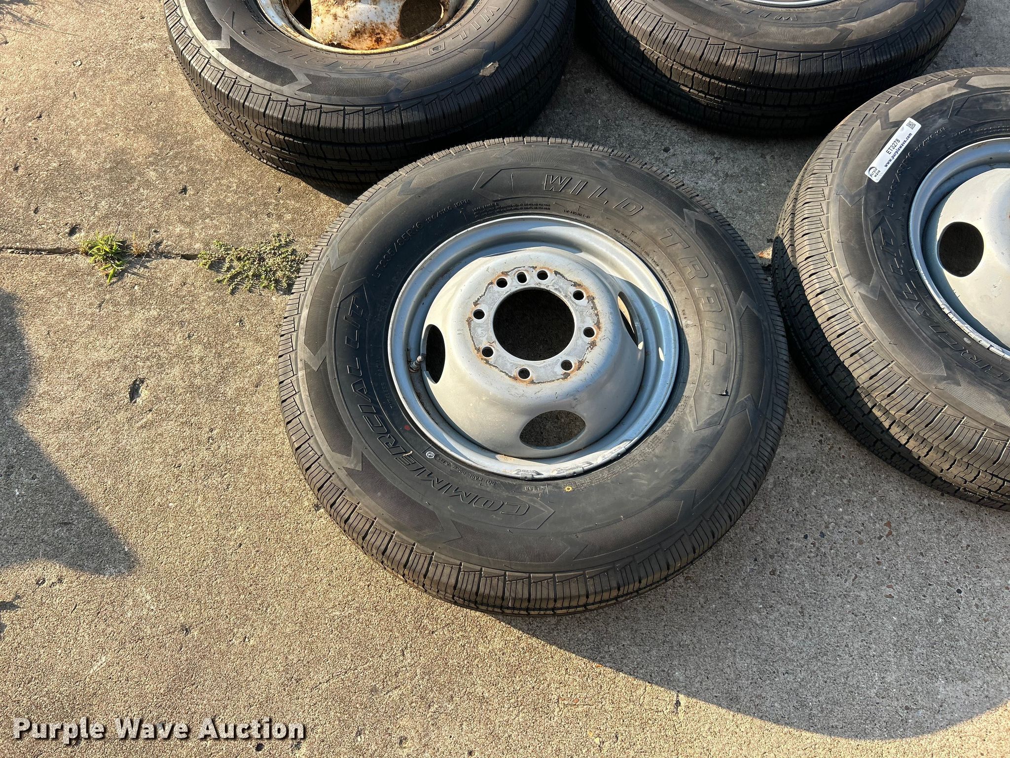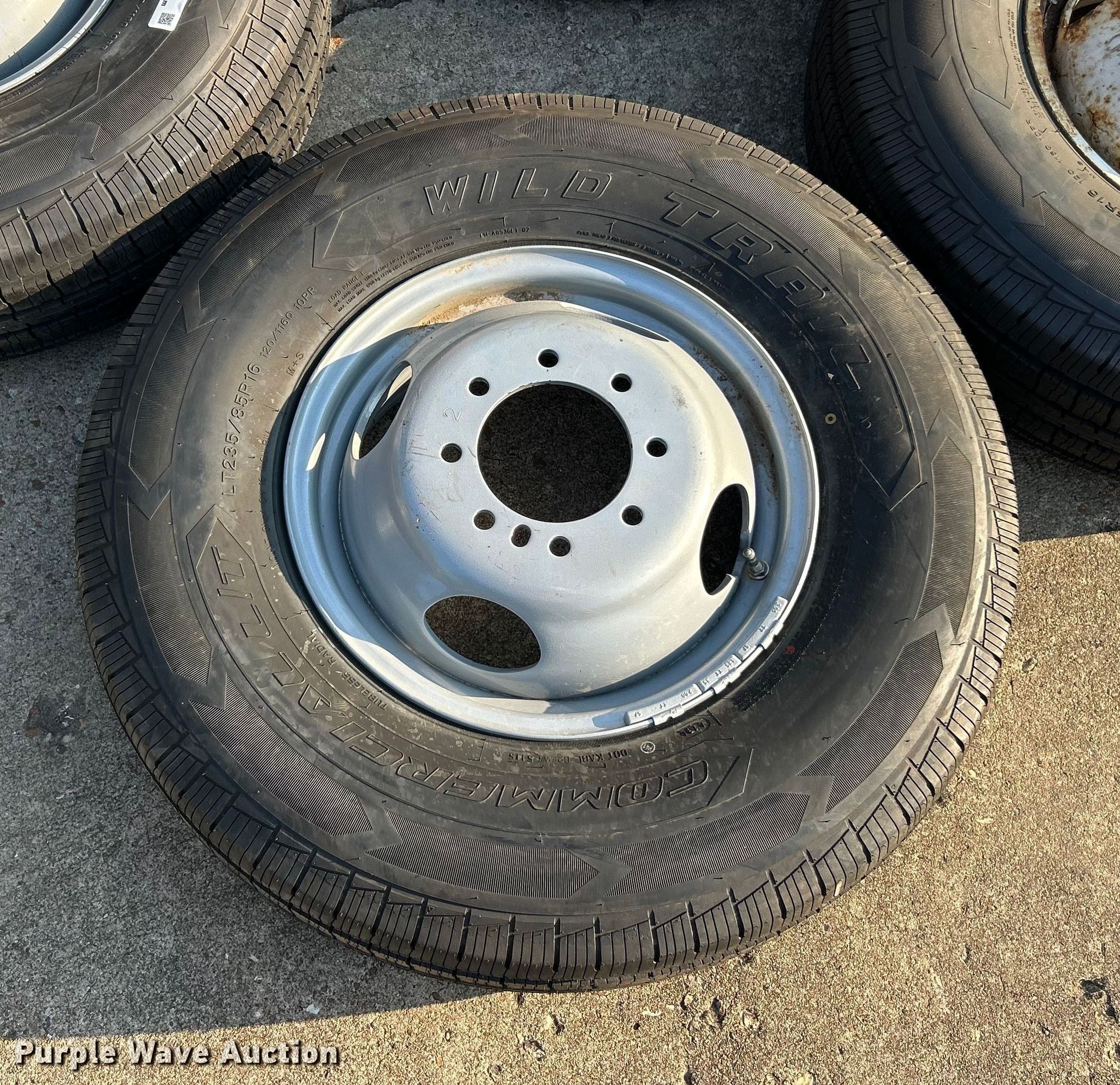 Purple Wave is selling a used Tires Other in Missouri. This item is a (4) 235/85R16 Wild Trail Commercial L/T tires and wheels with the following: (4) 235/85R16 Wild Trail Commercial L/T tires and wheels. Roy Zeier Bobcat Service. Defiance, MO 63341