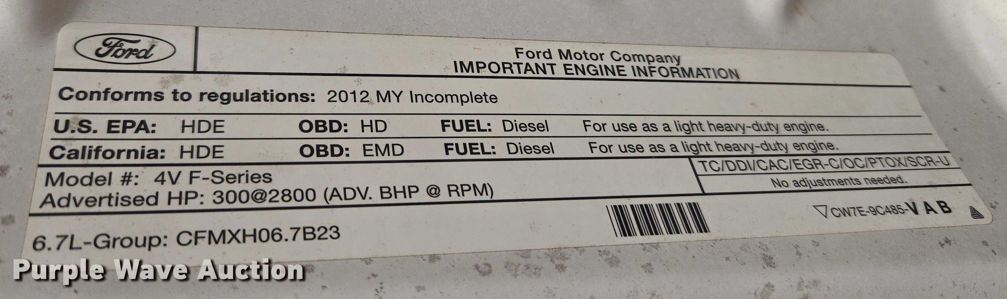 • VIN: 1FD0W5GT9CEC27010