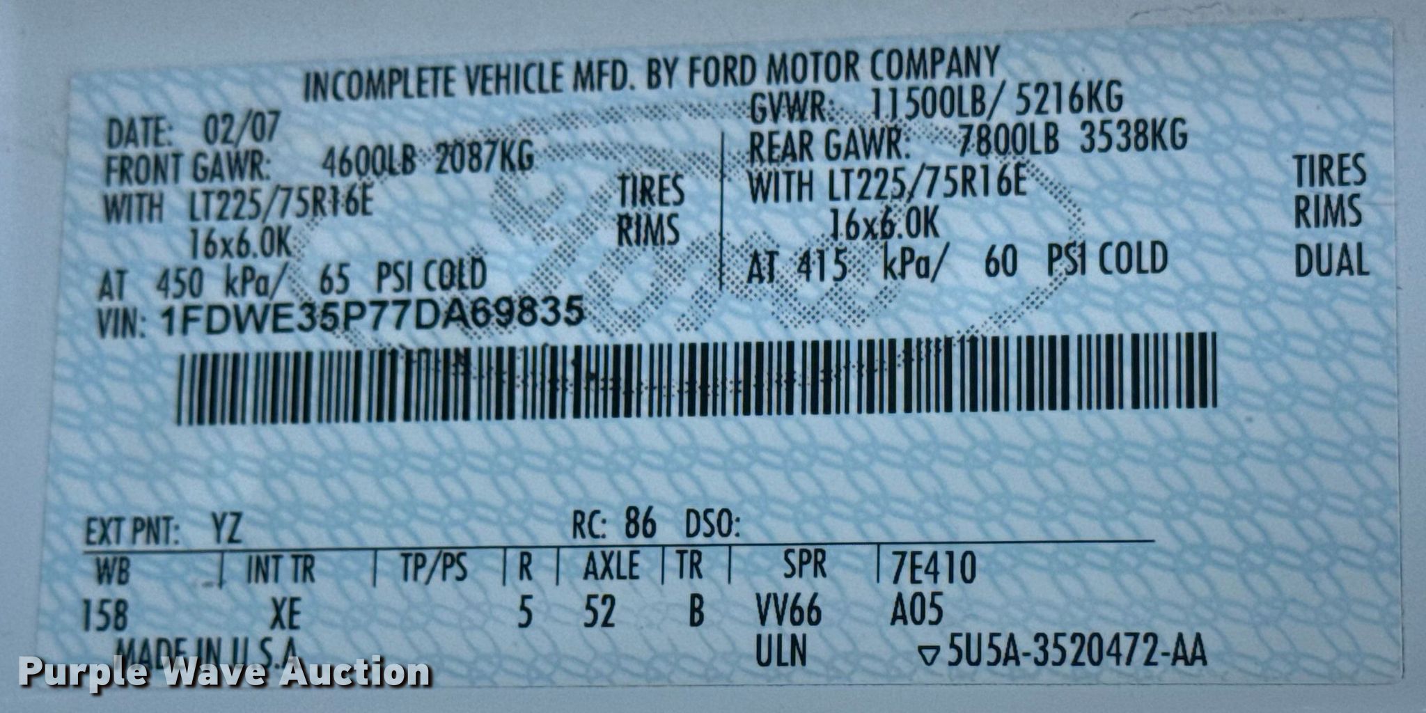 - VIN: 1FDWE35P77DA69835