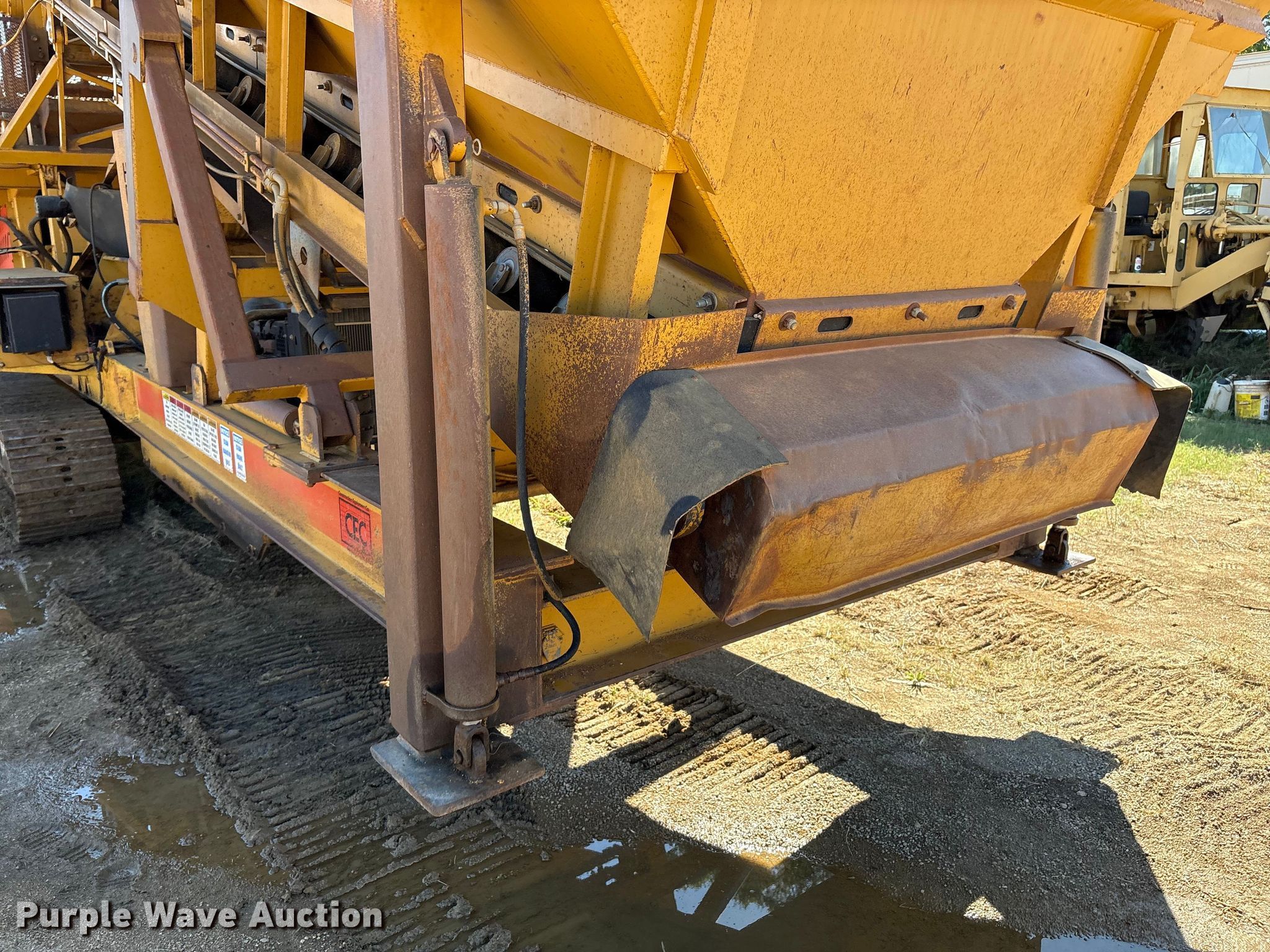 Construction Equipment Company Screen-It screening plant. Serial: 13-09458A. Engine Perkins, Serial: 44615441, Cylinders: 4, Fuel type: Diesel. Features Screen deck Length: 12', Width: 5', Decks: Double, Input hopper Length: 8', Width: 55", Vibrating, Conveyors Input: 40" W, Discharge: 48" W, Discharge: 48" W. Tracks Width: 20". Notes (8) additional screens and rollers. Blessing Gravel LLC. Tishomingo, OK 73460