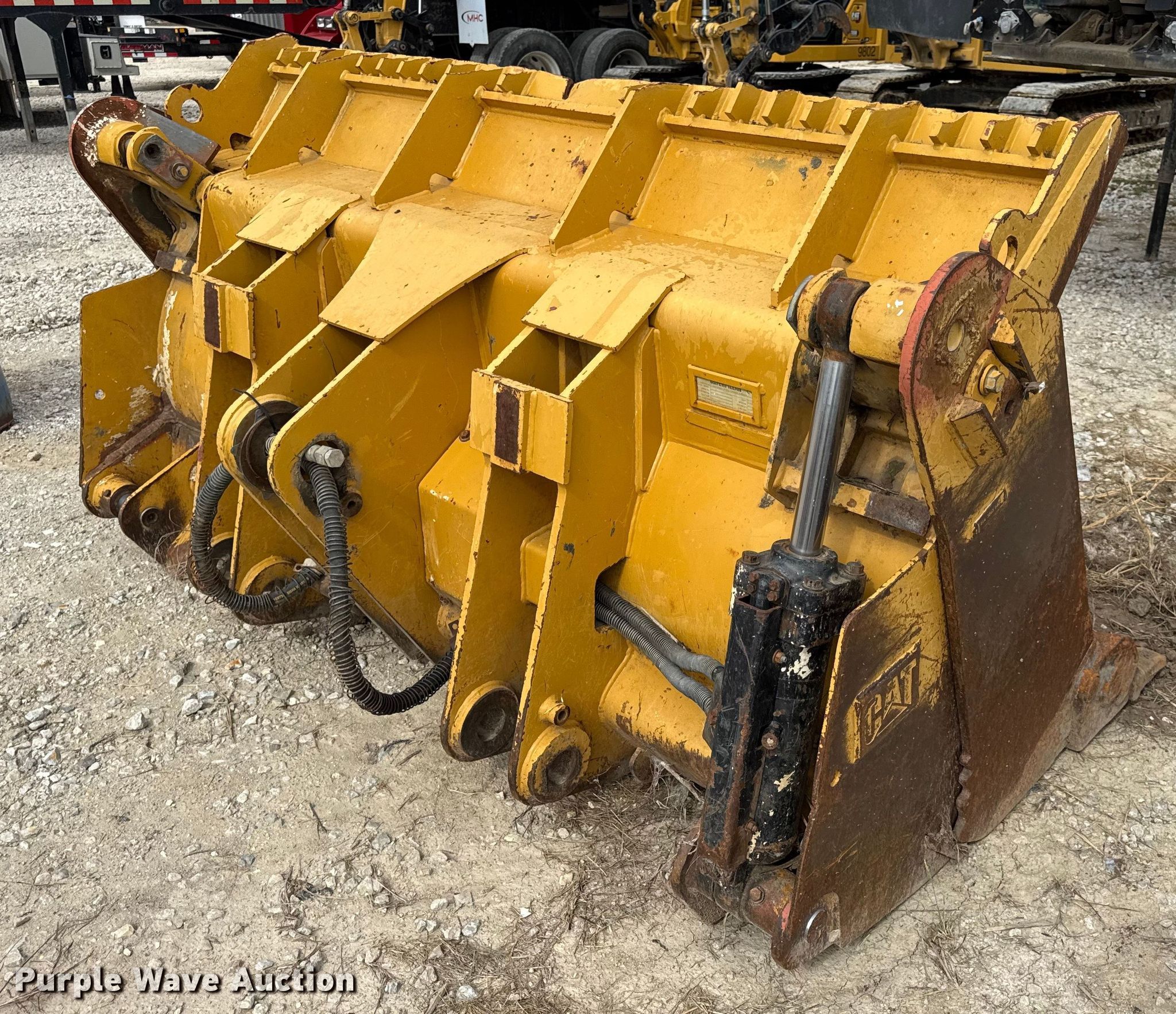 Purple Wave is selling a used Crawler Attach. in Missouri. This item is a 2009 Caterpillar 286-0049 track loader four-in-on bucket with the following: Serial: 242874, Width: 101", Cutting edge: Bolt-on, Teeth: 7, Hydraulic cylinder missing