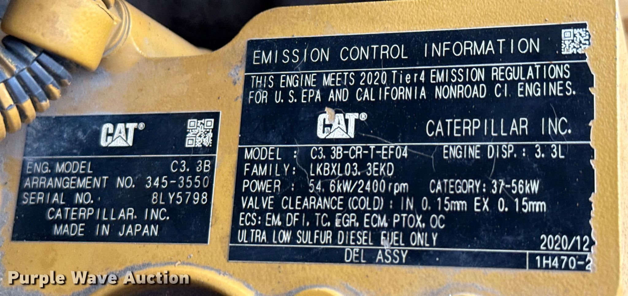 2021 Caterpillar 279D3 tracked skid steer loader. Hours: 3,258 on meter, Serial: CAT0279DJRB902546. Engine Caterpillar C3.3B, Serial: 8LY5798, Displacement: 3.3L, Cylinders: 4, Fuel type: Diesel, kW: 54.6. Transmission Hydrostatic, Two speed travel. Operators station OROPS, Backup camera, Bucket control: Hand, Electronic Monitoring System panel. Features Auxiliary hydraulics, Auxiliary electrical outlet, Quick coupler: Manual, Bucket Caterpillar, Width: 80", Low profile, Cutting edge: Bolt-on. Tracks Width: 17.5". Notes Unknown operating condition of backup camera, Warning indicator: Fault code. Cali-Trucks Inc. Houston, TX 77013