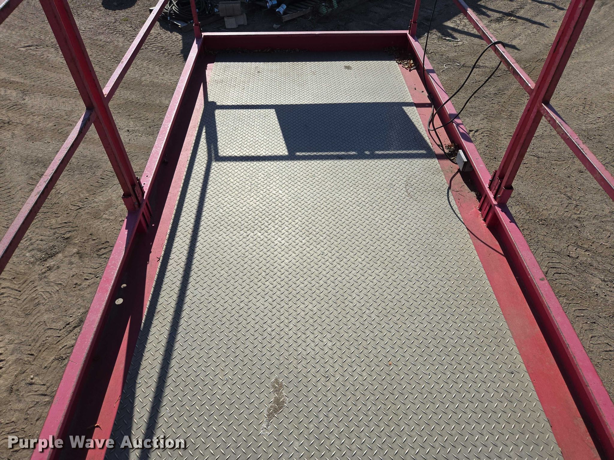 2013 MEC 3084RT scissor lift. Hours: 4,676 on meter, Serial: 11800088. Engine Kubota DF752-ES, Displacement: 740.5cc, Cylinders: 3, Fuel type: Dual fuel LP bottle: Not included. Chassis Four wheel drive. Features Maximum lift capacity: 1,500 lbs, Maximum lift height: 30', Hydraulic leveling, Platform: 168" L x 96" W, AC power outlet, Controls: Platform, Ground. Tires Tire size: 26x12D380, Foam filled. Bierschbach Equipment and Supply. Sioux Falls, SD 57106