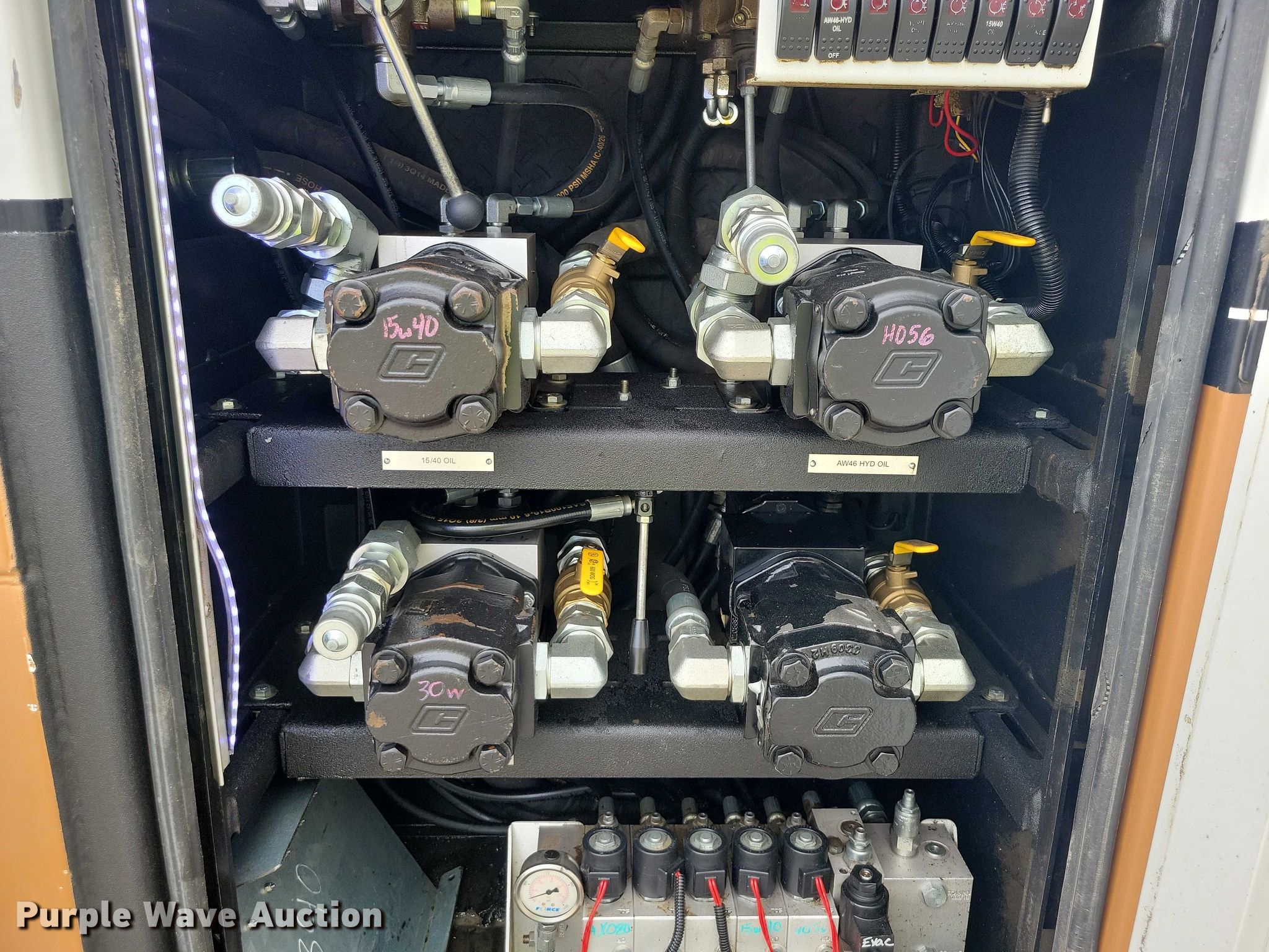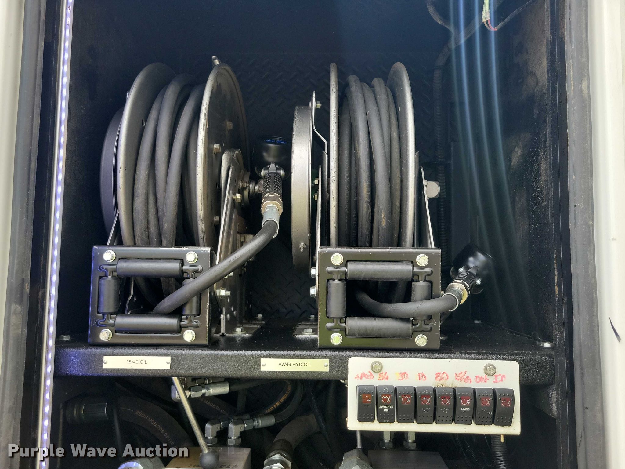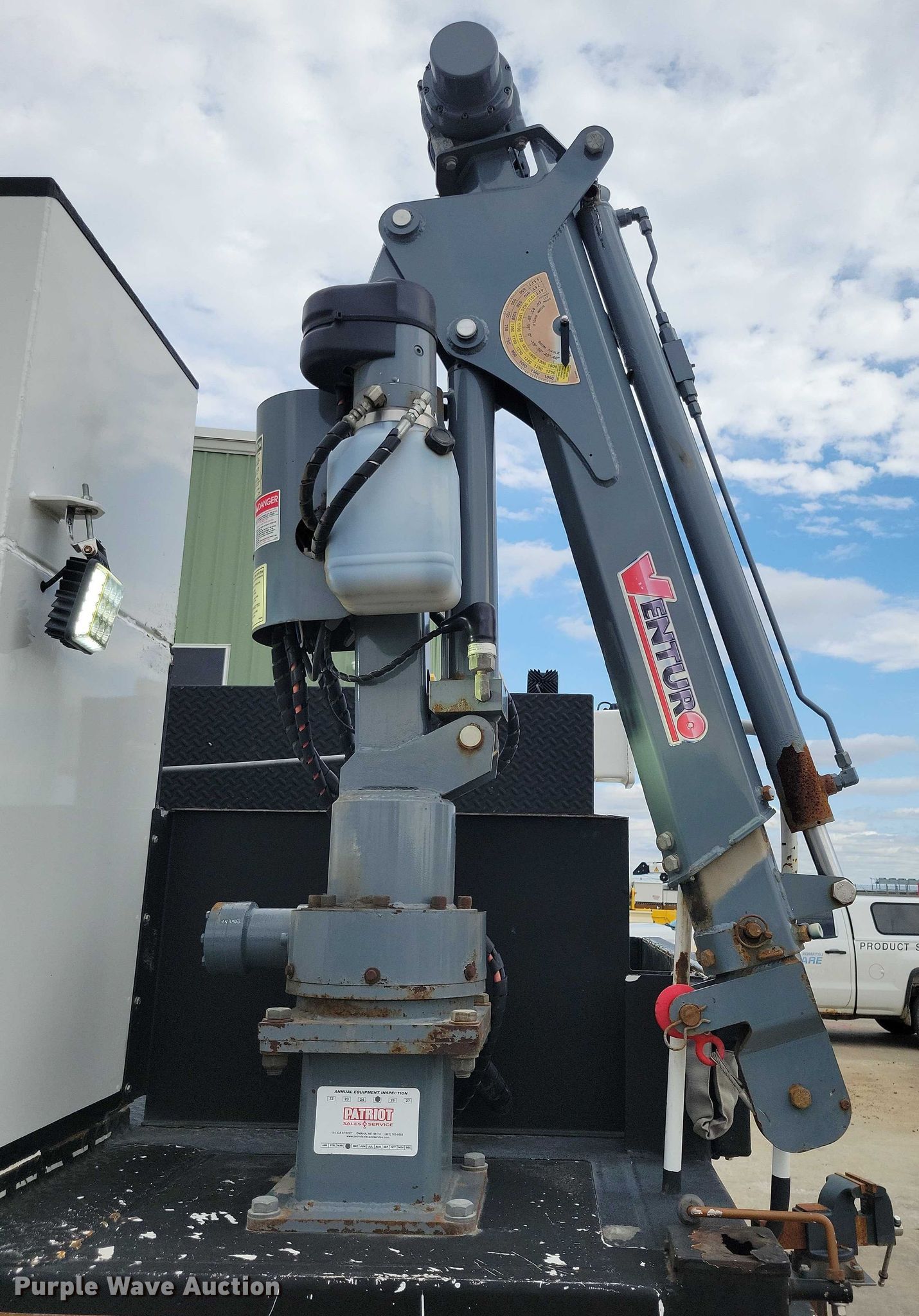 2015 Peterbilt PB337 utility / service truck. Miles: 121,569 on odometer, Hours: 9,492 on meter, VIN: 2NP2HM6X6FM279620. Engine Paccar PX-7, Serial: 73708909, Displacement: 6.7L, Cylinders: 6, Fuel type: Diesel, HP: 300. Transmission Automatic. Chassis Axles: Single, Suspension: Air, Brakes: Air, PTO, GVWR: 26,000 lbs. Interior AC, Heat, Power windows, Power locks, Cruise control. Features Bed Length: 16', Width: 96", Generator 240V outlets: 2, 120V outlets: 4, Air compressor Vanair Maintainer, Oil/lube system Hose reels, Nozzles, Pump, Reservoirs Hydraulic fluid, Grease, Motor oil, Used oil, Crane Venturo CT310KX, Maximum boom length: 9.5' Maximum lift capacity: 1,900 lbs.. Tires Size: 295/75R22.5. Notes Crane mount bolt broken. Nebraska title. Title distribution may be delayed up to 14 days from verification of funds. RoadBuilders Machinery and Supply. Omaha, NE 68127