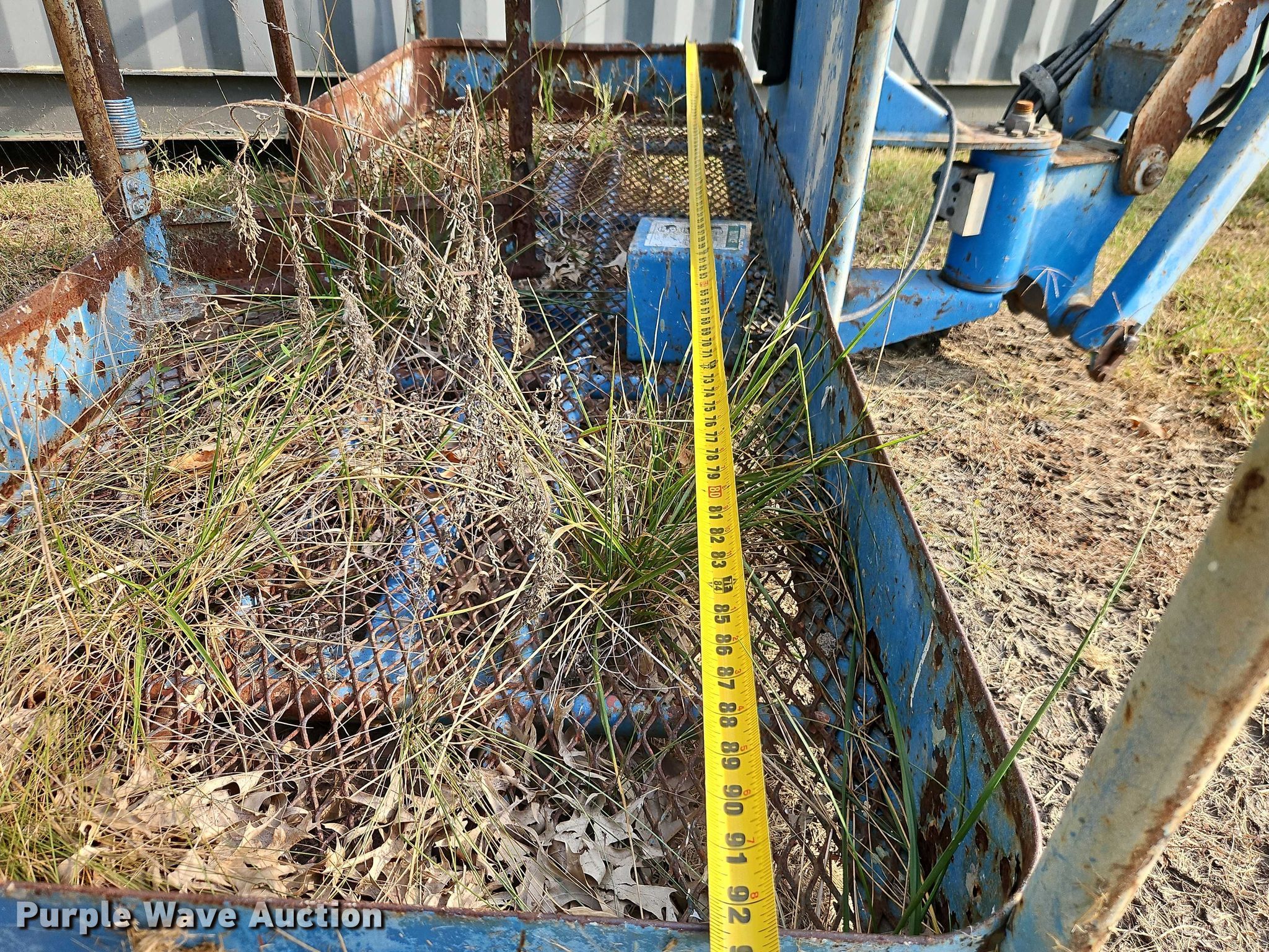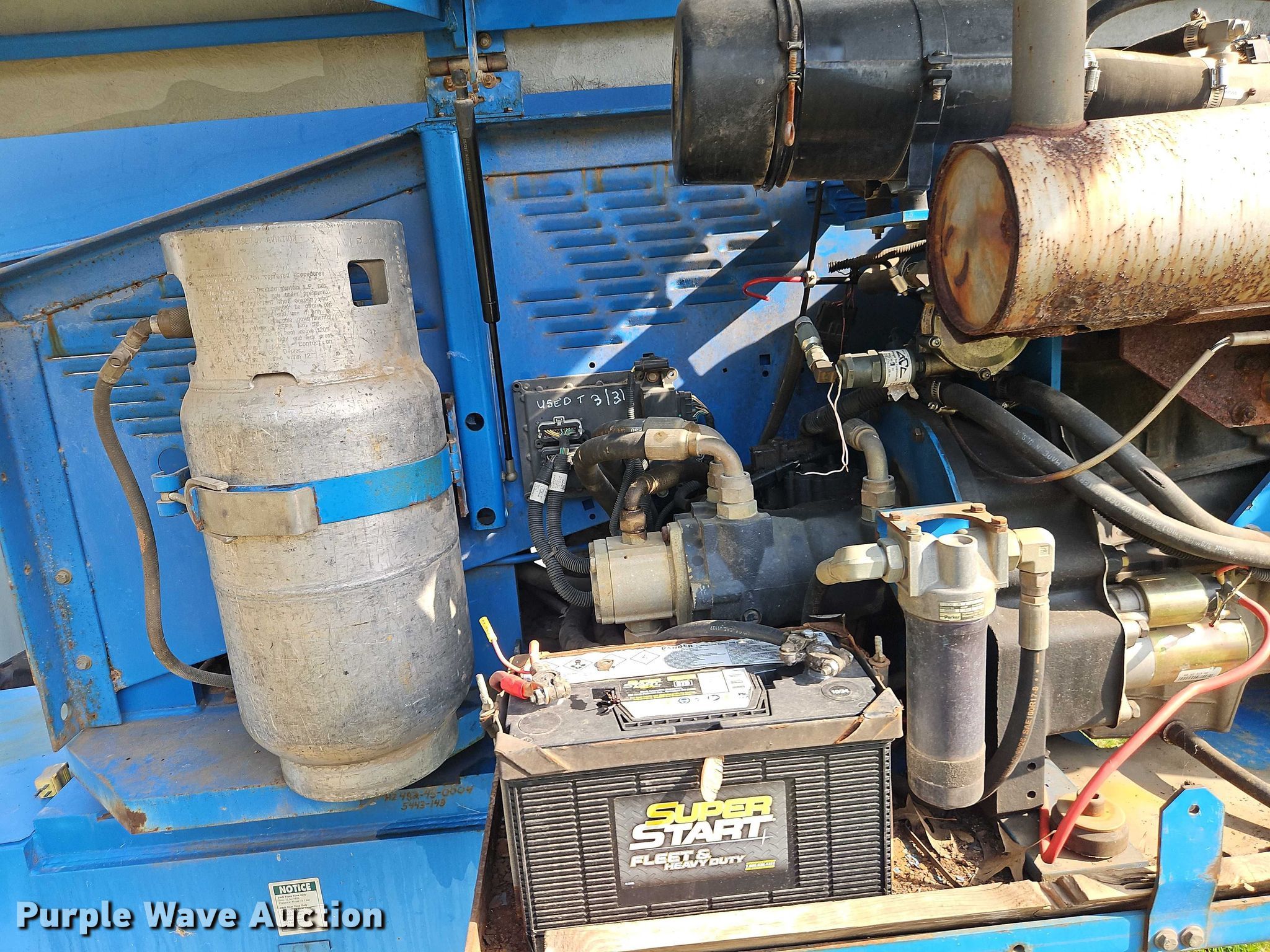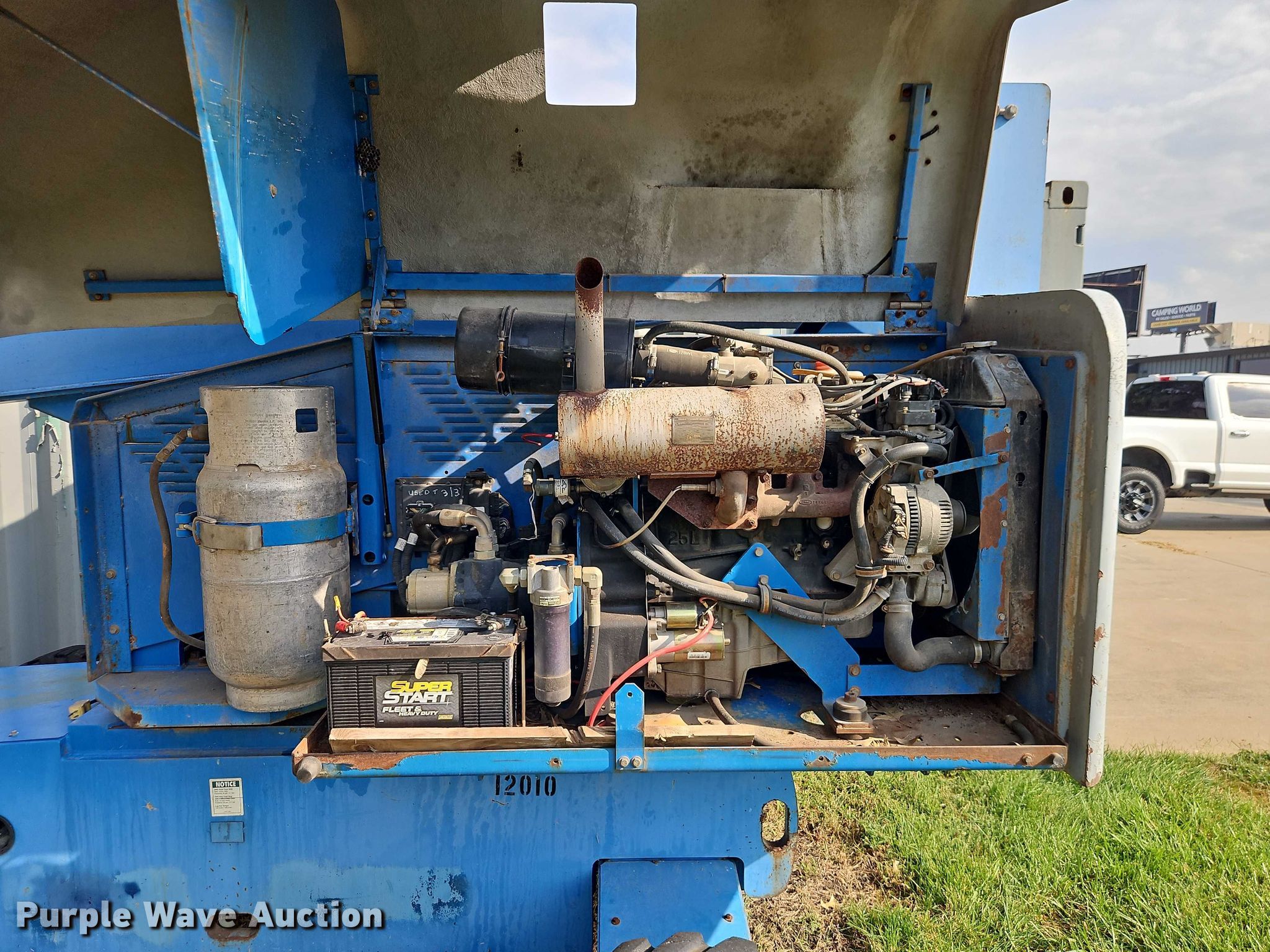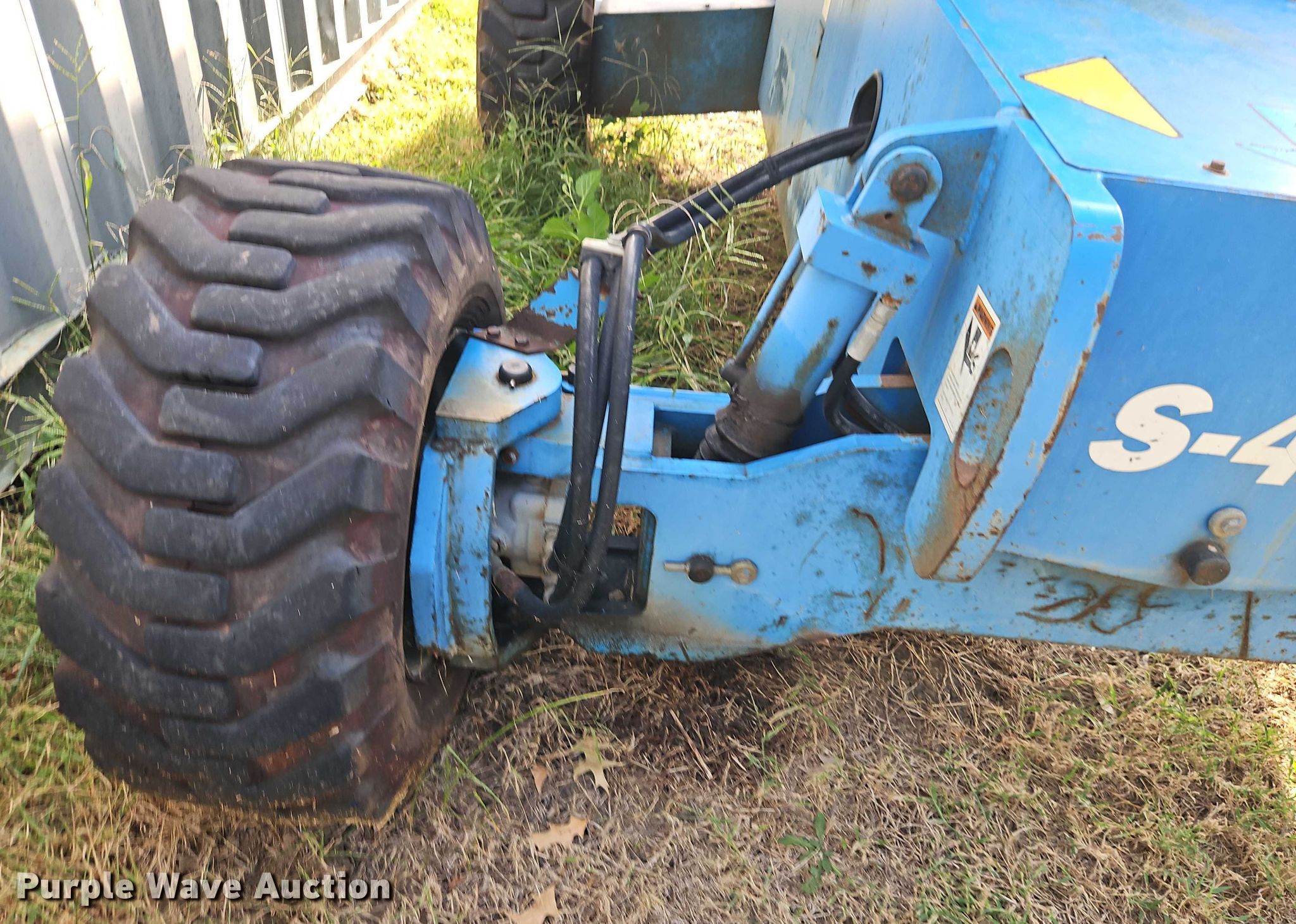 Genie S-45 boom lift. Hours: 4,209 on meter. Engine Ford LRG-425i-6007-Z, Serial: 65699-1-02-00, Cylinders: 4, Fuel type: Dual fuel LP bottle: Included. Chassis Four wheel drive. Features Rough terrain, Boom type: Telescopic, Hydraulic extendable jib, Hydraulic leveling, Platform: 33" L x 92" W, AC power outlet, Controls: Platform, Ground. Tires Tire size: 12-16.5, Foam filled. Notes Possible engine issues, turns over but will not start , Non-operational unit. Grain Valley, MO 64029