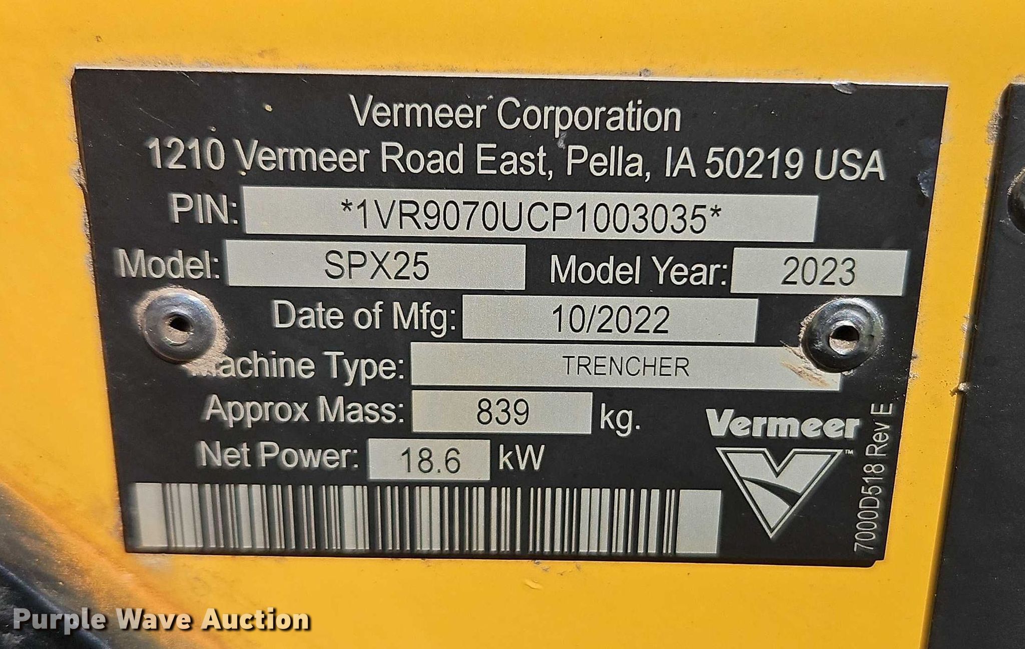 Take a look at this used 2023 Vermeer SPX25 vibratory cable plow being sold on October 23rd, 2025 in the Thursday October 23 Construction Equipment Auction made by Vermeer. Take a look at all of the item information below or take a look at similar auctions for Boring and Trenching.