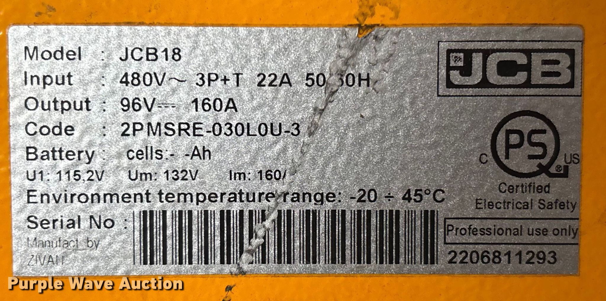 Purple Wave is selling a used Forklift Attach. in Florida. This item is a 2022 JCB JCB18 forklift charger with the following: Serial: 2206811293, Volts: 480, Amps: 22, Phase: Three, Unknown operating condition