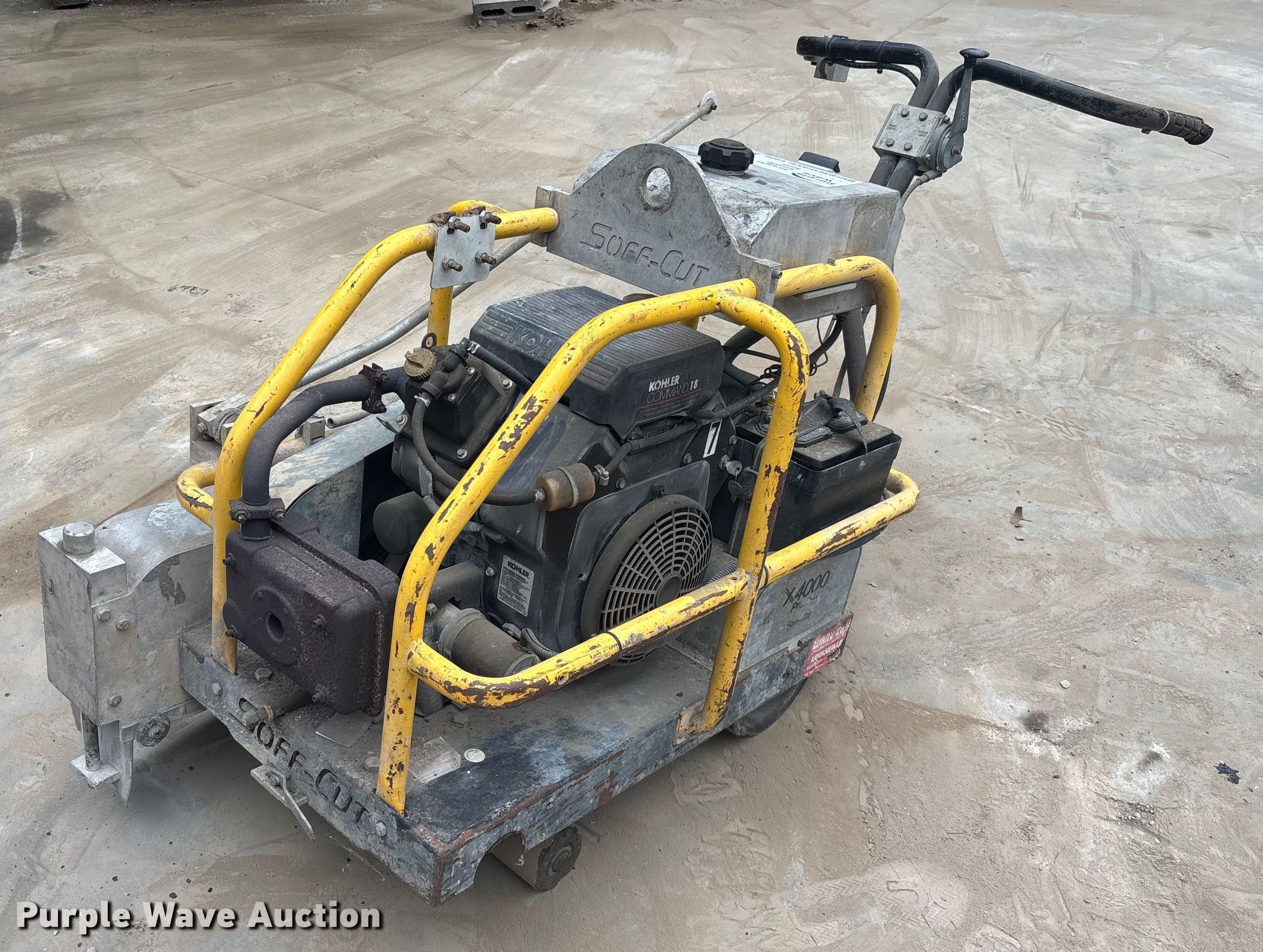 Husqvarna X-4000 Soft-Cut concrete saw. Hours: Unknown, Serial: 1239. Engine Kohler Command 18, Cylinders: 2, Fuel type: Gas. Features Blade capacity: 14�. Notes Non-operational hour meter. Rudy & Sons Concrete LLC. Hardeeville, SC 29927