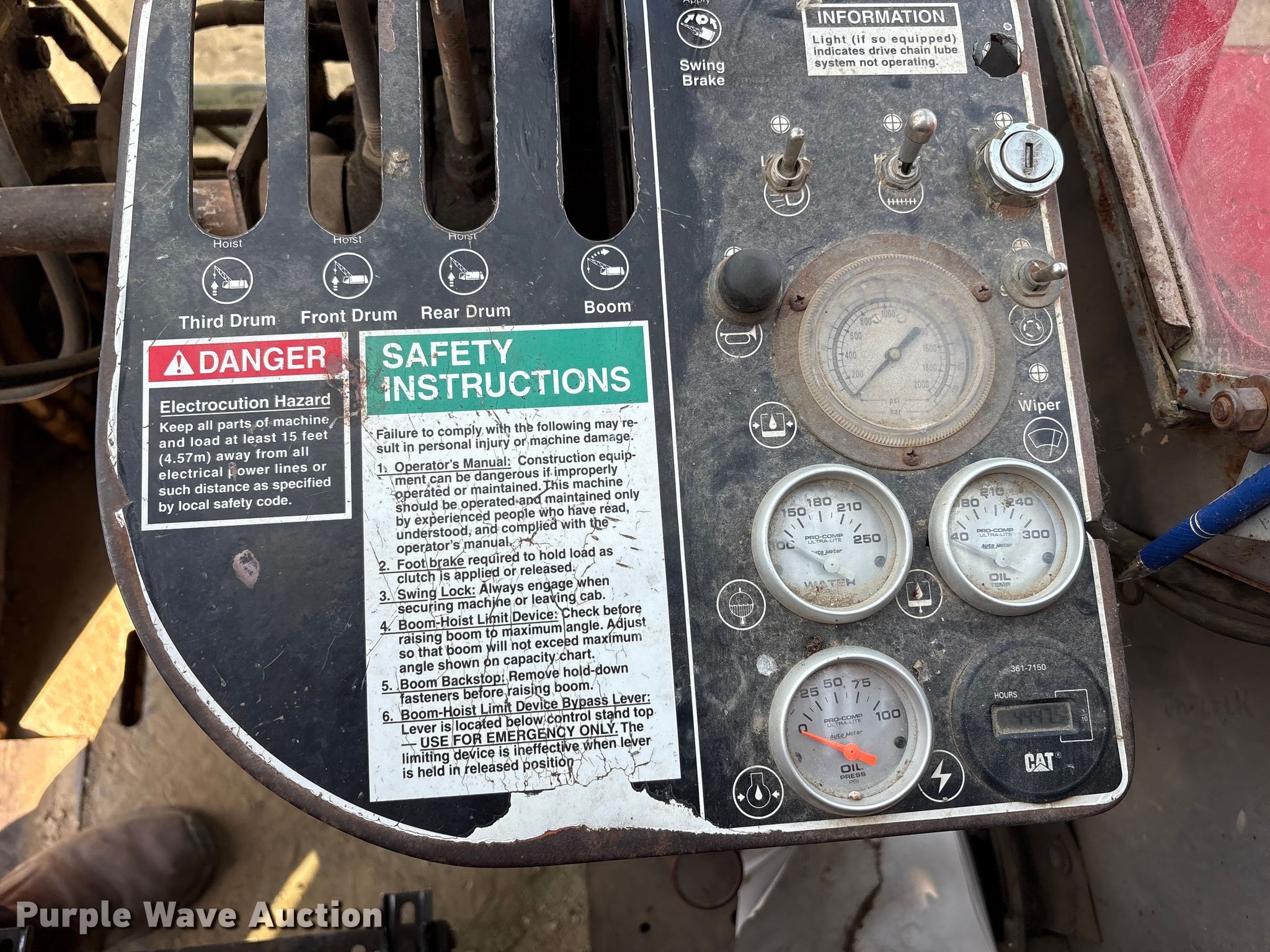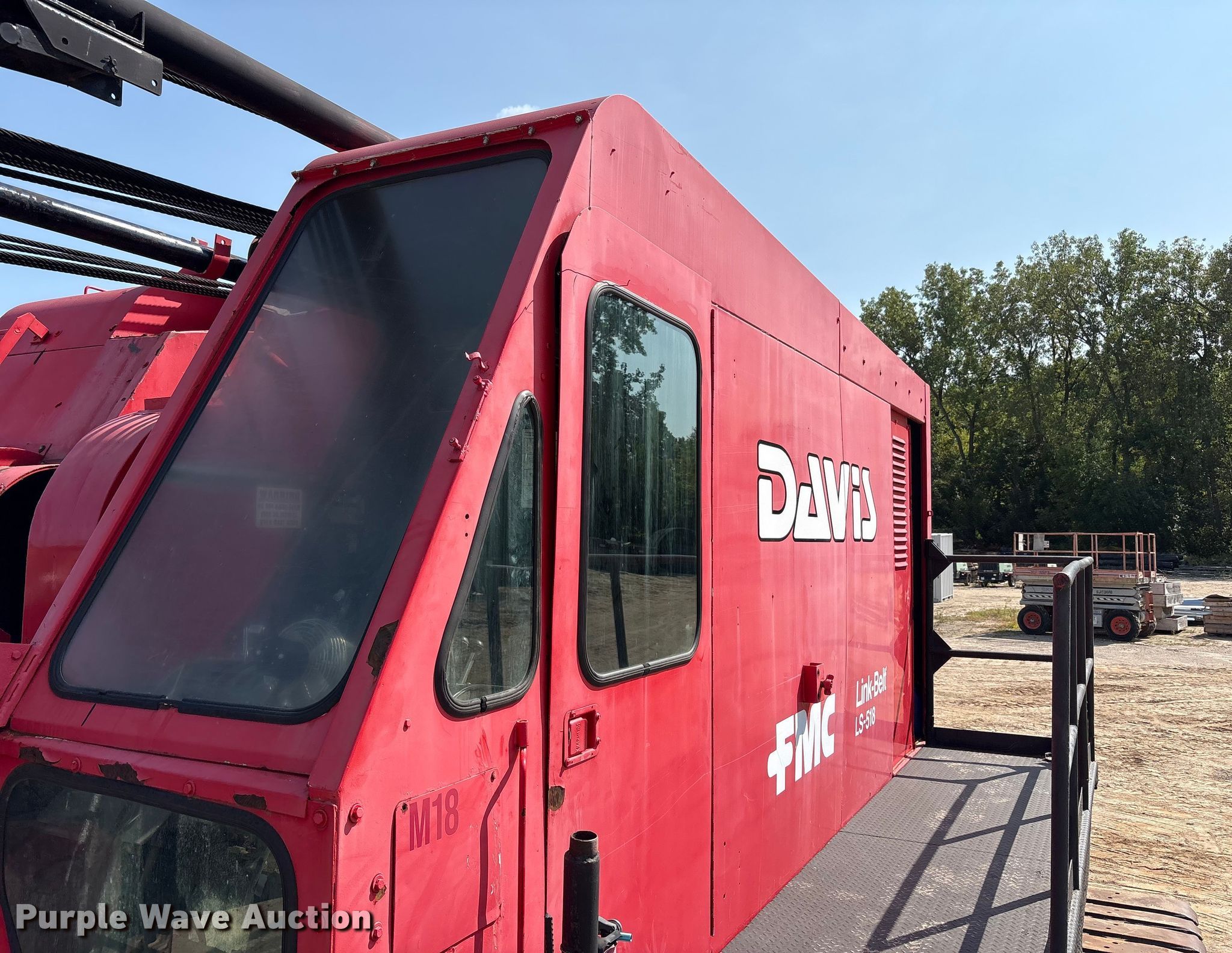 1976 Link-Belt LS 518 crane. Hours: 4,448 on meter, Actual hours unknown, Serial: 4EW644. Engine Cummins, Cylinders: 6, Fuel type: Diesel. Transmission Direct-drive. Chassis Propulsion: Mechanical, Controls: Mechanical actuated. Operators station Enclosed cab, Crane controls: Stick. Features Boom Lattice, Maximum boom length: 180' Sections: 6, Boom controls In-cab, Removable counter weight, Crane block Sheaves: 5, Lift chart. Tracks Width: 44". Notes Additional parts included. Davis Construction. Mulliken, MI 48861