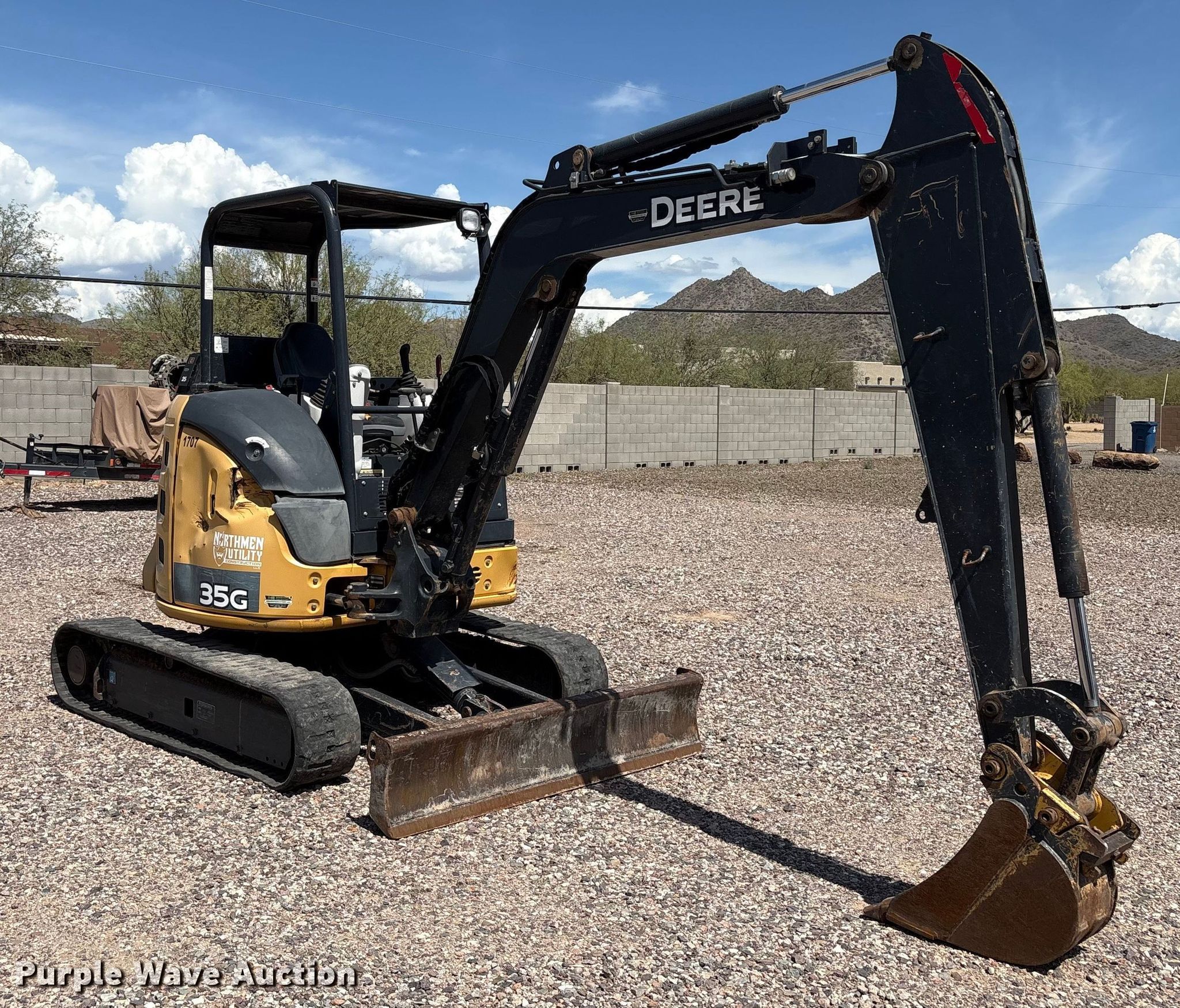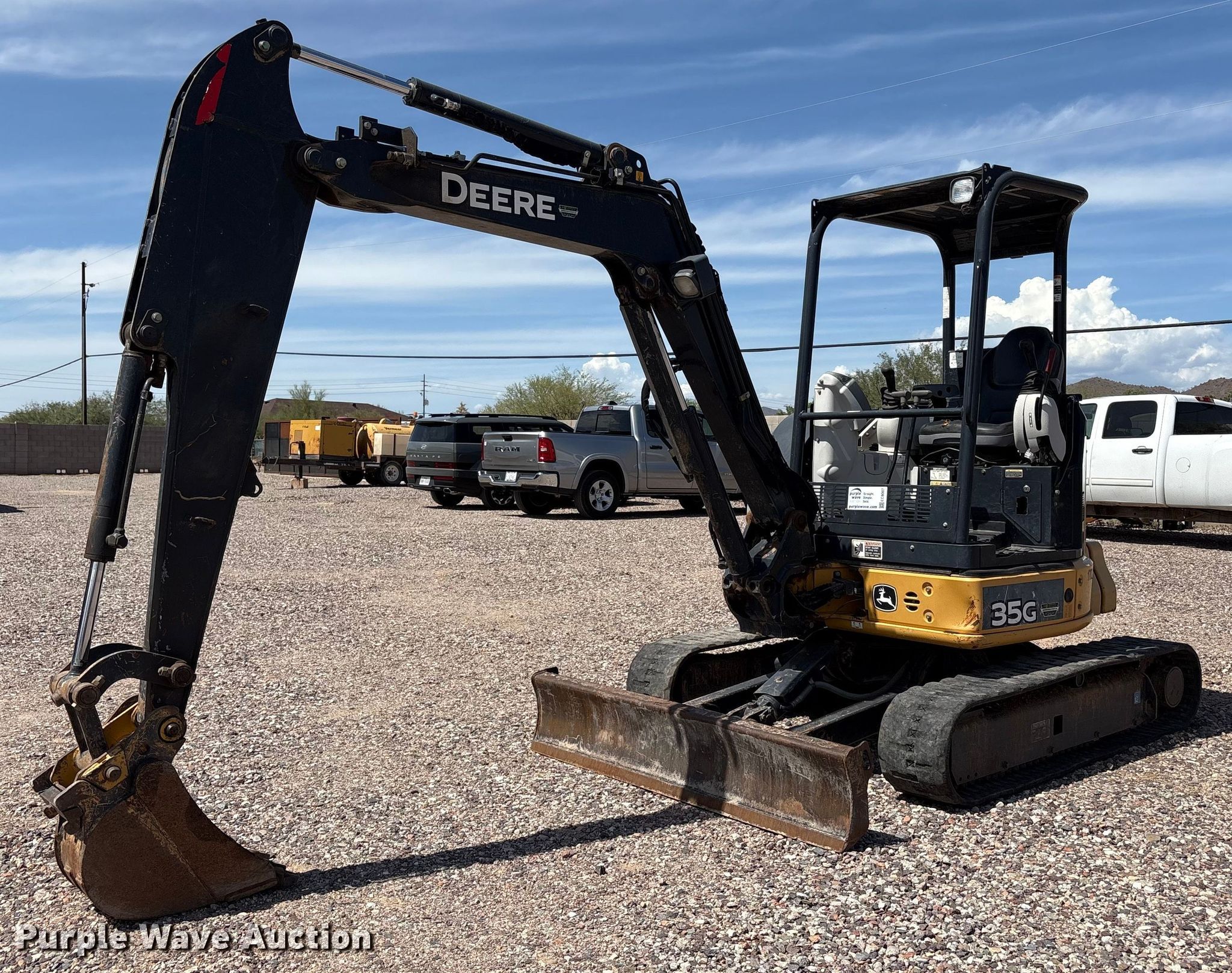 Purple Wave is selling a used Mini Excavator in Arizona. This item is a 2015 John Deere 35G mini excavator with the following: Hours: 2,249 on meter, Serial: 1FF035GXKFK273280