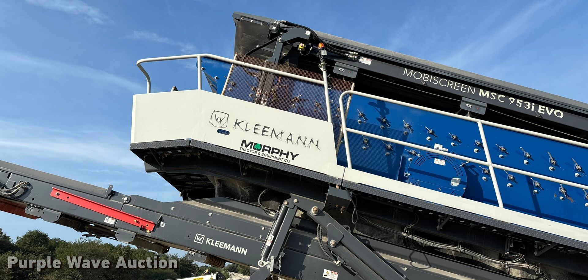 2022 Kleemann Mobiscreen MSC 953i Evo screening plant. Hours: 2,181 on meter, Miles or hours may vary, unit still in use, Serial: WKB0K106AKLA00133. Engine John Deere 4045WG501A,B, Serial: CD4045U207812, Displacement: 4.5L, Cylinders: 4, Fuel type: Diesel. Features Screen deck Length: 20', Width: 56", Decks: Triple, Screen size Top: 1", 2", Middle: 0.5", Bottom: 0.188", Input hopper Length: 12' 6", Width: 71", Conveyors Feeding conveyor: 38' 3" L x 39" W, Input: 11' L x 39" W, Discharge: 29' L x 19" W, Discharge: 33' L x 31" W, Discharge: 33' L x 31" W, Discharge: 27' L x 47" W, Remote control. Tracks Width: 16", Steel, Grouser Pads: Triple. Erlen Group. Green Forest, AR 72638