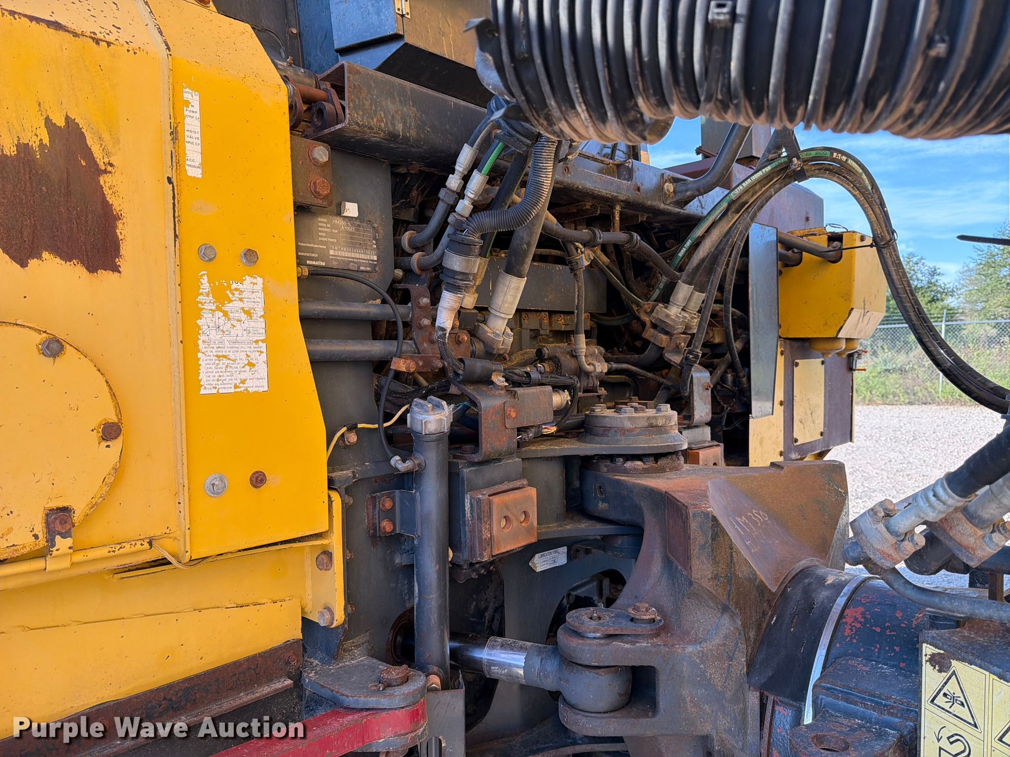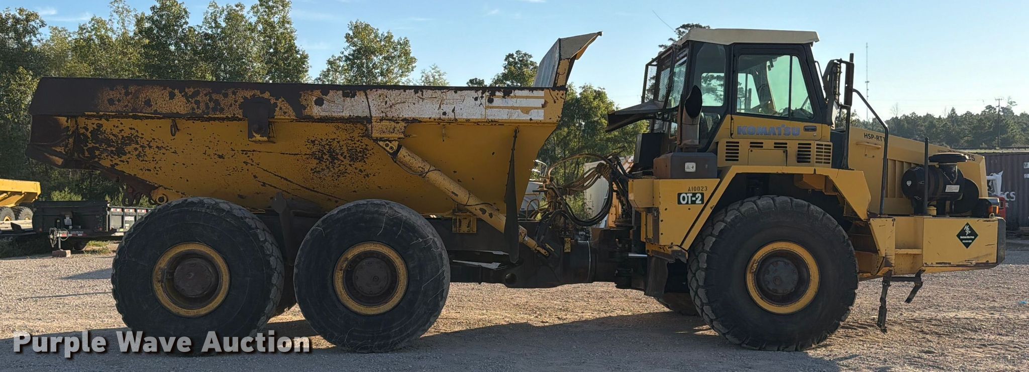 Purple Wave is selling a used Articulated Haul Truck in Texas. This item is a 2006 Komatsu HM350-1L articulated haul truck with the following: Miles: 85,034 on odometer, Hours: 19,365 on meter, Serial: KMTHM003H54A10023