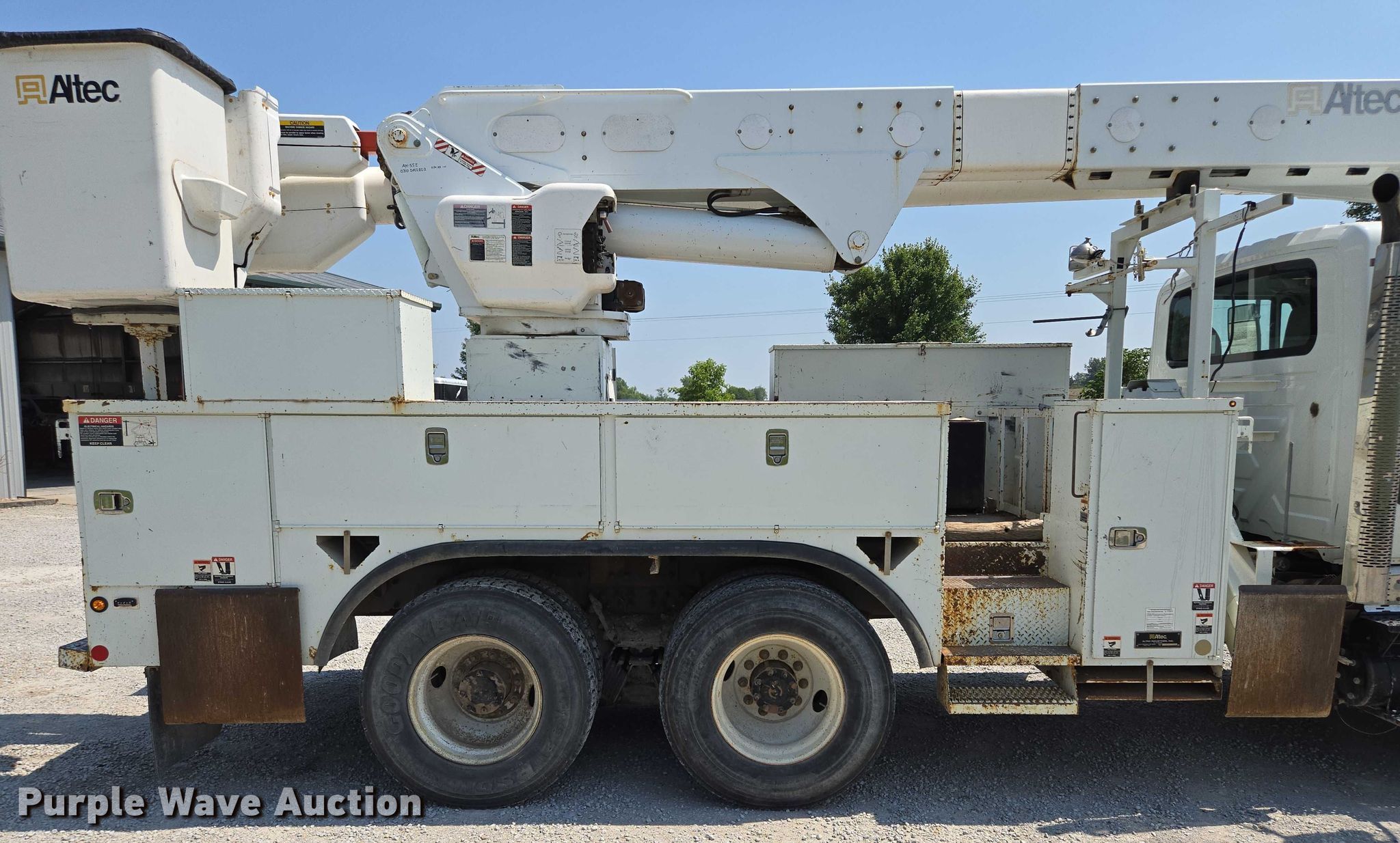 2011 International 7500 bucket truck. Hours: 14,901 on meter, Miles: Unknown, VIN: 1HTWNAZTXBJ309053. Engine International Maxxforce GDT350, Displacement: 9.3L, Cylinders: 6, Fuel type: Diesel. Transmission Allison, Automatic. Chassis Axles: Tandem, Suspension: Spring over walking beam, Brakes: Air, PTO, GVWR: 56,000 lbs. Interior AC, Heat, Cruise control, Auxiliary controls. Features Bed Altec, 16' 4" L x 94" W, Boom Altec AM-55E, Maximum lift height: 55', Boom type: Articulating, Insulated, Man basket, Boom controls Ground, Platform/ basket, Material handler. Tires Size: 11R22.5. Notes Injector issues, injector needs replaced , Dash warning indicator: Check engine, Windshield chipped or cracked, Dead battery. Oklahoma title. Mileage has not been verified. Odometer discrepancy will be marked on the title. Title distribution may be delayed up to 14 days from verification of funds. Plattsburg, MO 64477