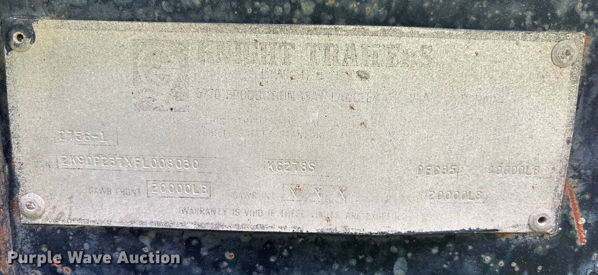 Purple Wave is selling a used Trailer Other in Texas. This item is a 1985 Knight Trailers roll off trailer with the following: VIN: 2K9DP237XFL008030