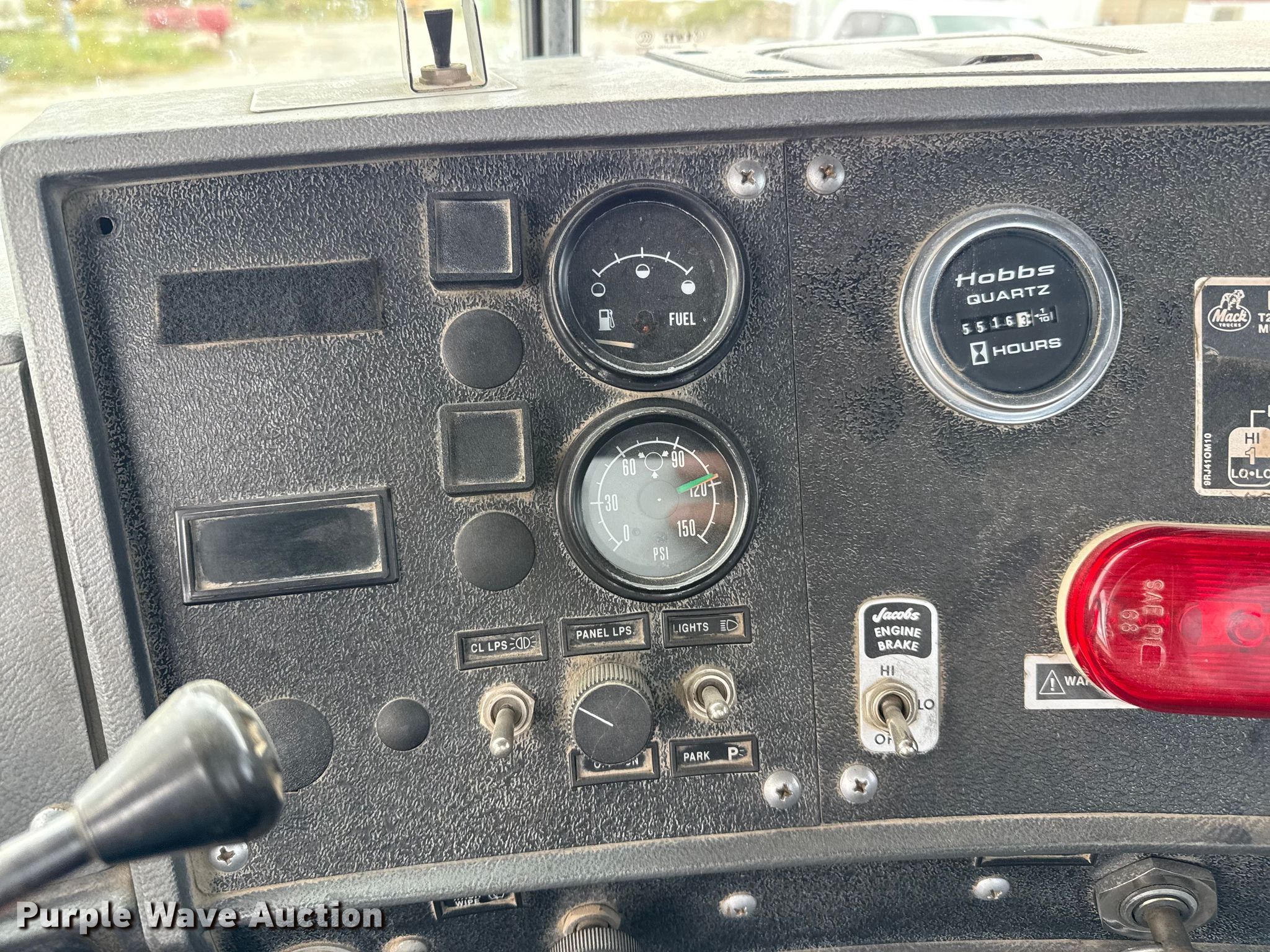1997 Mack RD690S ready mix truck. Miles: 181,142 on odometer, Hours: 25,683 on meter, VIN: 1M2P264C7VM023562. Engine Mack EM7-300, Displacement: 12.0L, Cylinders: 6, Fuel type: Diesel, HP: 300, Engine brake. Transmission Manual, Speed: 8. Chassis Axles: Triple, Tag axle, Suspension: Spring, Brakes: Air, PTO. Interior AC, Heat. Features Mixer McNeilus, Serial: 44406-09617, Capacity: 11 cu.yd., Discharge: Rear, In-cab controls, Rear drum controls, Water tank capacity: 150 gallons, Chute Extensions: 3, Chute type: Steel.. Tires Front: 425/65R22.5, Rear: 11R22.5, Lift axle: 11R22.5. Notes Jump start required during on-site data collection. Iowa title. Title distribution may be delayed up to 30 days from verification of funds. Croell Inc.. Clayton, NM 88415