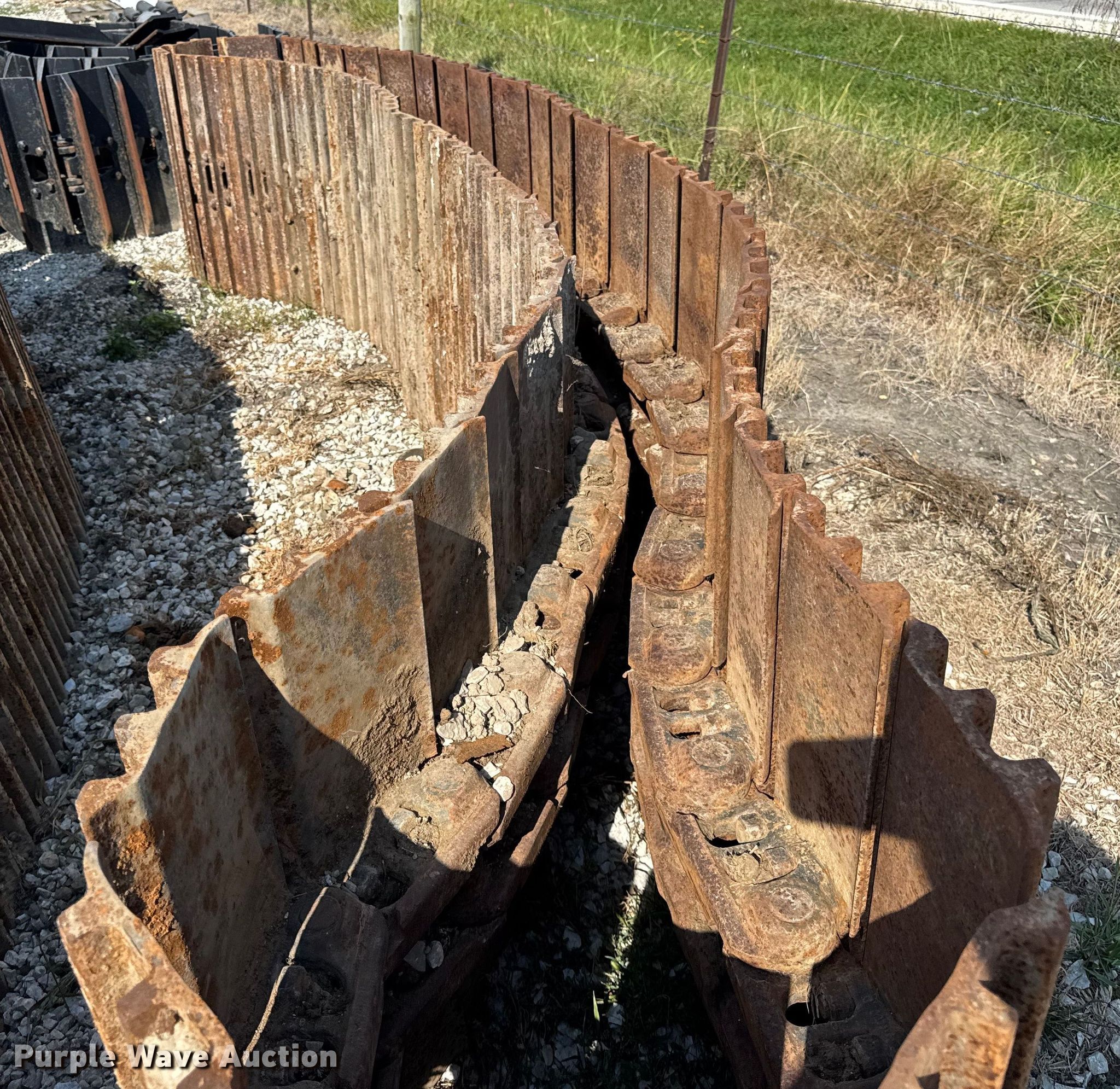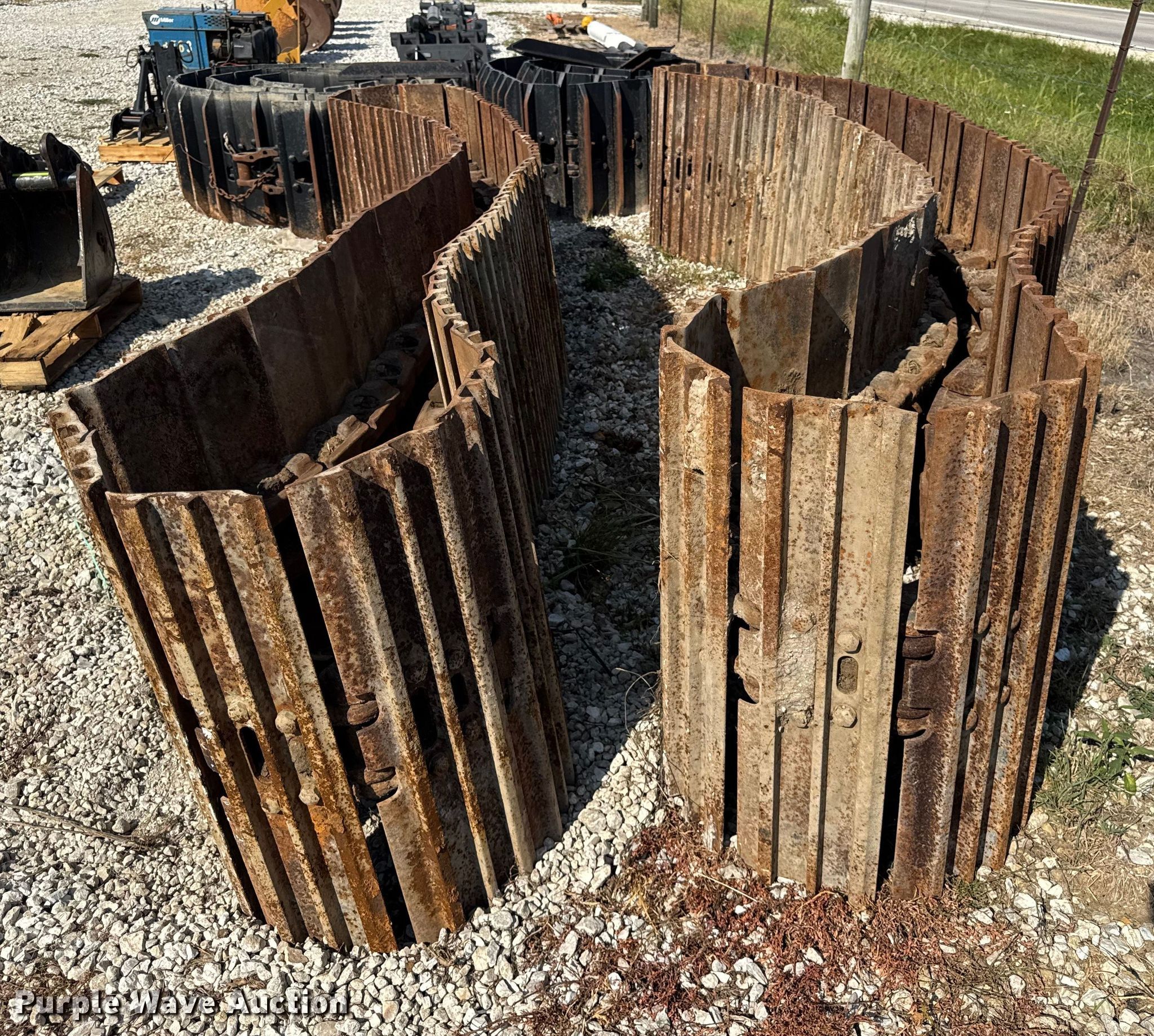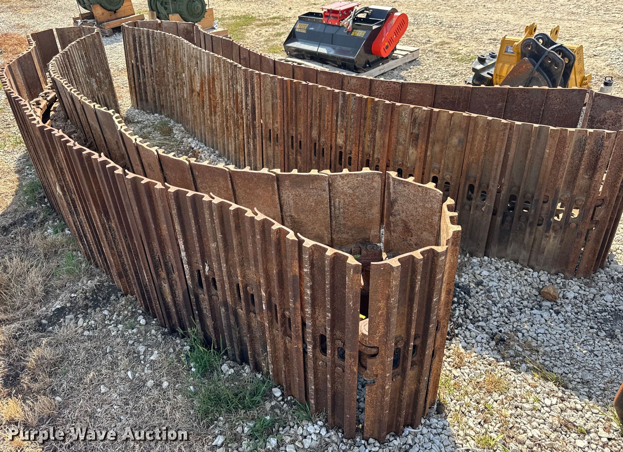 John Deere 210G tracks. Width: 31.5", Grouser pads: Triple, Removed from John Deere 210G. L.C.S. Equipment. Cuba, IL 61427