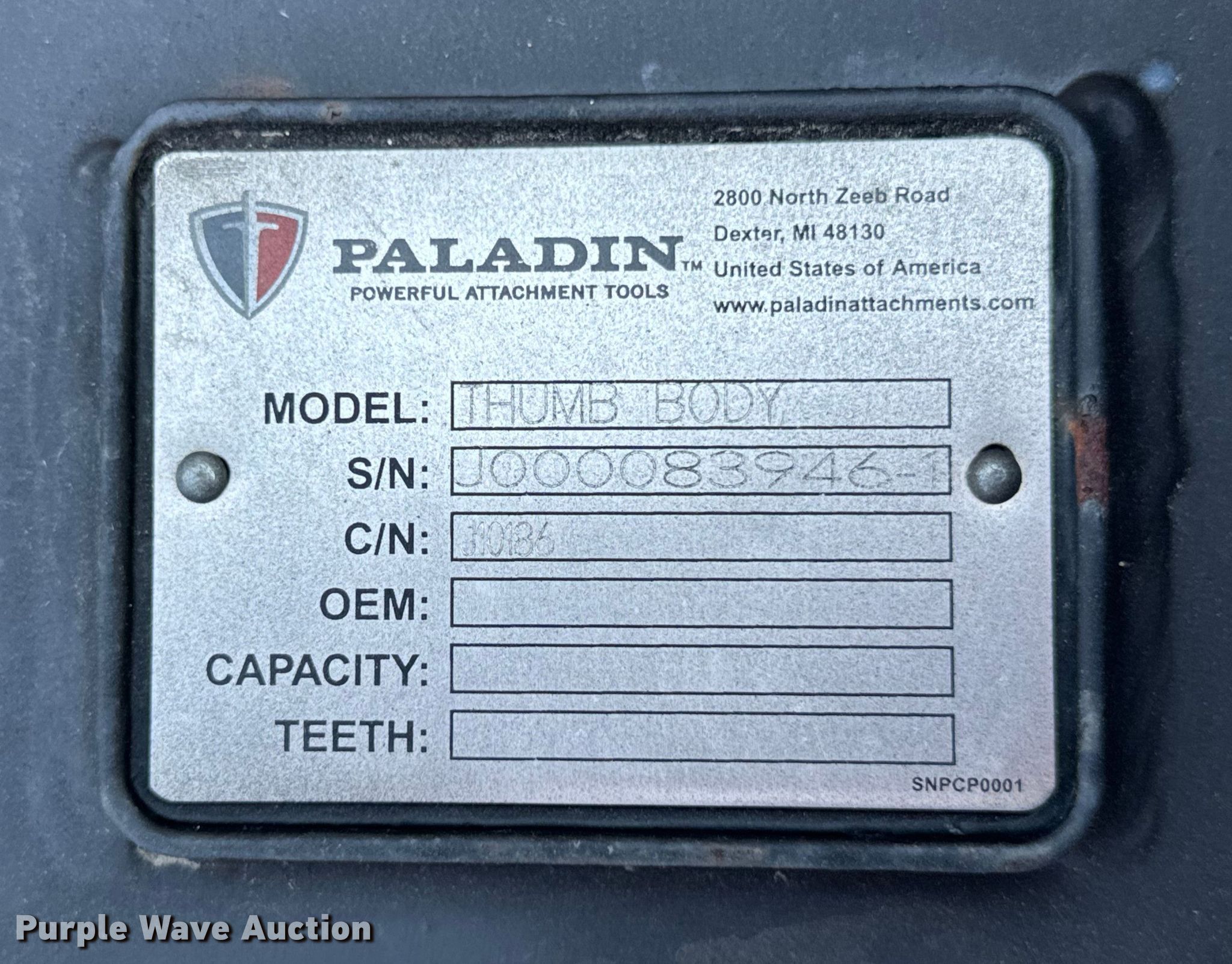 Take a look at this used Paladin Thumb Body excavator thumb being sold on October 23rd, 2025 in the SOLD! October 23 Construction Equipment Auction made by Paladin. Take a look at all of the item information below or take a look at similar auctions for Excavators.