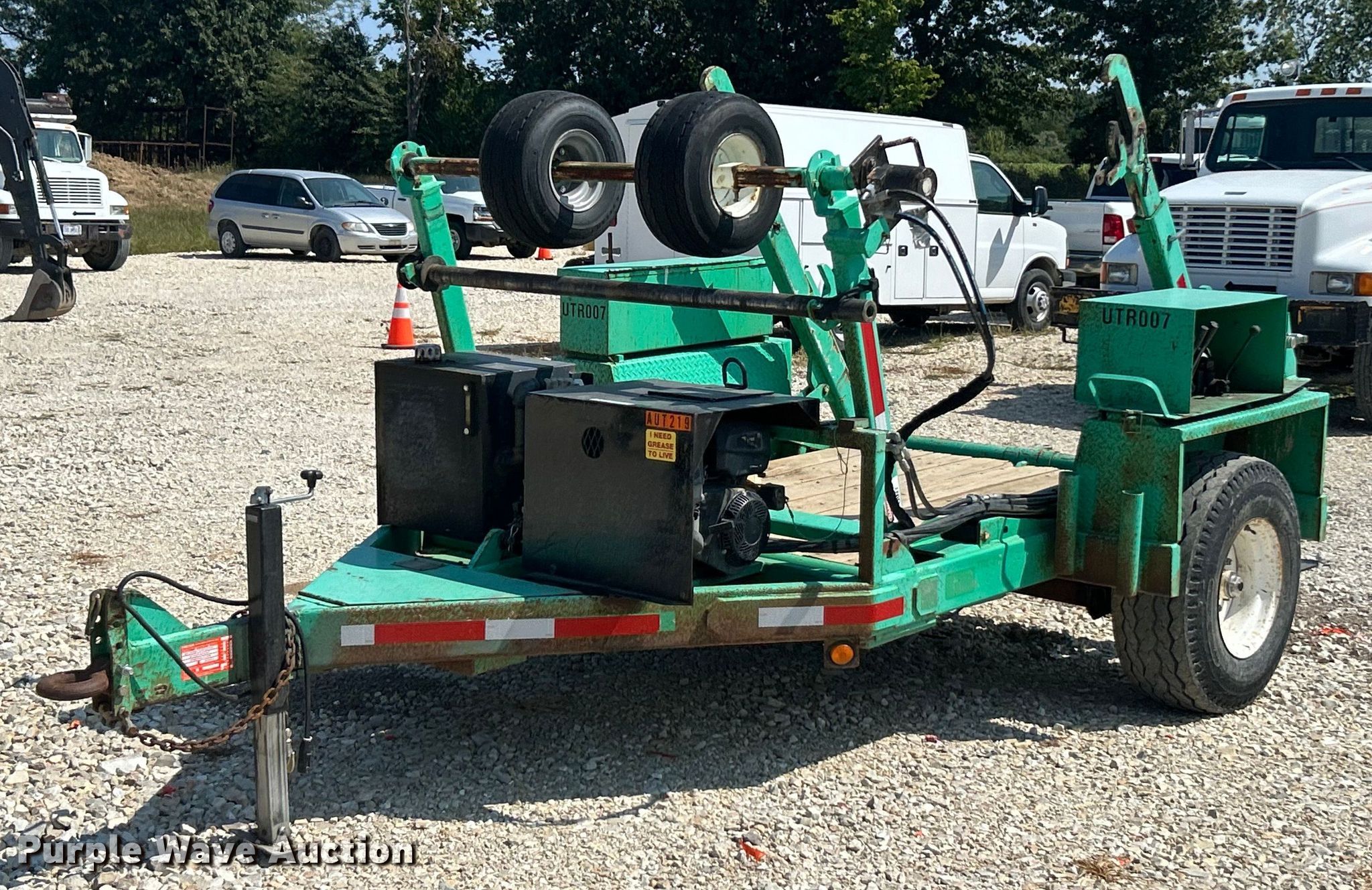 Larson reel trailer. VIN: UTR007378251. Dimensions Overall Length: 14', Width: 102". Engine Kohler, Displacement: 429 cc, Cylinders: 1, Fuel type: Gas. Features Reel: Single, Maximum reel width: 5', Self-contained hydraulics. Chassis Hitch: Pintle, Landing gear: Single, Brakes: Electric. Tires Size: 12-16.5. This is worksite support equipment and will not come with a title. Transfer of ownership documentation will be a bill of sale. Sellenriek Construction Inc.. Jonesburg, MO 63351