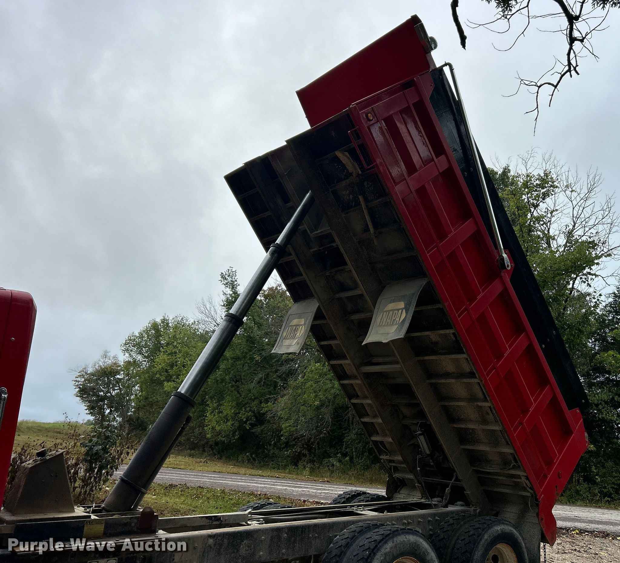2007 International 7500 dump truck. Miles: 332,459 on odometer, Hours: 15,976 on meter, VIN: 1HTWPAZT57J404864. Engine International, Displacement: 9.3L, Cylinders: 6, Fuel type: Diesel. Transmission Eaton Fuller 8LL, Manual, Speed: 10. Chassis Double frame, Axles: Tandem, Differential lock: Inter-axle, Suspension: Spring over walking beam, Brakes: Air, PTO, GVWR: 56,540 lbs FAWR: 16,540 lbs, IAWR: 20,000 lbs, RAWR: 20,000 lbs. Interior AC, Heat, Heated mirrors, Cruise control. Features Bed Dump bed, OX Bodies, Serial: 406727AR, Length: 16', Width: 96", Capacity: 96 cu.yd., Side height: 45", Side board height: 18", Bed type: Steel, Roll tarp, Ram: Single, End gate: Air operated. Tires Front: 315/80R22.5, Rear: 11R22.5. Notes Dash warning indicator: Check AC, Washer Fluid, Windshield chipped or cracked. Missouri title. Title distribution may be delayed up to 14 days from verification of funds. Barrett Materials Inc. New Haven, MO 63068