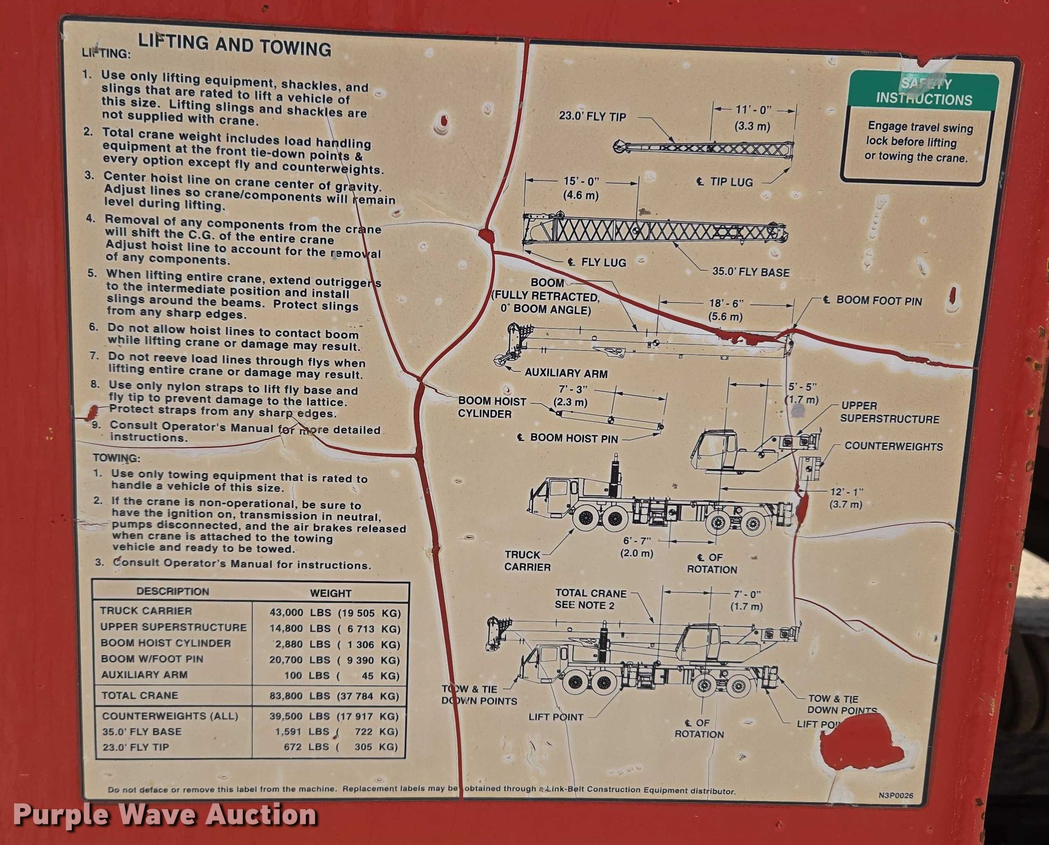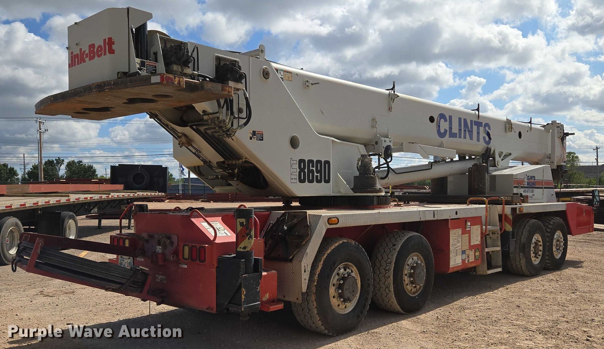 Purple Wave is selling a used Truck Crane in Oklahoma. This item is a 2005 Link-Belt HTT8690 crane with the following: Miles: 30,739 on odometer, VIN: 1F9N3J57X5L028776, Serial: N3J5-7776