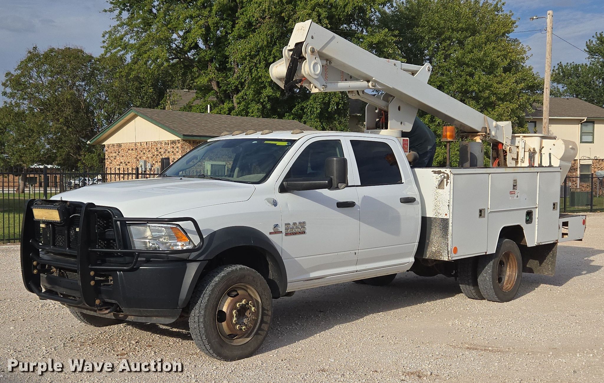 Purple Wave is selling a used Bucket Truck in Oklahoma. This item is a 2015 RAM 5500 Crew Cab bucket truck with the following: Miles: 188,560 on odometer, VIN: 3C7WRNEL2FG559203