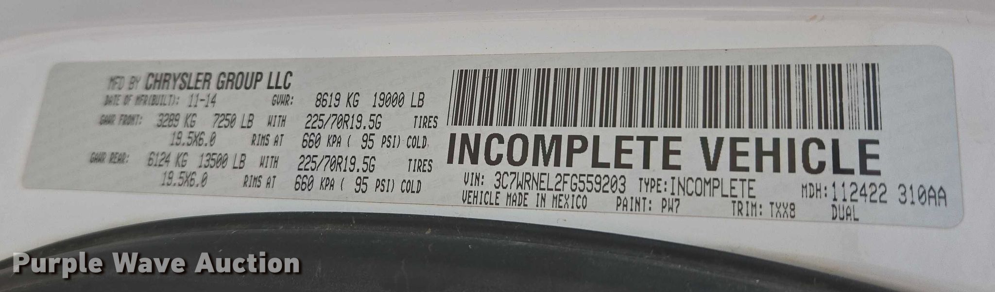 • VIN: 3C7WRNEL2FG559203