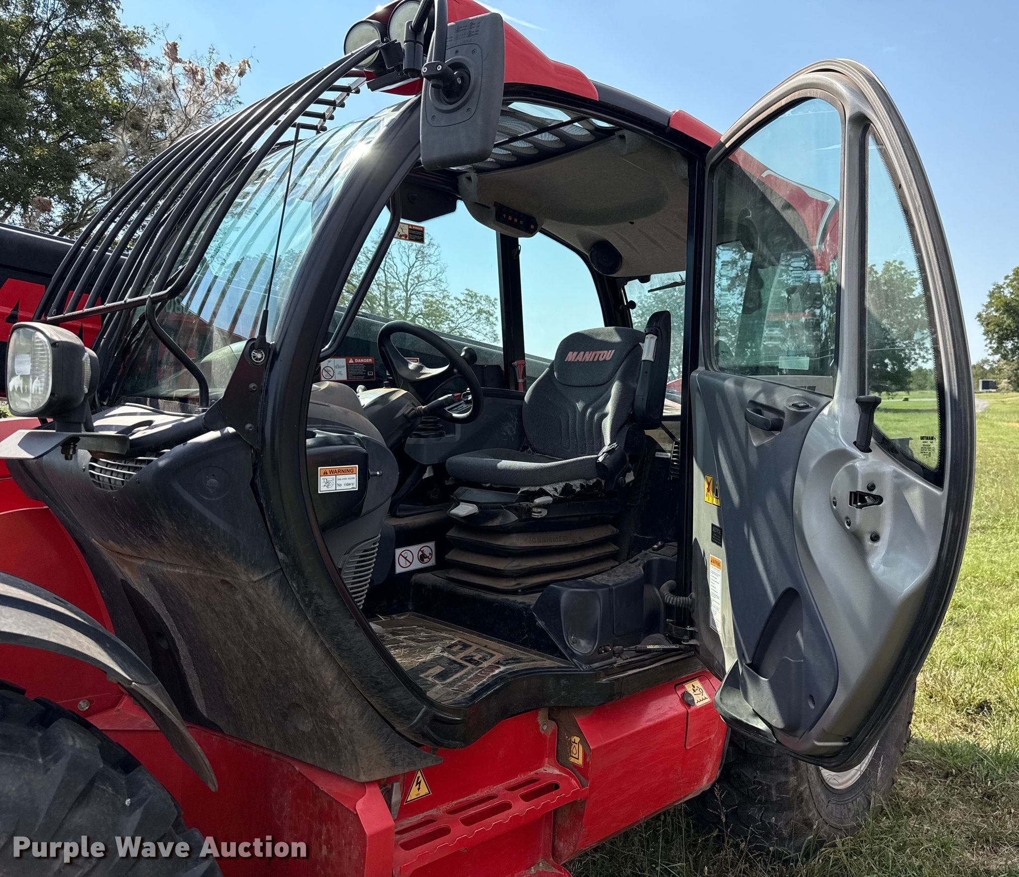 2019 Manitou MLT 961-145 V+L telehandler. Hours: 652 on meter, Serial: MAN00000K00776758, Insurance Salvage Unit Claim #: 5-812417. Engine John Deere 4045H, Serial: R562119, Displacement: 4.5L, Cylinders: 4, Fuel type: Diesel. Transmission Hydrostatic, Four wheel drive. Operators station Enclosed cab, AC, Heat, Steering: Crab, Four wheel. Features Maximum lift capacity: 13,228 lbs, Maximum lift height: 30', Boom stages: 2, Auxiliary hydraulics, Hydraulic leveling, Quick attach: Hydraulic. Tires Front: 500/70R24. Notes Fuel system issues, DEF in fuel, Non-operational unit. Oklahoma Farm Bureau Insurance. Seminole, OK 74868