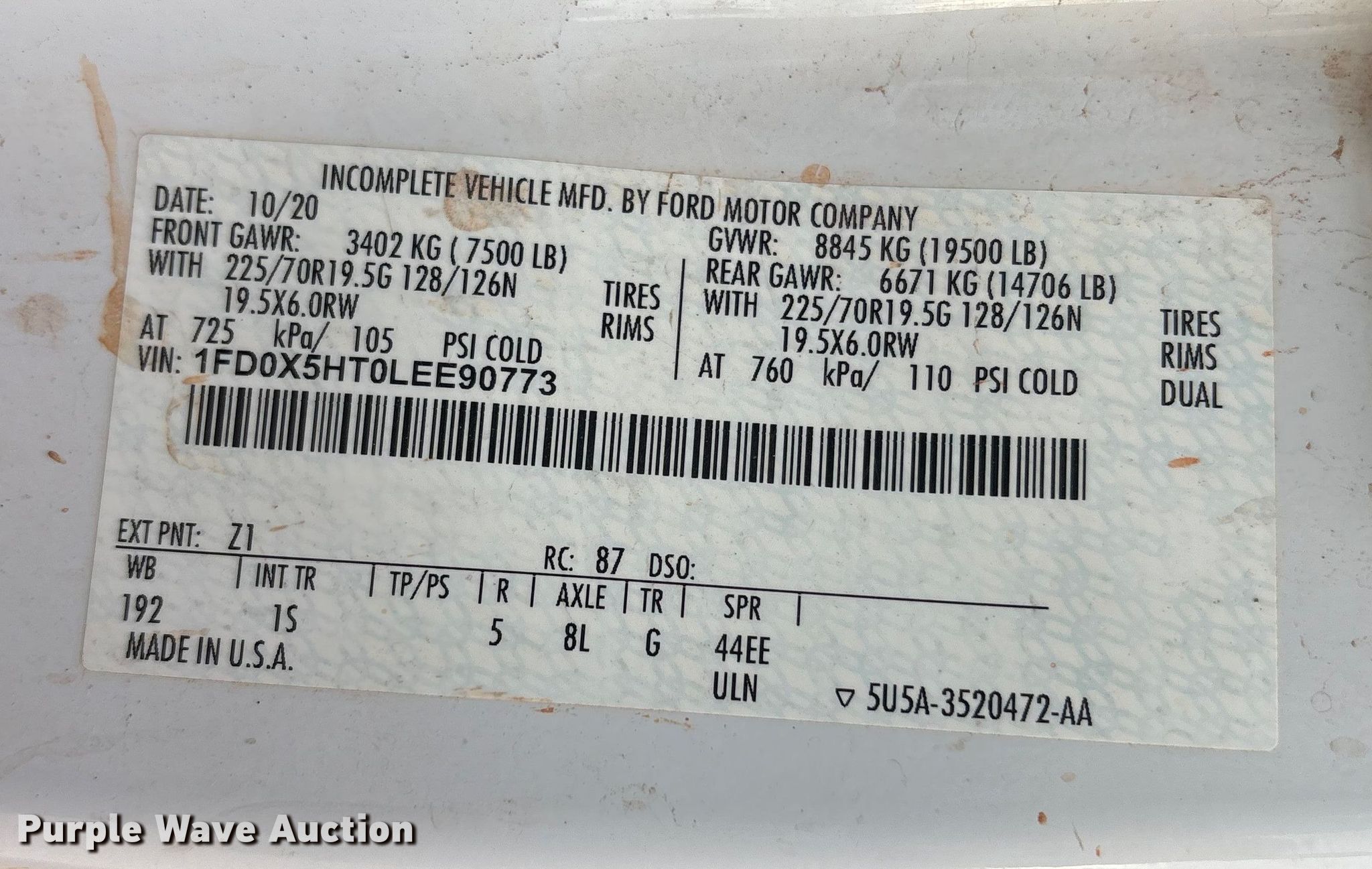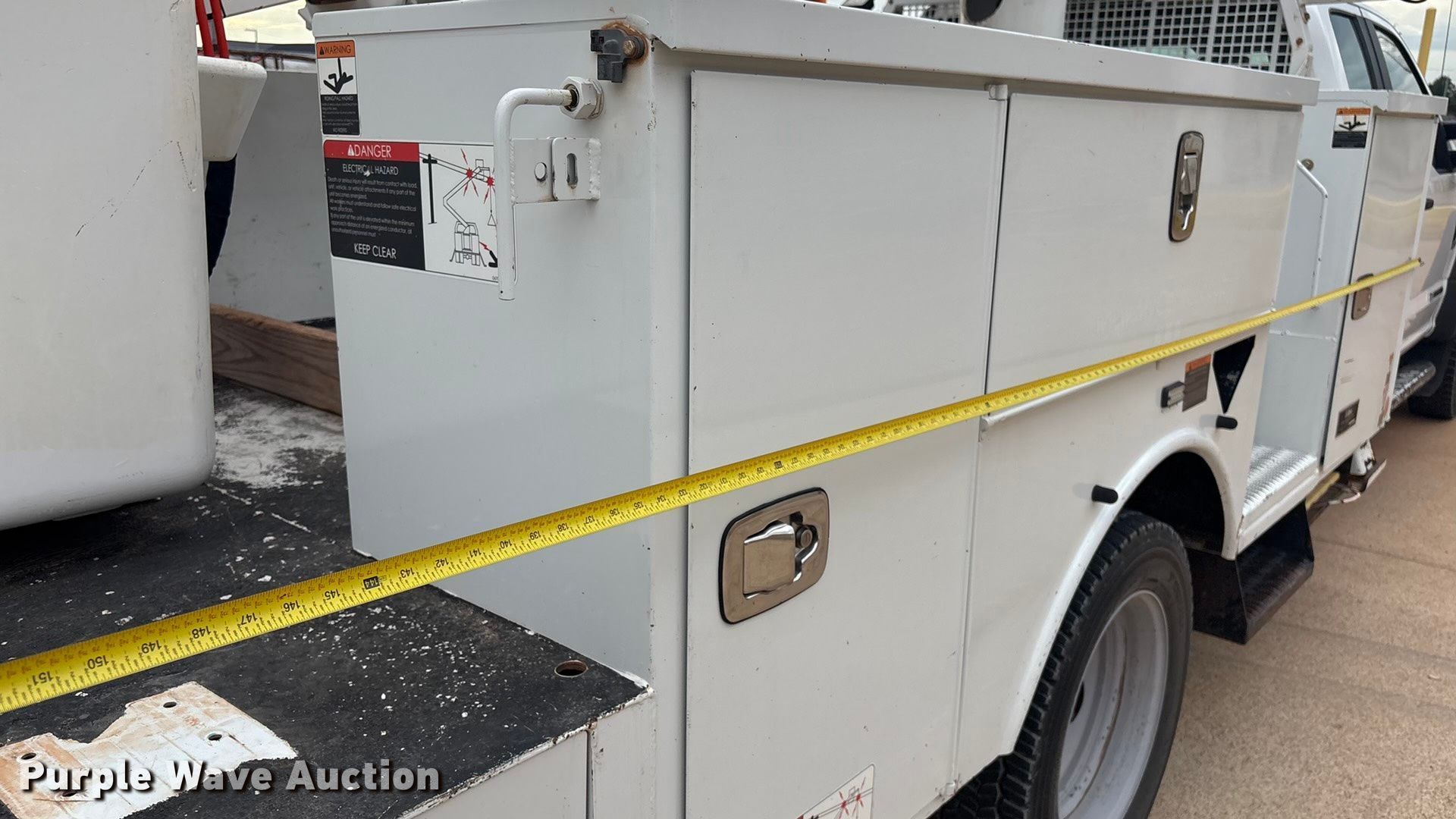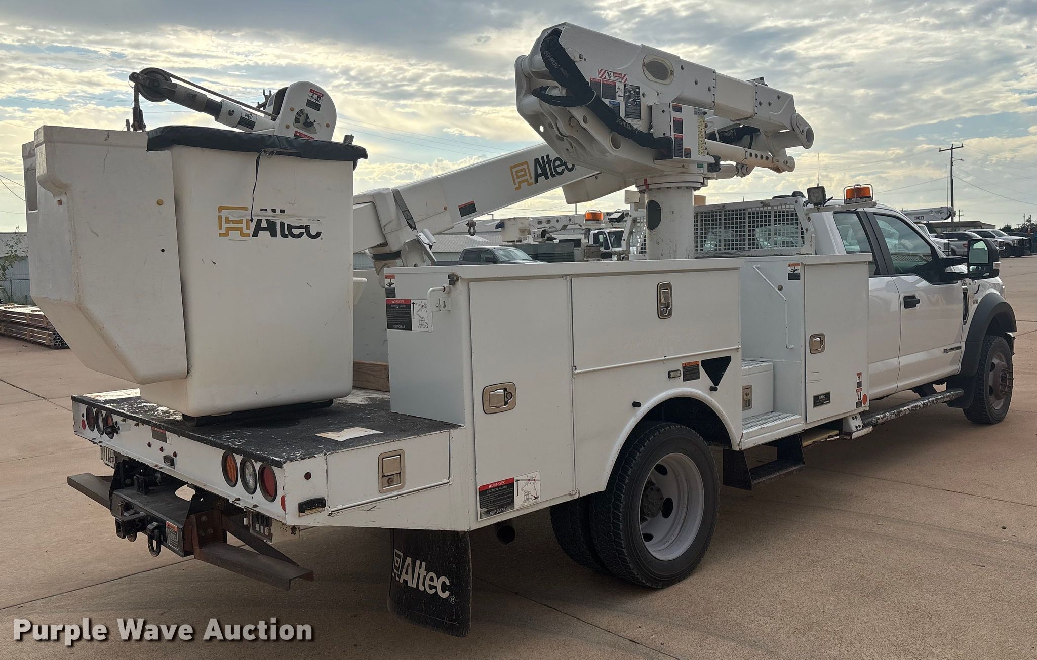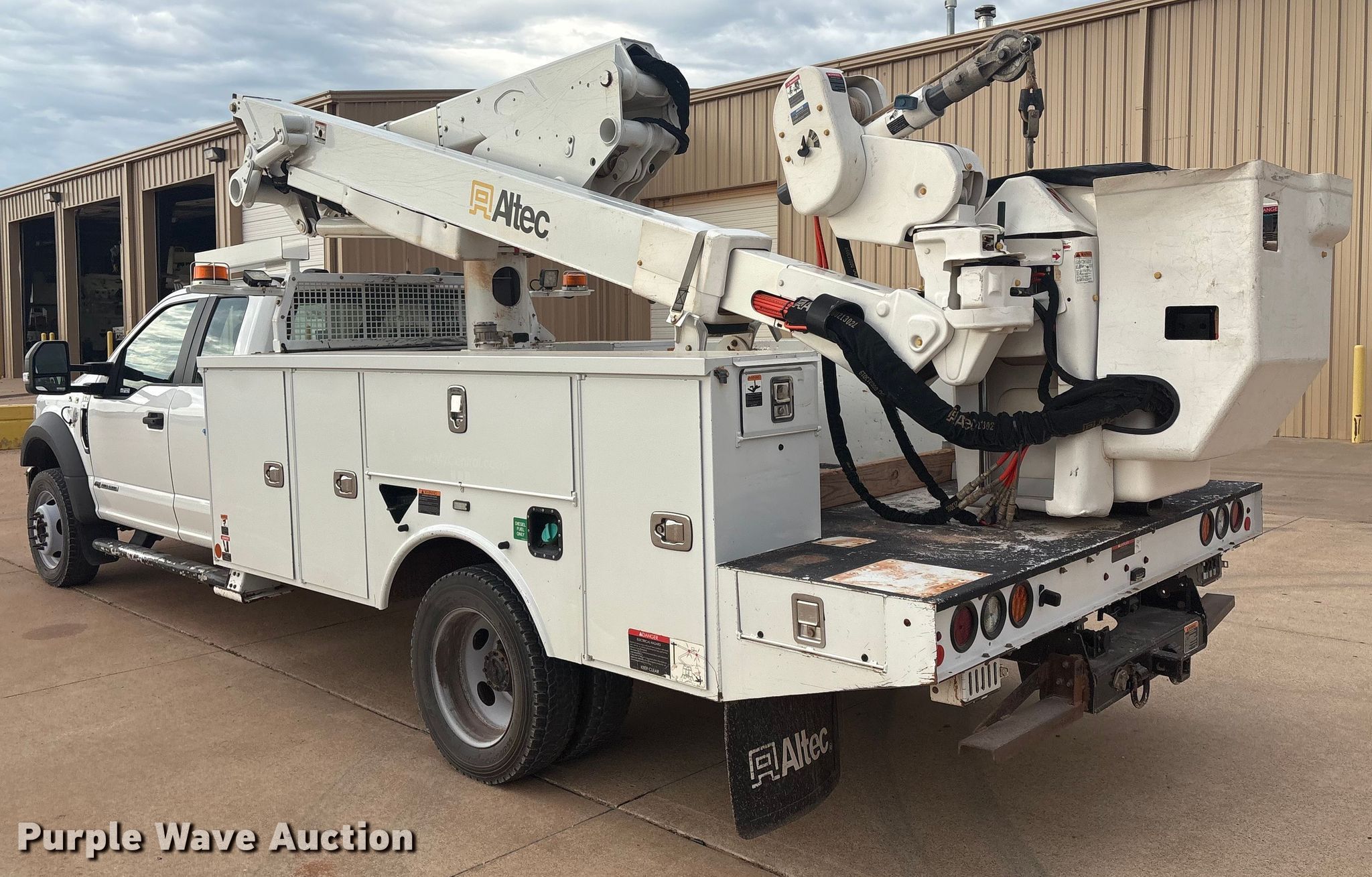 2020 Ford F550 SuperCab bucket truck. Miles: 212,703 on odometer, VIN: 1FD0X5HT0LEE90773. Engine Displacement: 6.7L, Cylinders: 8, Fuel type: Diesel. Transmission Automatic. Chassis Four wheel drive, Axles: Single, Suspension: Spring, Brakes: Hydraulic, PTO, Wet kit, GVWR: 7,500 lbs, Wheelbase: 192". Interior AC, Heat, Heated mirrors, Power windows, Power locks, Cruise control, Backup camera, Auxiliary controls, Brake controller. Features Bed Utility bed, Altec Industries Inc. 000870701-990399464, Serial: 856-76282428, Length: 13' 4", Width: 94", Boom 2020 Altec AT41M, Serial: 1120GH3431, Mast height: 41', Maximum lift capacity: 400 lbs, Boom type: Articulating, Insulated, Telescopic, Man basket, Boom controls Ground, Platform/ basket, Material handler, Certification valid through: 12/2025. Tires Size: 225/70R19.5. Notes Dash warning indicator: Check engine, Windshield chipped or cracked. Oklahoma title. Title distribution may be delayed up to 14 days from verification of funds. Central Rural Electric Cooperative, Inc.. Stillwater, OK 74074
