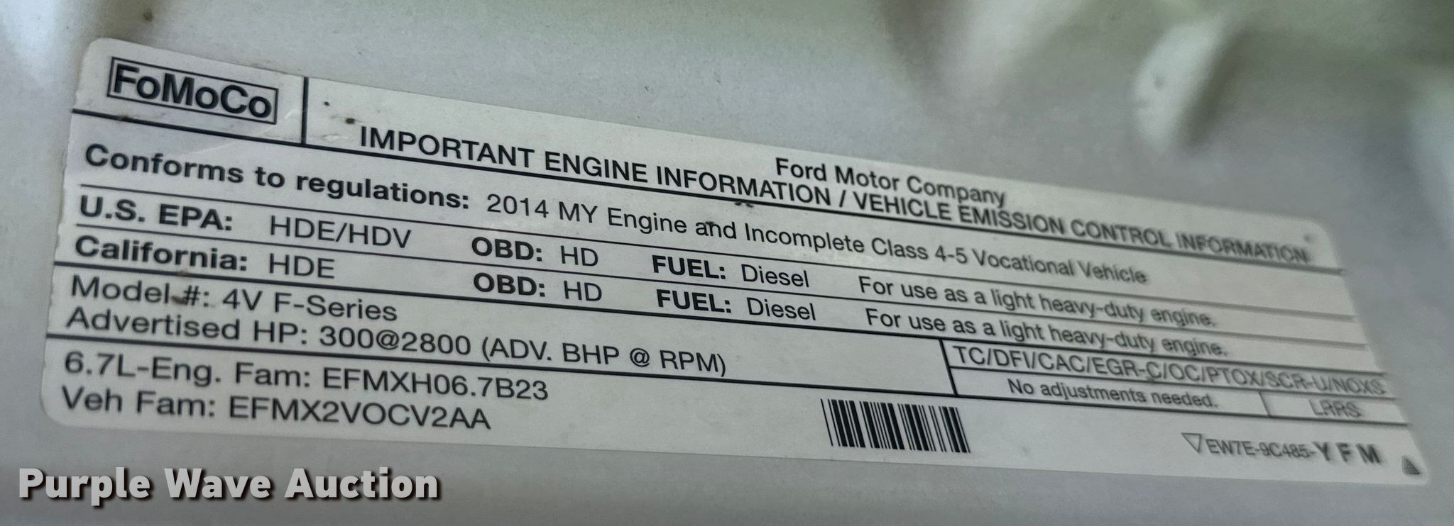 2014 Ford F550 SuperCab truck cab and chassis. Miles: Unknown, VIN: 1FD0X5HT8EEB46014, Unit #: S17173-K015173. Engine Displacement: 6.7L, Cylinders: 8, Fuel type: Diesel. Transmission Automatic. Chassis Four wheel drive, Axles: Single, Suspension: Spring, Truck chassis: 9'. Interior AC, Heat, Heated mirrors, Power windows, Power locks, Cruise control, Auxiliary controls, Brake controller. Tires Size: 255/70R19.5. Notes Dead battery, Non-operational engine, blown , Non-operational unit, Unit must be towed or hauled , Service records available upon request to [email protected]. North Dakota title. Mileage has not been verified. Odometer discrepancy will be marked on the title. Title distribution may be delayed up to 14 days from verification of funds. Knife River. Grand Forks, ND 58203