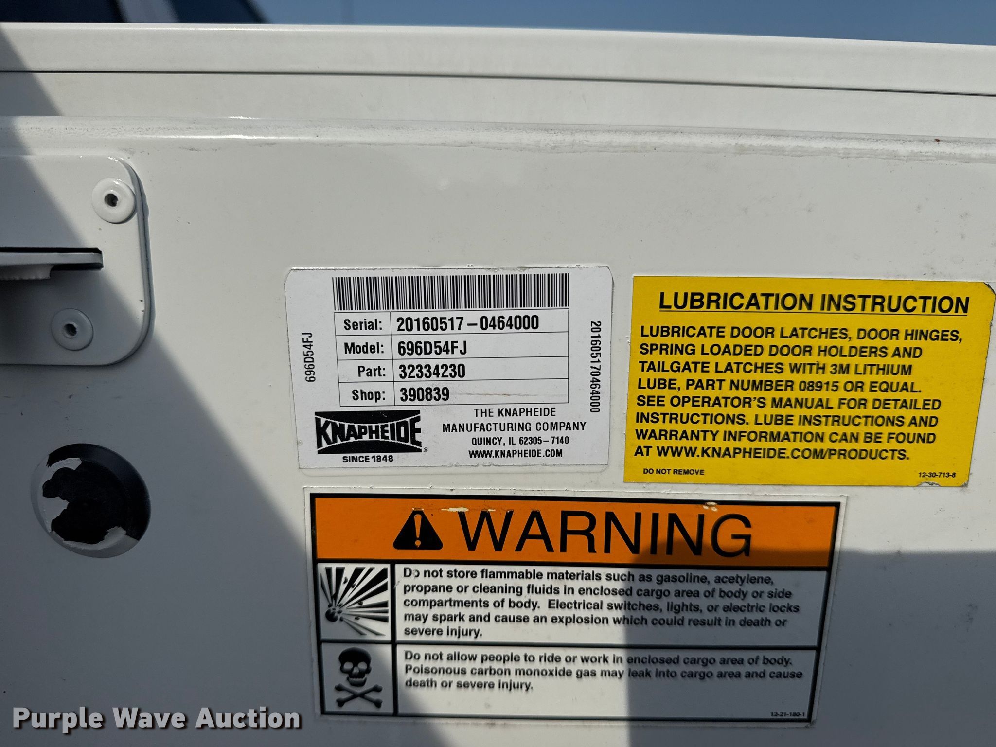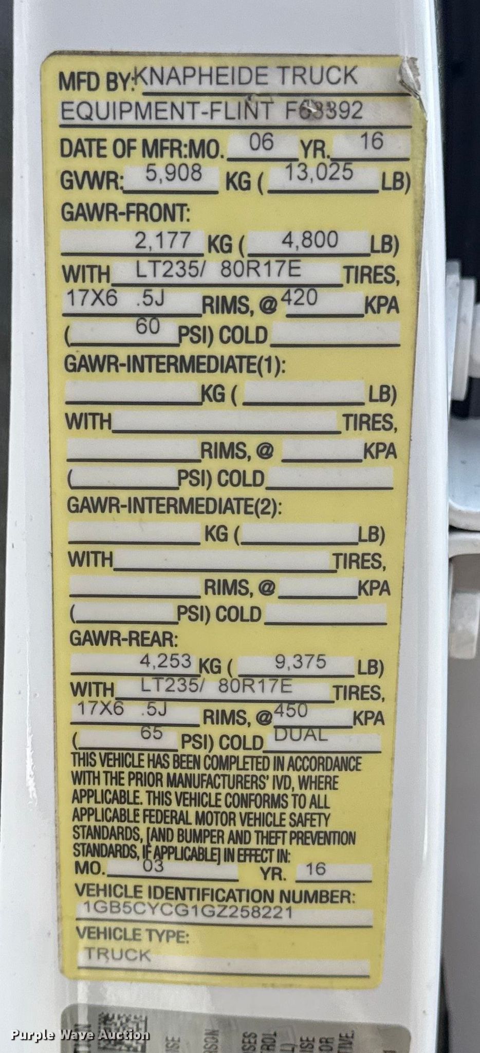 2016 Chevrolet Silverado 3500HD Double Cab utility bed pickup truck. Miles: 101,785 on odometer, VIN: 1GB5CYCG1GZ258221. Engine Displacement: 6.0L V8 OHV, Cylinders: 8, Fuel type: Gas. Transmission Automatic. Interior AC, Heat, Heated mirrors, Power windows, Power locks, Cruise control, Backup camera, Brake controller. Features Bed Utility bed, Knapheide 696D54FJ, Serial: 20160517-0464000, Length: 98", Width: 95". Tires Size: LT235/80R17. Oklahoma title. Seller is an Oklahoma licensed motor vehicle dealer. Buyers may be required to provide identification to the licensed dealer to comply with state laws. Title will be assigned and distributed by the dealer. Please contact the seller for distribution questions. Title distribution may be delayed up to 30 days from verification of funds. Collinsville, OK 74021