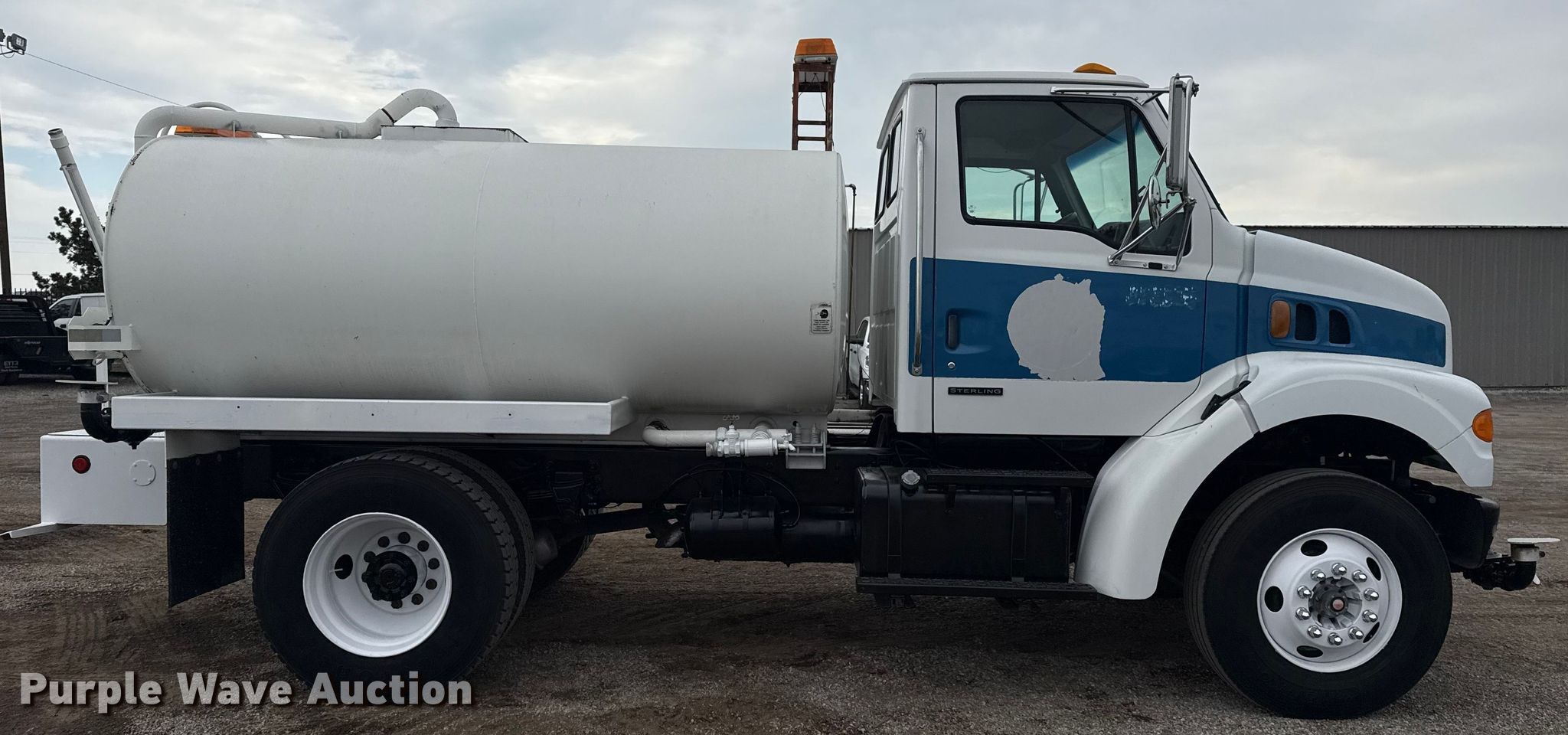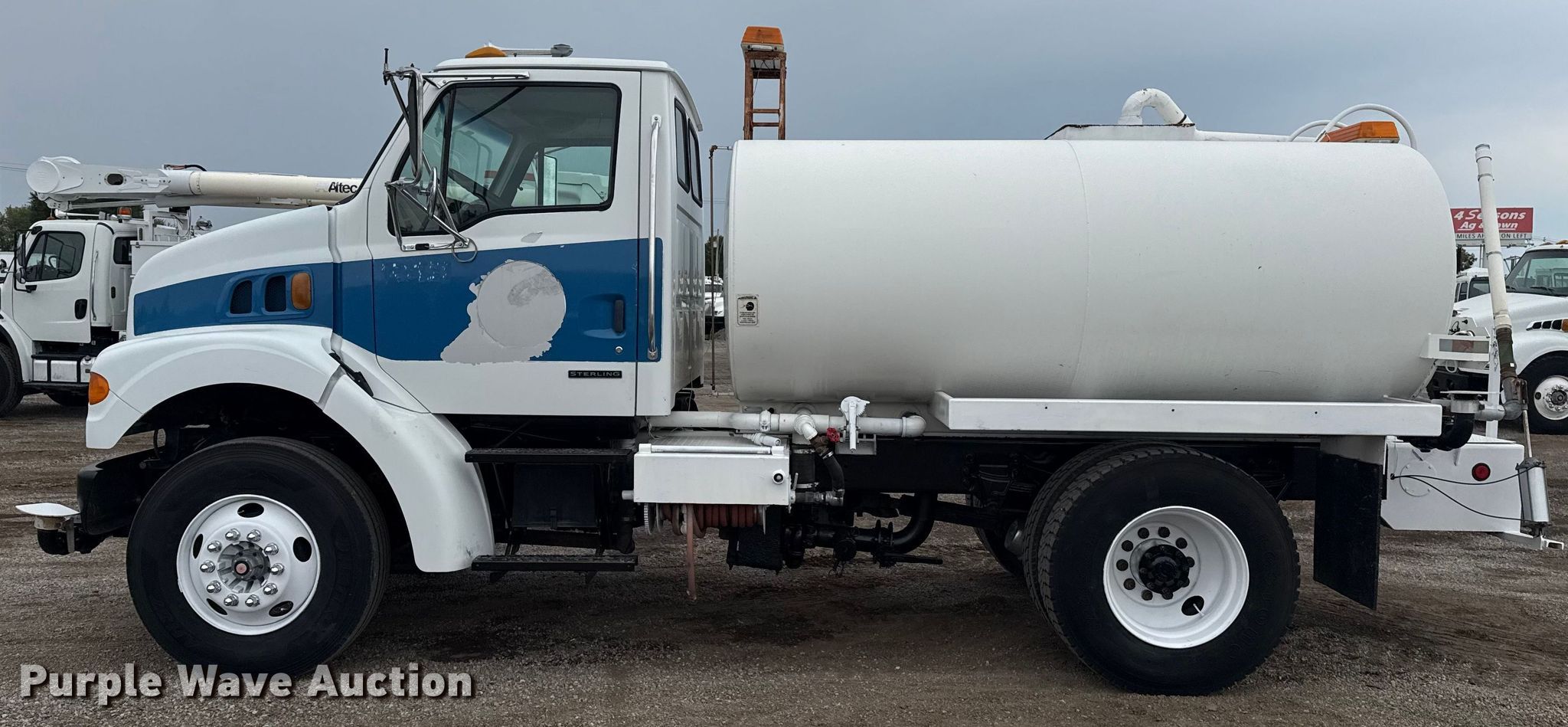 2004 Sterling L-Line water truck. Miles: 18,088 on odometer, VIN: 2FZAATAK94AM67109. Engine Caterpillar, Displacement: 7.2L DOHC, Cylinders: 6, Fuel type: Diesel. Transmission Automatic. Chassis Axles: Single, Suspension: Spring, Brakes: Air, PTO, GVWR: 35,000 lbs. Interior AC, Heat, Cruise control. Features Bed Tank bed, Length: 10', Width: 88", Spray bar: Front, Rear, Water cannon, Hose reel, Top fill, Rear drain: 3", Rear outlet: 3". Tires Size: 11R22.5. Notes Windshield chipped or cracked. Oklahoma title. Seller is an Oklahoma licensed motor vehicle dealer. Buyers may be required to provide identification to the licensed dealer to comply with state laws. Title will be assigned and distributed by the dealer. Please contact the seller for distribution questions. Title distribution may be delayed up to 30 days from verification of funds. Collinsville, OK 74021