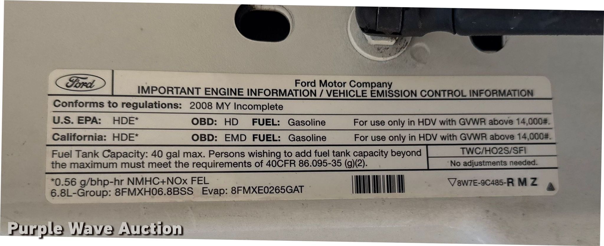 2008 Ford F450 Super Duty utility / service truck. Miles: 159,093 on odometer, VIN: 1FDXF47Y28ED04327. Engine Displacement: 6.8L, Cylinders: 10, Fuel type: Gas. Transmission Automatic, Four wheel drive. Interior AC, Heat, Auxiliary controls, Brake controller. Features Bed Box bed, BrandFX, Length: 106", Width: 90", (2) Pelsue control panel Hours: 795. Tires Size: 225/70R19.5. Notes Hood issues, dented. Oklahoma title. Seller is an Oklahoma licensed motor vehicle dealer. Buyers may be required to provide identification to the licensed dealer to comply with state laws. Title will be assigned and distributed by the dealer. Please contact the seller for distribution questions. Title distribution may be delayed up to 30 days from verification of funds. Collinsville, OK 74021