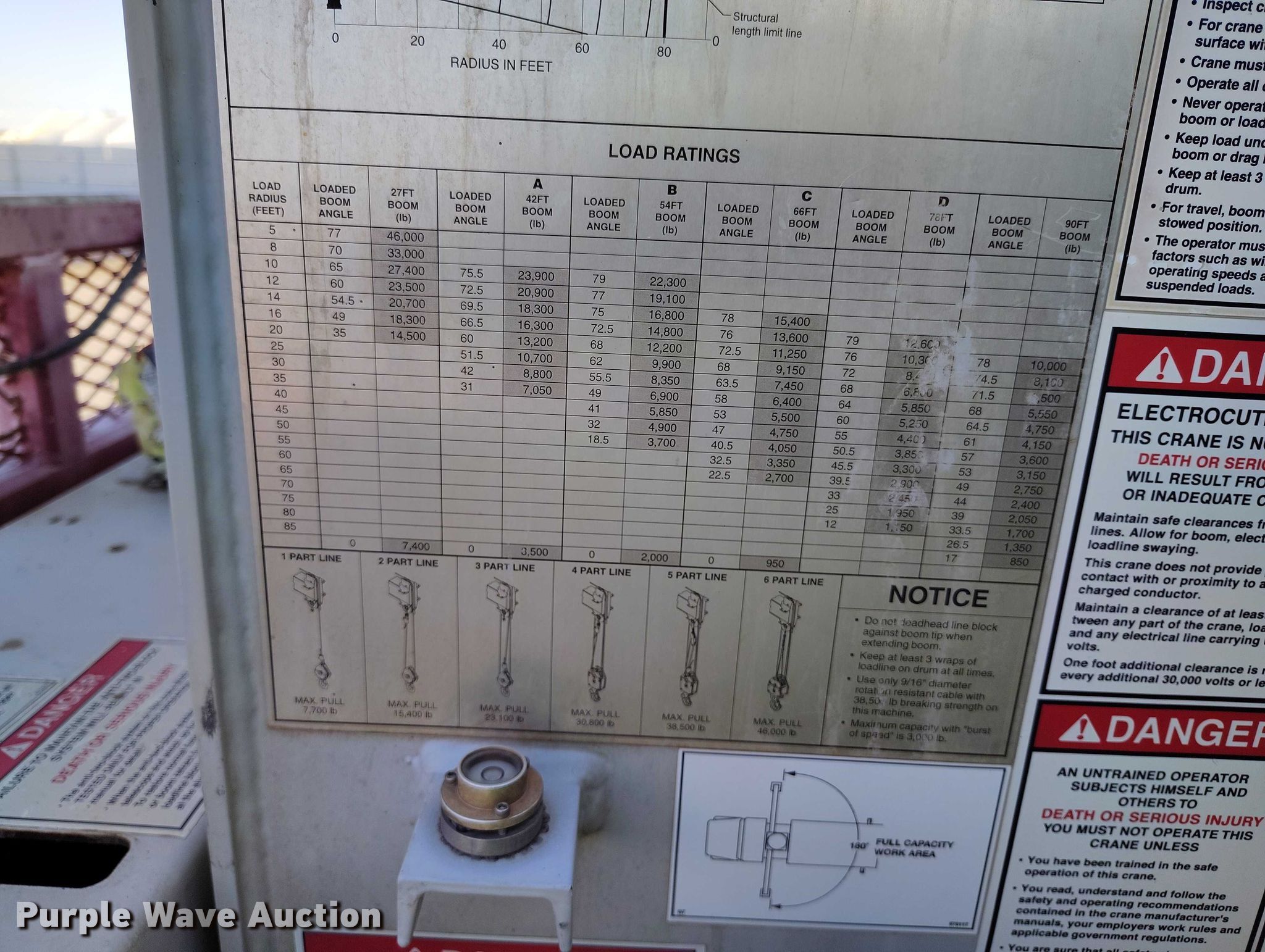 2011 Peterbilt 365 crane truck. Miles: 47,960 on odometer, Hours: 8,943 on meter, VIN: 1NPSXPEX2BD130546, Unit #: 70669125. Engine Paccar A-40454, Displacement: 12.9L, Cylinders: 6, Fuel type: Diesel, HP: 485, Engine brake. Transmission Eaton Fuller, Manual, Speed: 10. Chassis Axles: Triple, Pusher axle, Differential lock: Inter-axle, Suspension: Air, Brakes: Air, PTO Hours: 6,455 on meter, GVWR: 72,350 lbs FAWR: 20,000 lbs, IAWR: 20,000 lbs, RAWR: 20,000 lbs, Lift axle GAWR: 12,350 lbs. Interior AC, Heat, Heated mirrors, Power windows, Power locks, Cruise control. Features Bed Flatbed, Length: 24', Width: 96", Crane National 800D Serial: 296382, Boom Telescopic, Maximum boom length: 90' Sections: 3, Maximum lift capacity: 46,000 lbs, Boom controls Ground, Sheaves: 1, Capacity: 12.5 tons, Certification valid through: 08/2025, Lift chart. Tires Front: 425/65R22.5, Rear: 11R22.5, Lift axle: 295/75R22.5. Notes Dash warning indicator: Check engine, ECU Power Loss, Jump start required during on-site data collection. Stored at a secured facility. Please review REQUIRED REMOVAL INSTRUCTIONS. Oklahoma title. Seller is a licensed motor vehicle dealer. The buyer may be required to pay sales tax and/or registration fees to the dealer prior to taking possession. Buyers may be required to provide identification to the licensed dealer to comply with state laws. Title will be assigned and distributed by the dealer. Please contact the seller for distribution questions. Title distribution may be delayed up to 14 days from verification of funds. Brighton, CO 80603