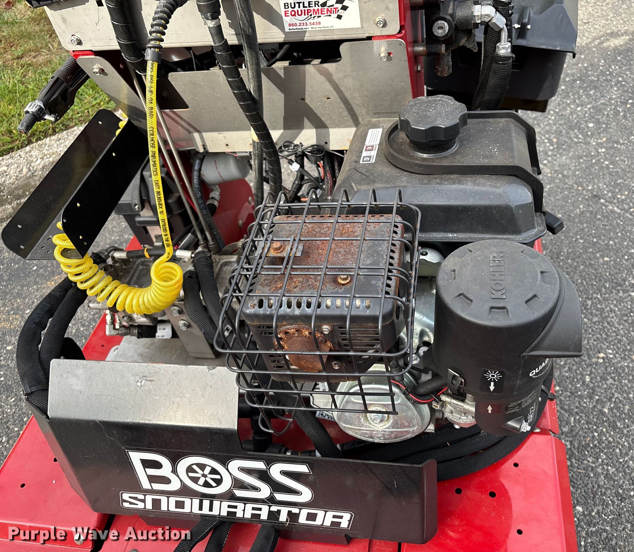 2022 Boss Snowrator snow pusher. Hours: 37 on meter, Serial: 412848043, Unit #: 23-2. Engine Kohler CH440, Displacement: 429cc, Cylinders: 1, Fuel type: Gas, Electric start, Recoil start. Transmission Hydrostatic. Chassis Four wheel drive/ All wheel drive. Features Attachment BOSS Smart Shield, Description: Hydraulic snow plow, Width: 48". Tires Size: 18x8.50-10, Brand: Kenda. Notes Battery missing, Jump start required during on-site data collection. East End Group Inventory Reduction - Open inspection October 16th and 17th from 9 a.m. to 4 p.m.. Yaphank, NY 11980