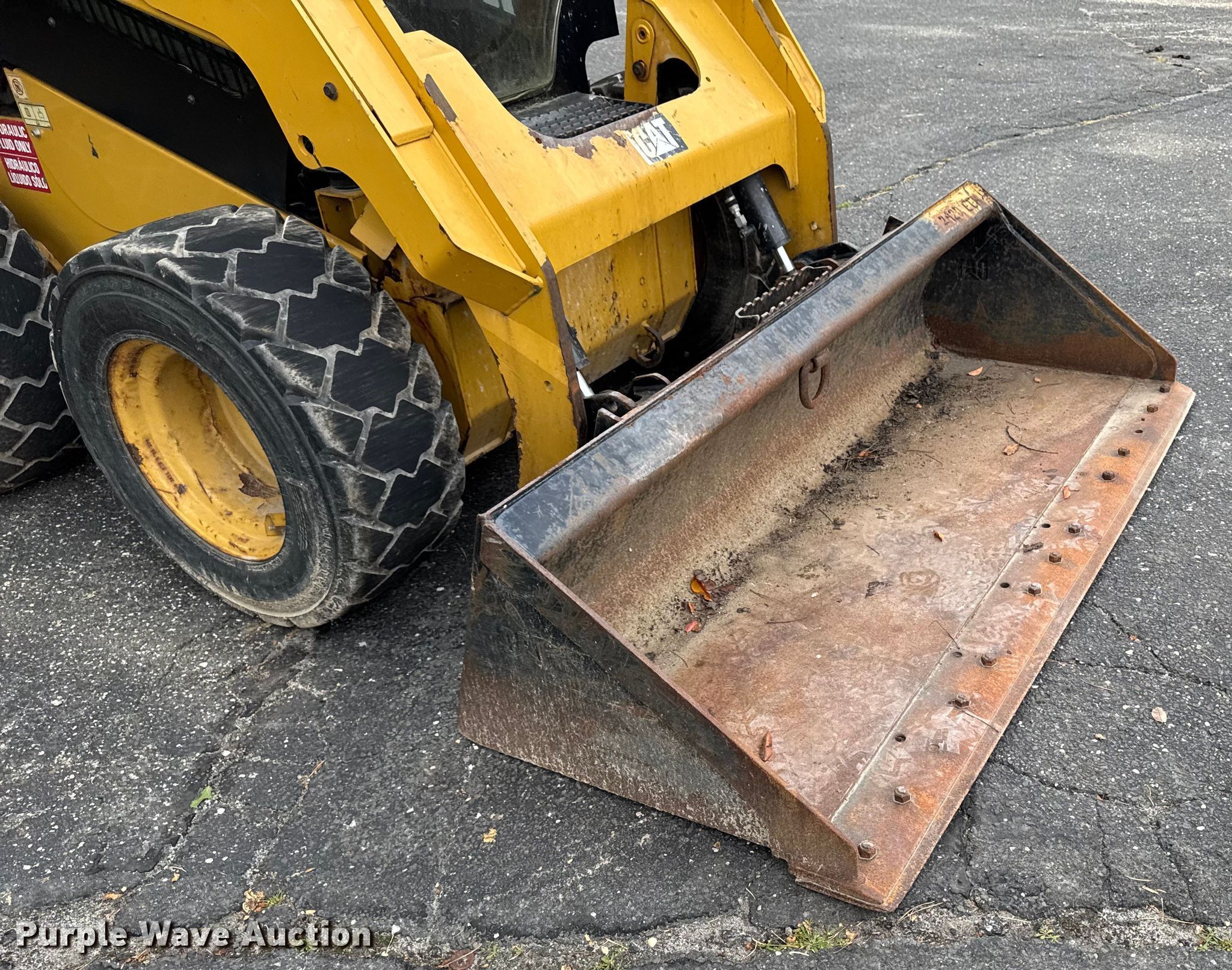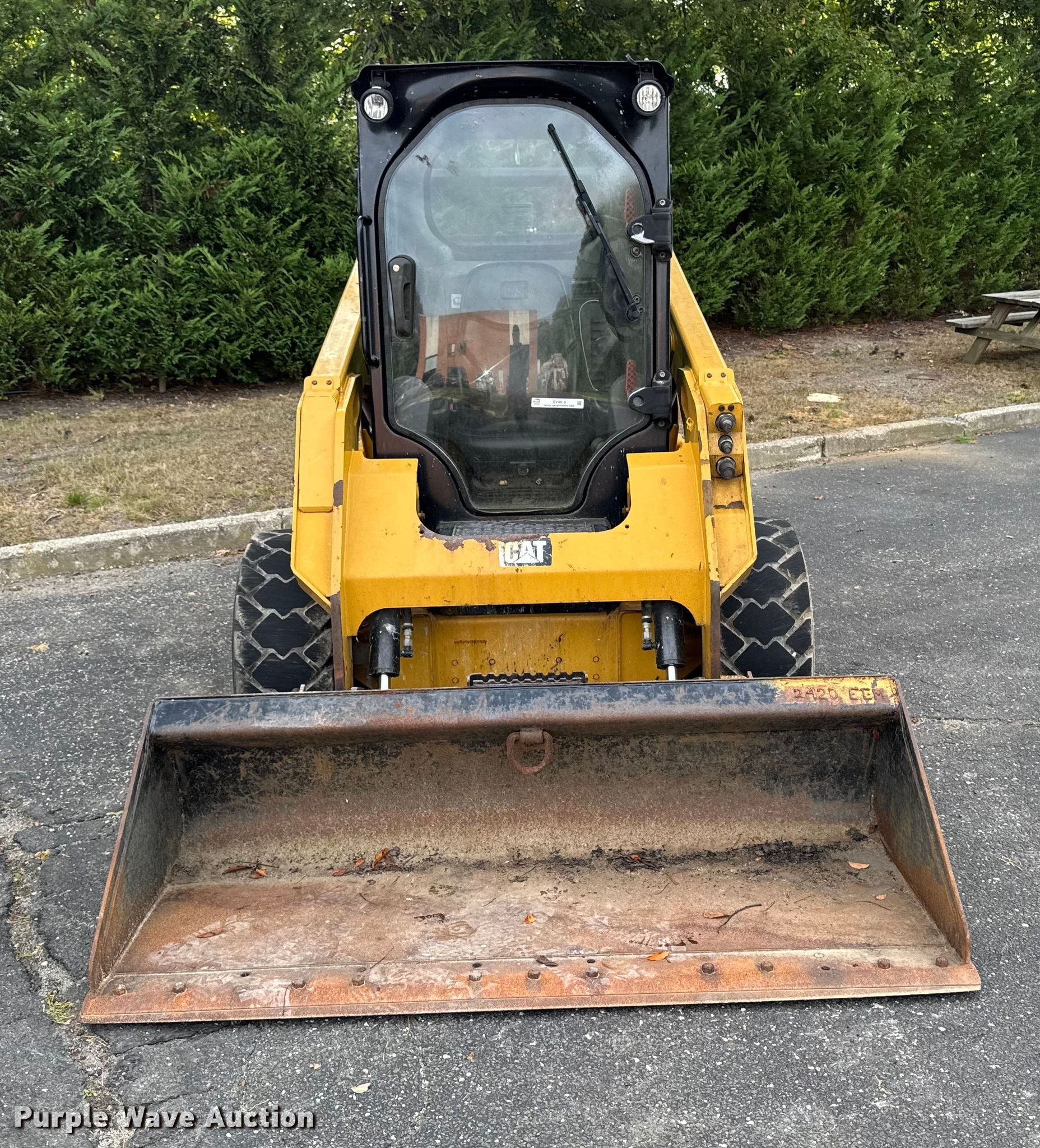 2015 Caterpillar 242D skid steer loader. Hours: 856 on meter, Miles or hours may vary, unit still in use, Serial: CAT0242DCDZT01530, Unit #: S2. Engine Caterpillar C3.38, Serial: 8FC0821, Displacement: 3.38L, Cylinders: 4, Fuel type: Diesel. Transmission Hydrostatic. Operators station Enclosed cab, AC, Heat, Backup camera, Bucket control: Hand, Electronic Monitoring System panel. Features Auxiliary hydraulics, Quick coupler: Manual, Counter weights, Bucket Caterpillar, Width: 75", Cutting edge: Bolt-on. Tires Size: 12-16.5NHS, Brand: Galaxy. Notes Key not included. East End Group Inventory Reduction. Yaphank, NY 11980