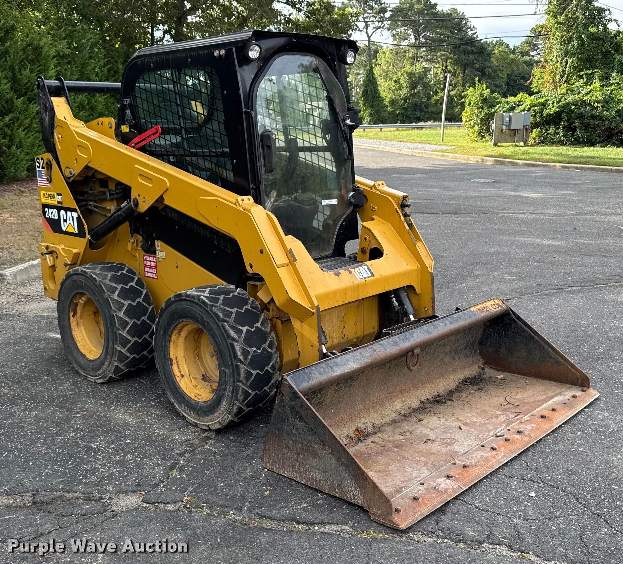 Purple Wave is selling a used Skid Steer Loader in New York. This item is a 2015 Caterpillar 242D skid steer loader with the following: Hours: 856 on meter, Miles or hours may vary, unit still in use, Serial: CAT0242DCDZT01530, Unit #: S2