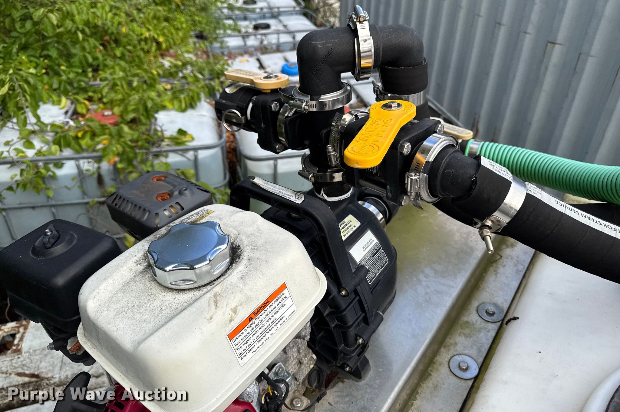 Deicing Depot deicer tank. Serial: SK1021522391, Poly tank Capacity: 300 gallons, Honda GX160 engine Cylinders: One, Fuel type: Gas, Pacer SE2UV E5HCP pump Hose reel, Nozzle. Notes Unknown operating condition. East End Group Inventory Reduction - Open inspection October 16th and 17th from 9 a.m. to 4 p.m.. 124 Sills Road. Yaphank, NY 11980