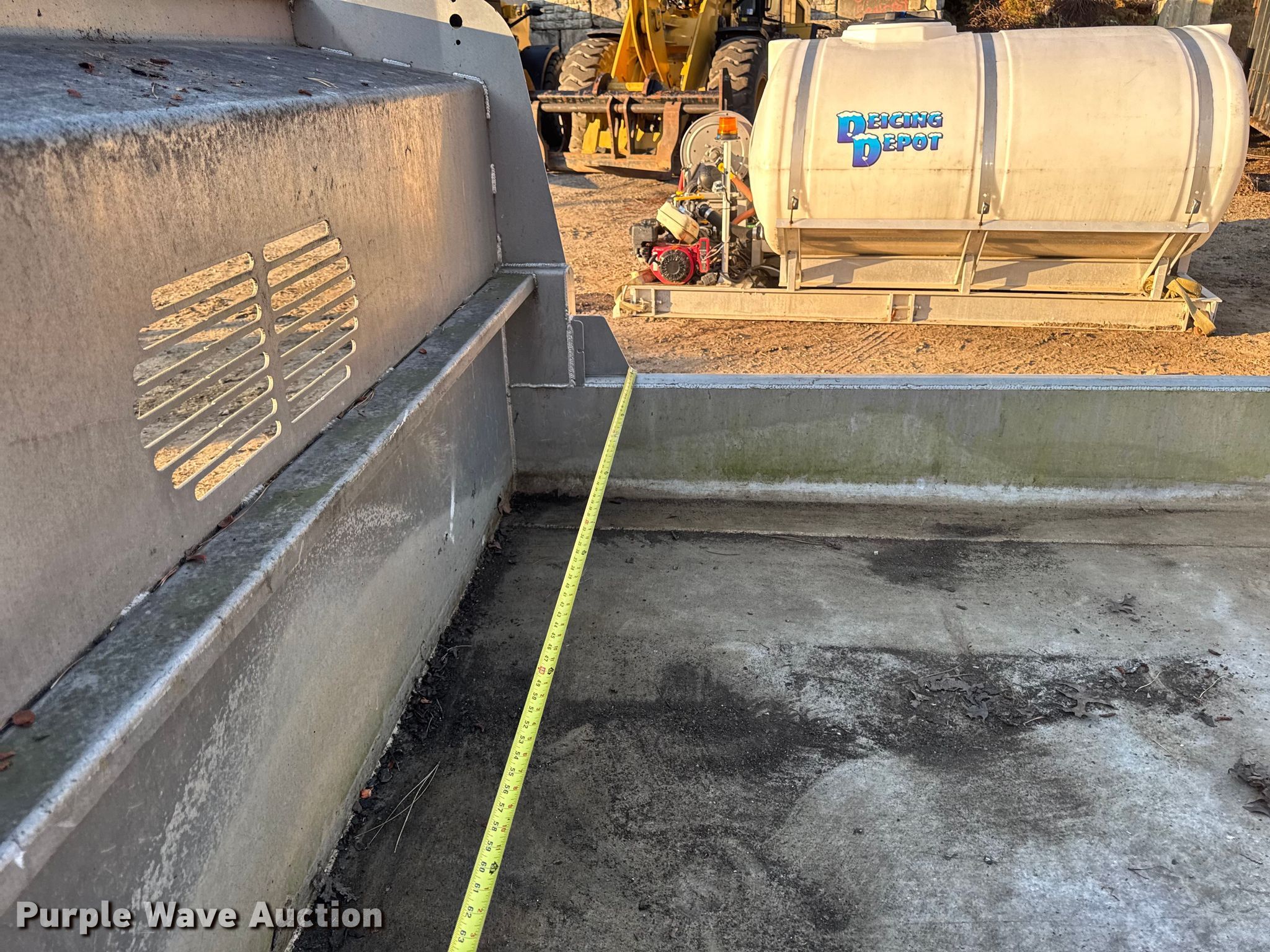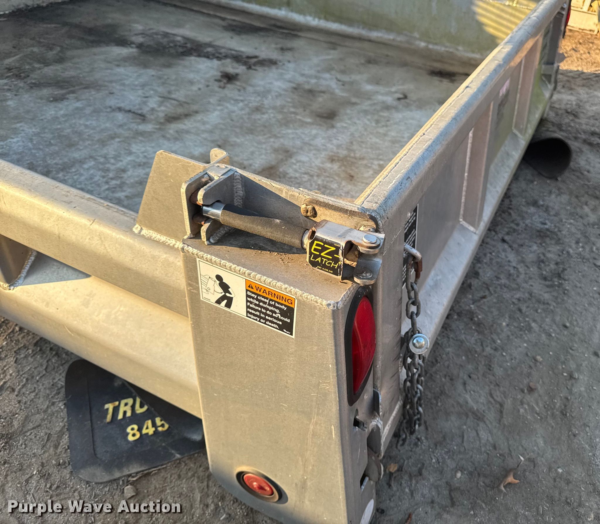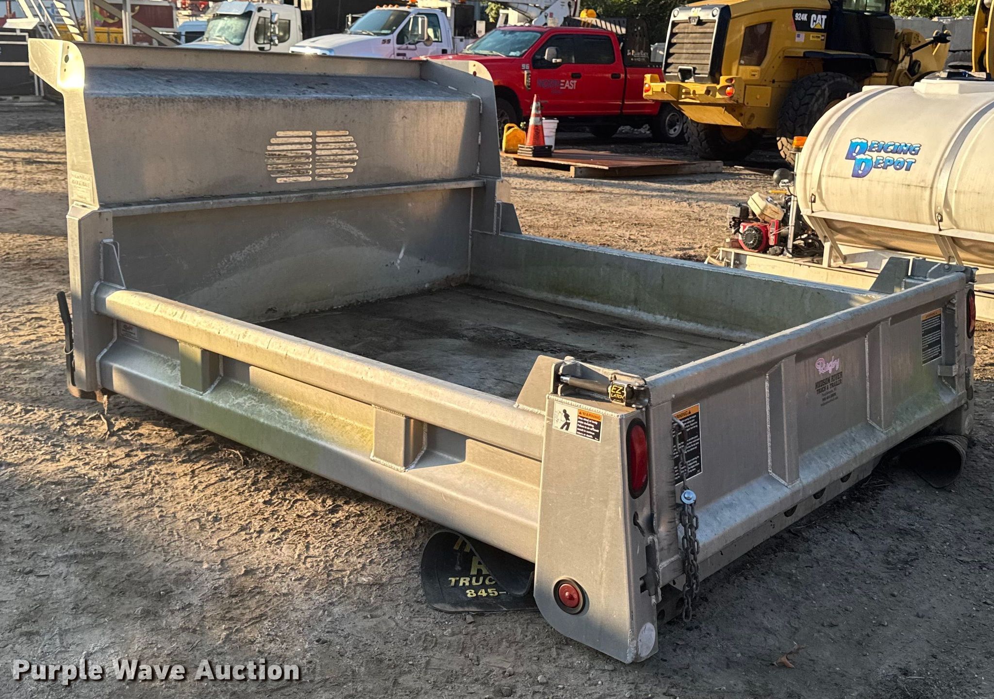 Rugby dump bed. Serial: 351003. Features Length: 102", Width: 93", Side height: 12", Bed type: Aluminum, End gate: Manual. Notes Hoist and frame not included. East End Group Inventory Reduction - Open inspection October 16th and 17th from 9 a.m. to 4 p.m.. 124 Sills Road. Yaphank, NY 11980