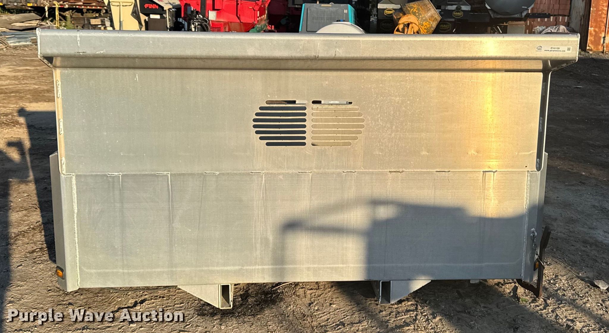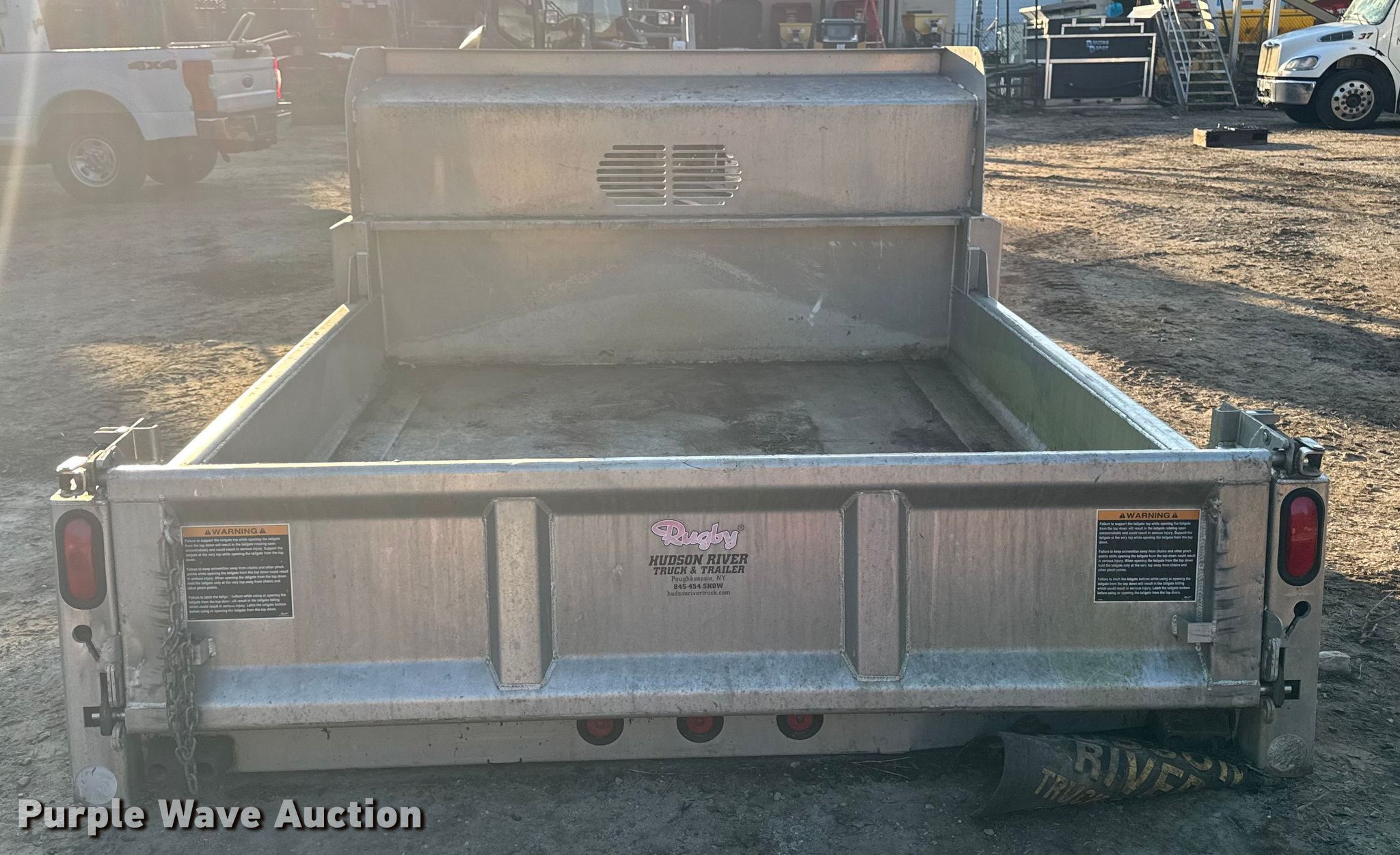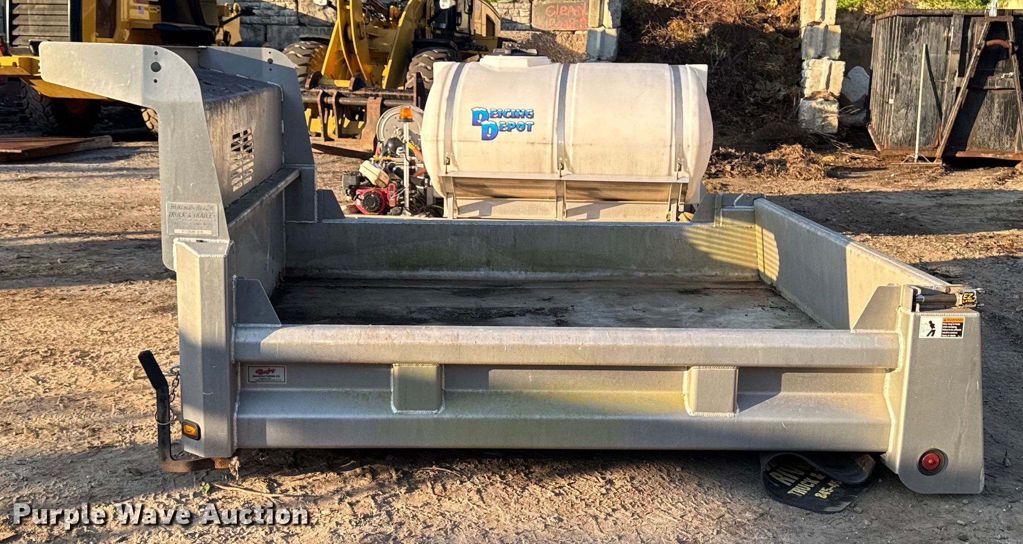 Rugby dump bed. Serial: 351003. Features Length: 102", Width: 93", Side height: 12", Bed type: Aluminum, End gate: Manual. Notes Hoist and frame not included. East End Group Inventory Reduction - Open inspection October 16th and 17th from 9 a.m. to 4 p.m.. 124 Sills Road. Yaphank, NY 11980