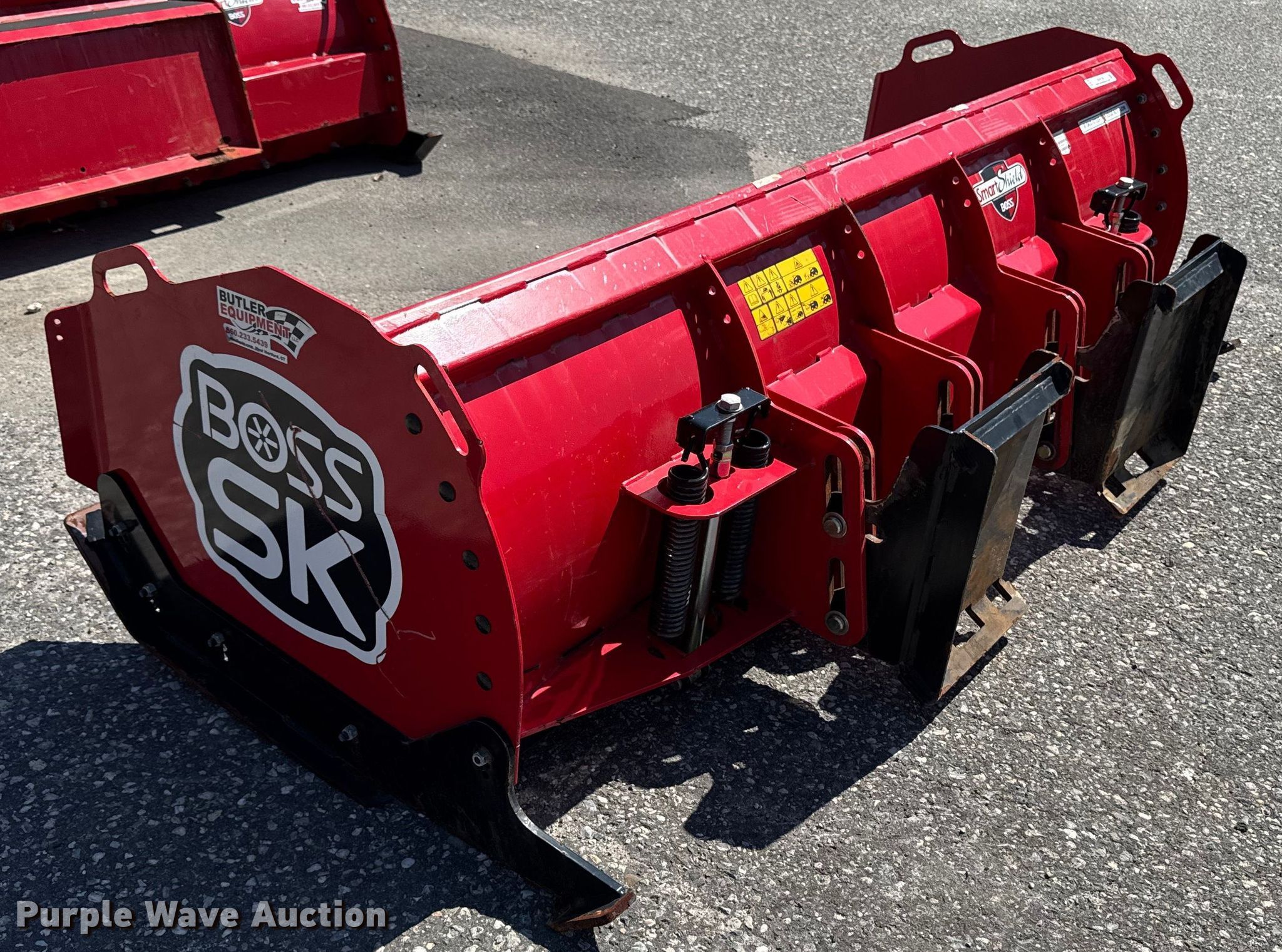 Boss Trip Edge Box Plow skid steer snow pusher. Serial: 414655181, Width: 96", Cutting edge: Bolt-on. Representative photos.. East End Group Inventory Reduction - Open inspection October 16th and 17th from 9 a.m. to 4 p.m.. 124 Sills Road. Yaphank, NY 11980