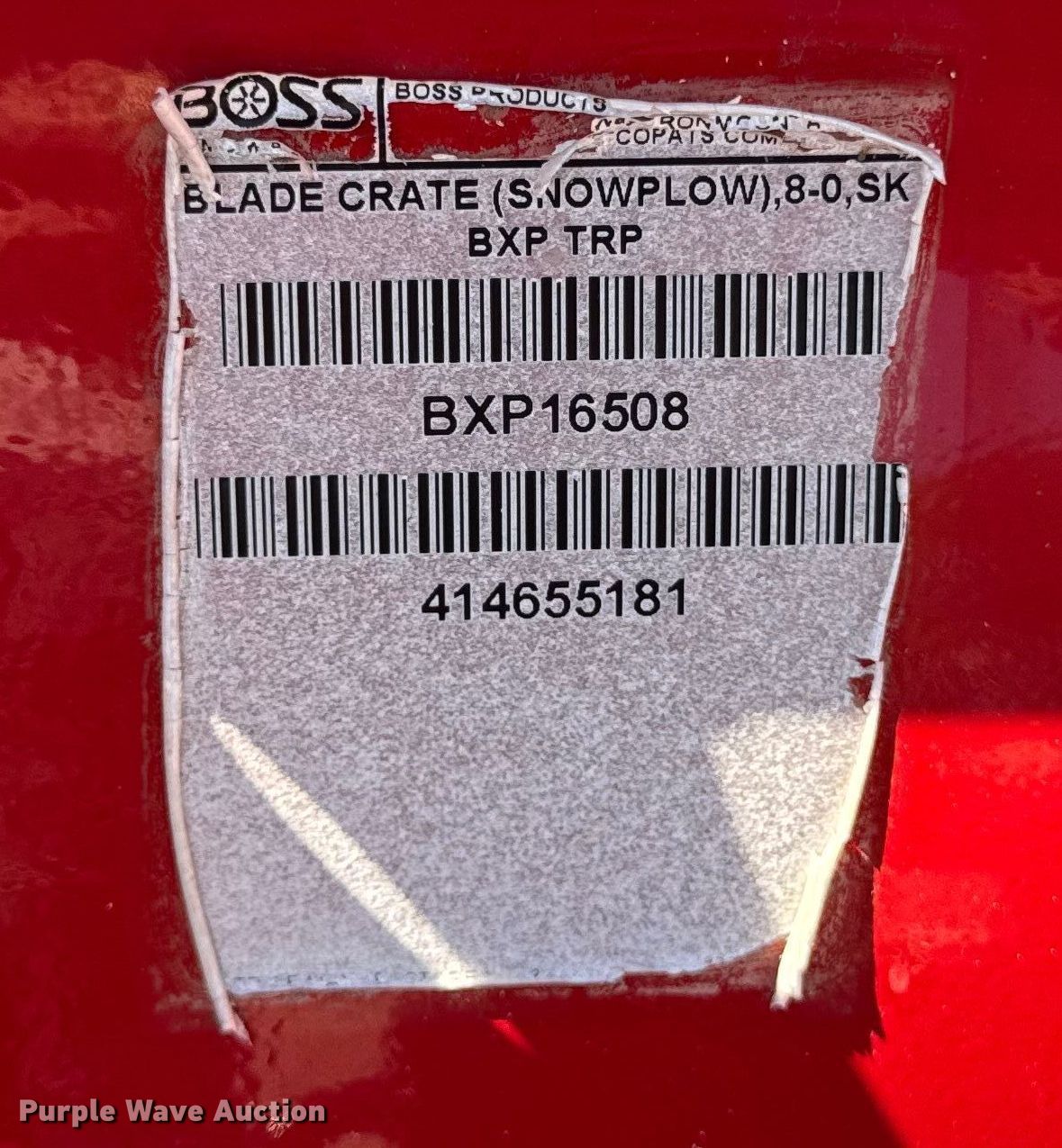 Purple Wave is selling a used Skid Steer Attach. in New York. This item is a Boss Trip Edge Box Plow skid steer snow pusher with the following: Serial: 414655181, Width: 96", Cutting edge: Bolt-on