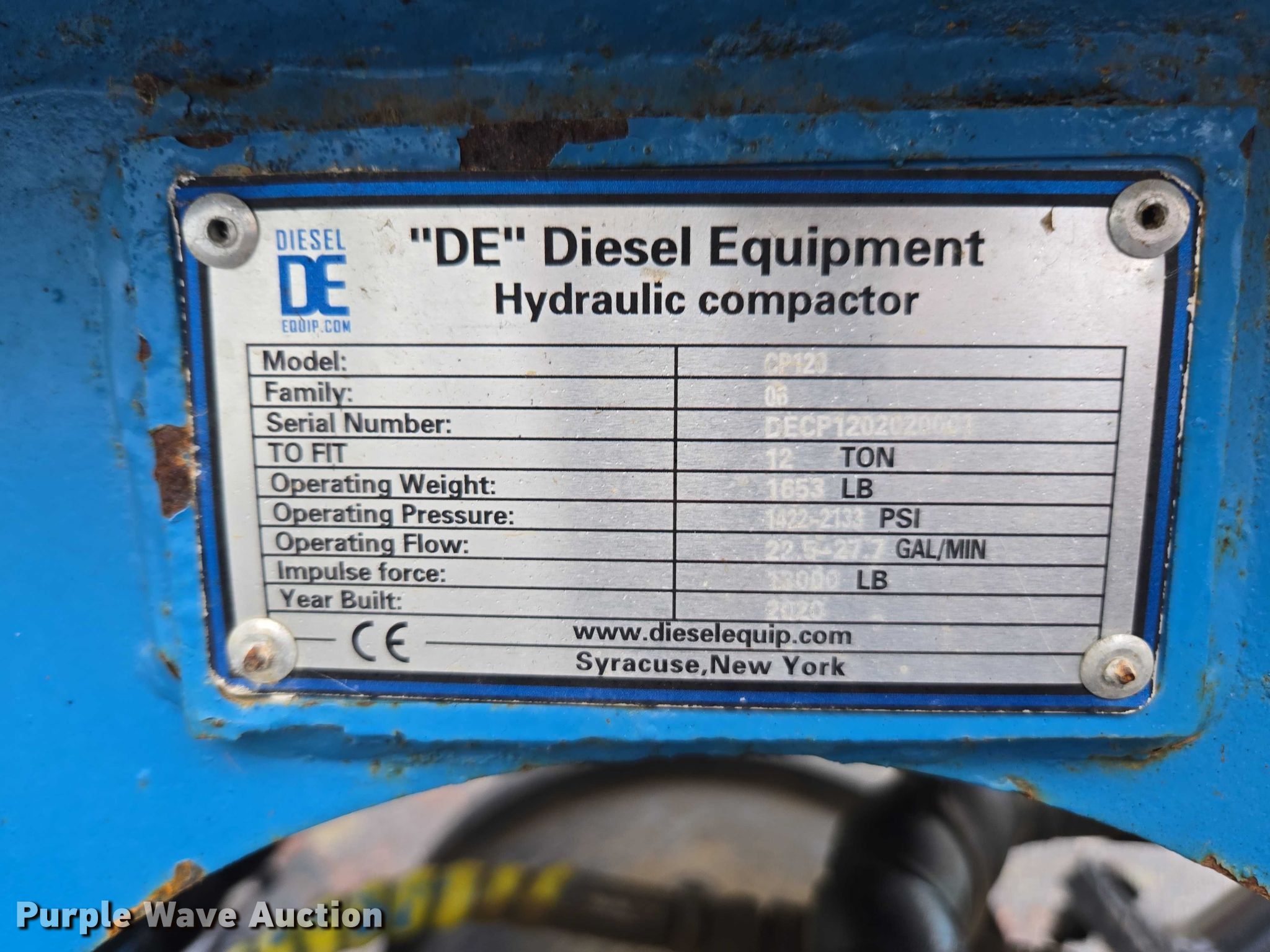 Take a look at this used Diesel CP120 excavator plate compactor being sold on October 23rd, 2025 in the SOLD! October 23 East End Group Inventory Reduction Auction made by Diesel. Take a look at all of the item information below or take a look at similar auctions for Excavators.